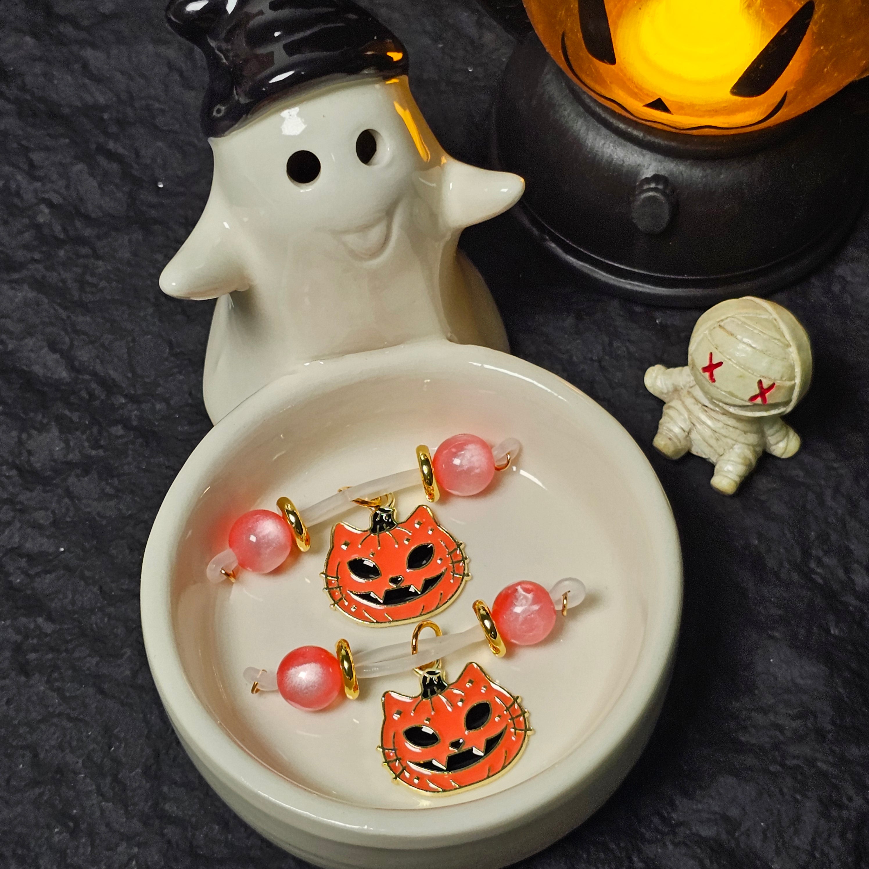 This nipple clamp cleverly blends mysterious cool with festive playfulness, creating a unique and eye-catching accessory. The classic barbell construction is sturdy yet refined, and paired with orange beads, it exudes a cool and powerful understated elegance. The pendant, designed in the shape of a pumpkin and kitten, features realistic and playful details, embodying the joy of Halloween while adding a touch of playfulness and cuteness. The vibrant orange pumpkin combined with the cat adds depth and visual impact to the overall look. The clamp is adjustable for a secure fit, ensuring comfort and freedom of movement. Whether worn as a styling embellishment for a holiday party or as a subtle, everyday statement piece, this nipple clamp is sure to add a touch of flair and conversation, making it an ideal gift or personal accessory.