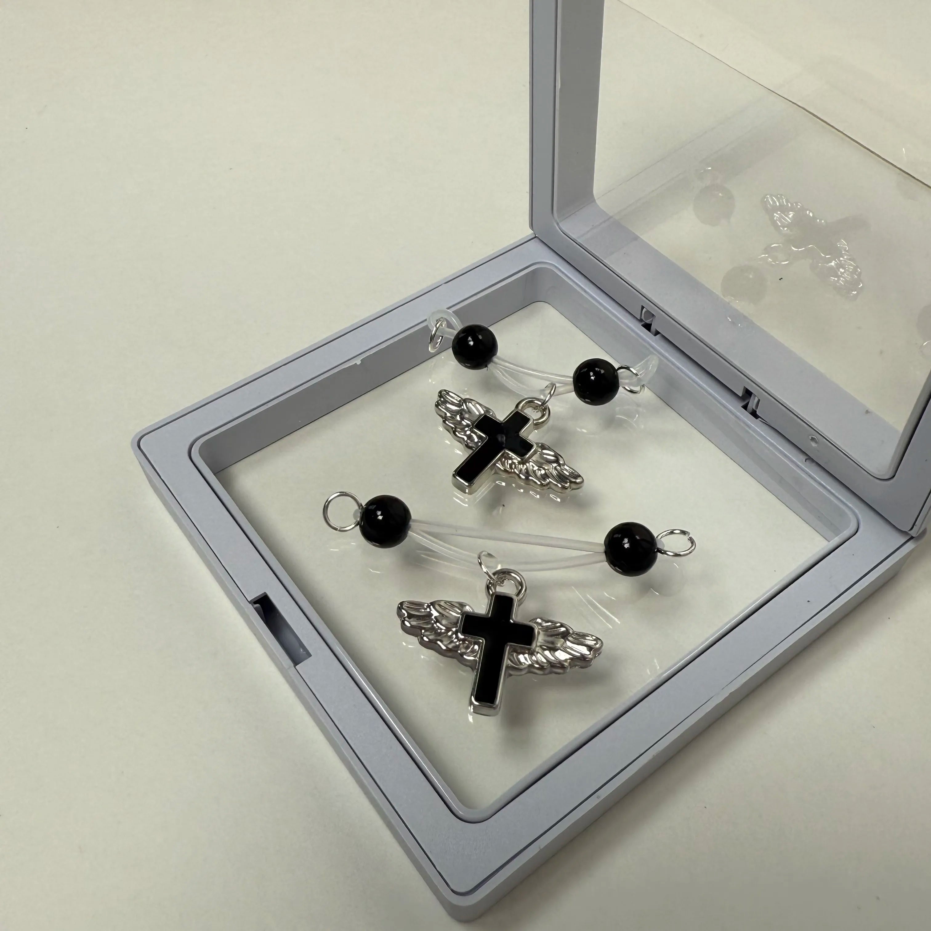 Inspired by a black cross and feather wings, this adjustable nipple charm fuses gothic style with mystical allure, radiating a cool and sensual allure. Made of high-quality metal, its rich color and premium texture, and intricately carved details, it accentuates a bold yet elegant style. No piercings are required, making it easy to wear. The chain can be adjusted to fit comfortably and securely, ensuring a seamless fit for any outfit. The unique design is not only unforgettable but also creates a captivating effect in intimate moments, making it the perfect choice for expressing your style and flirting.