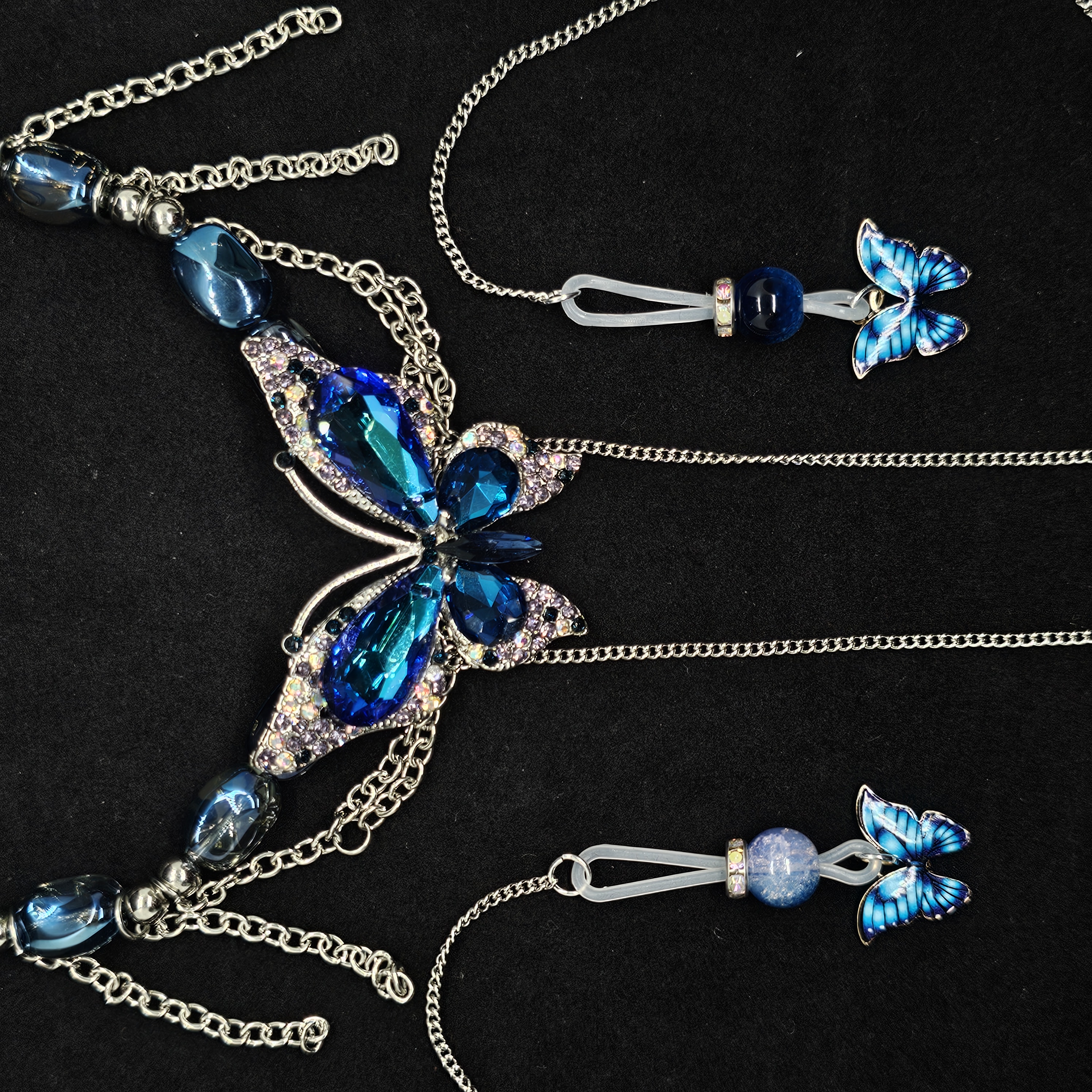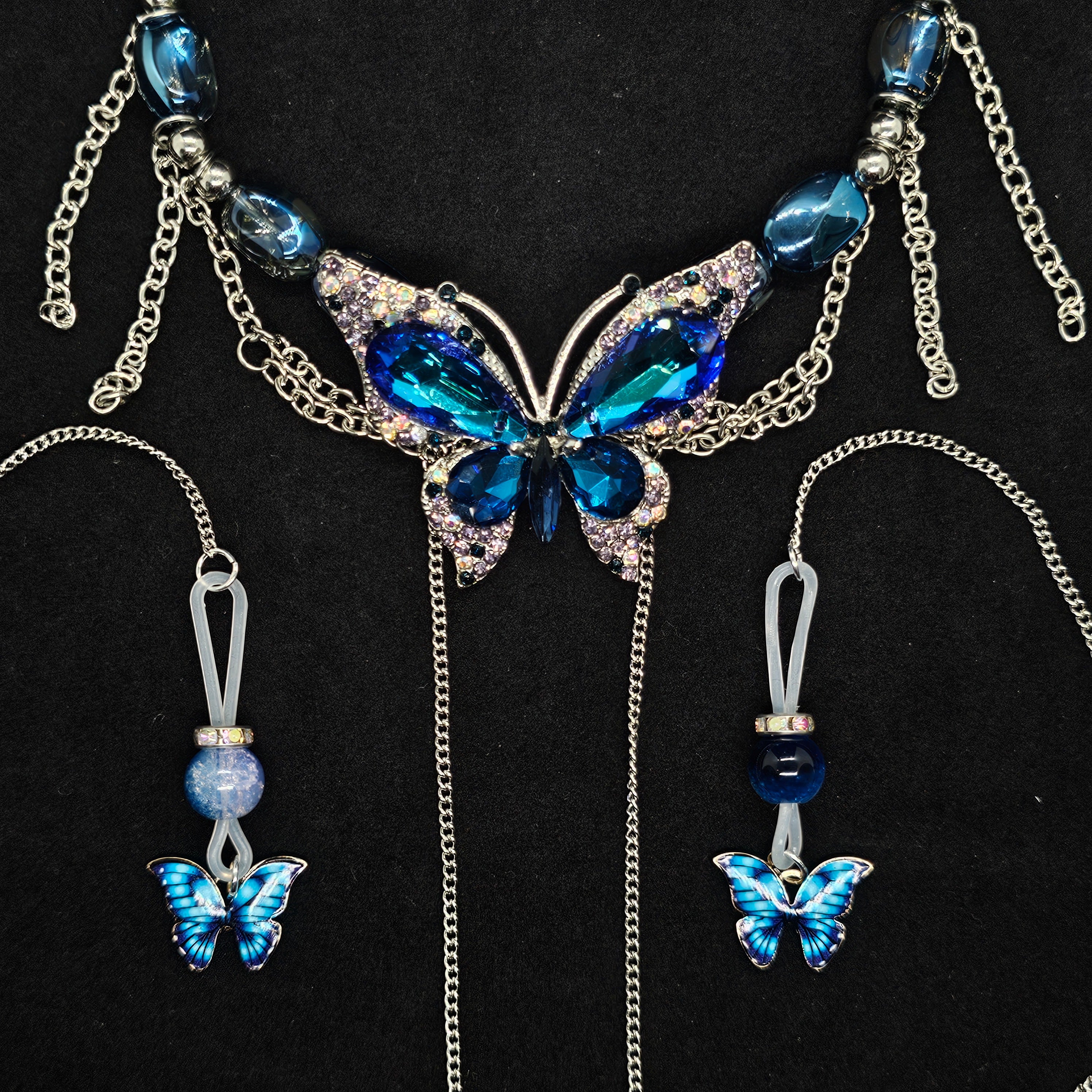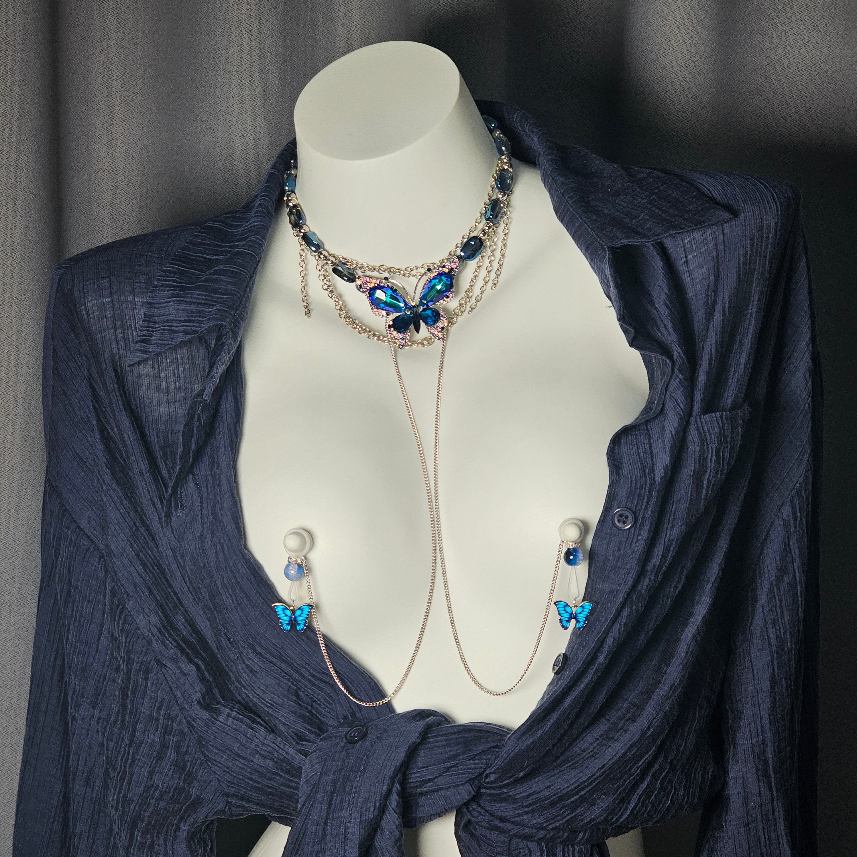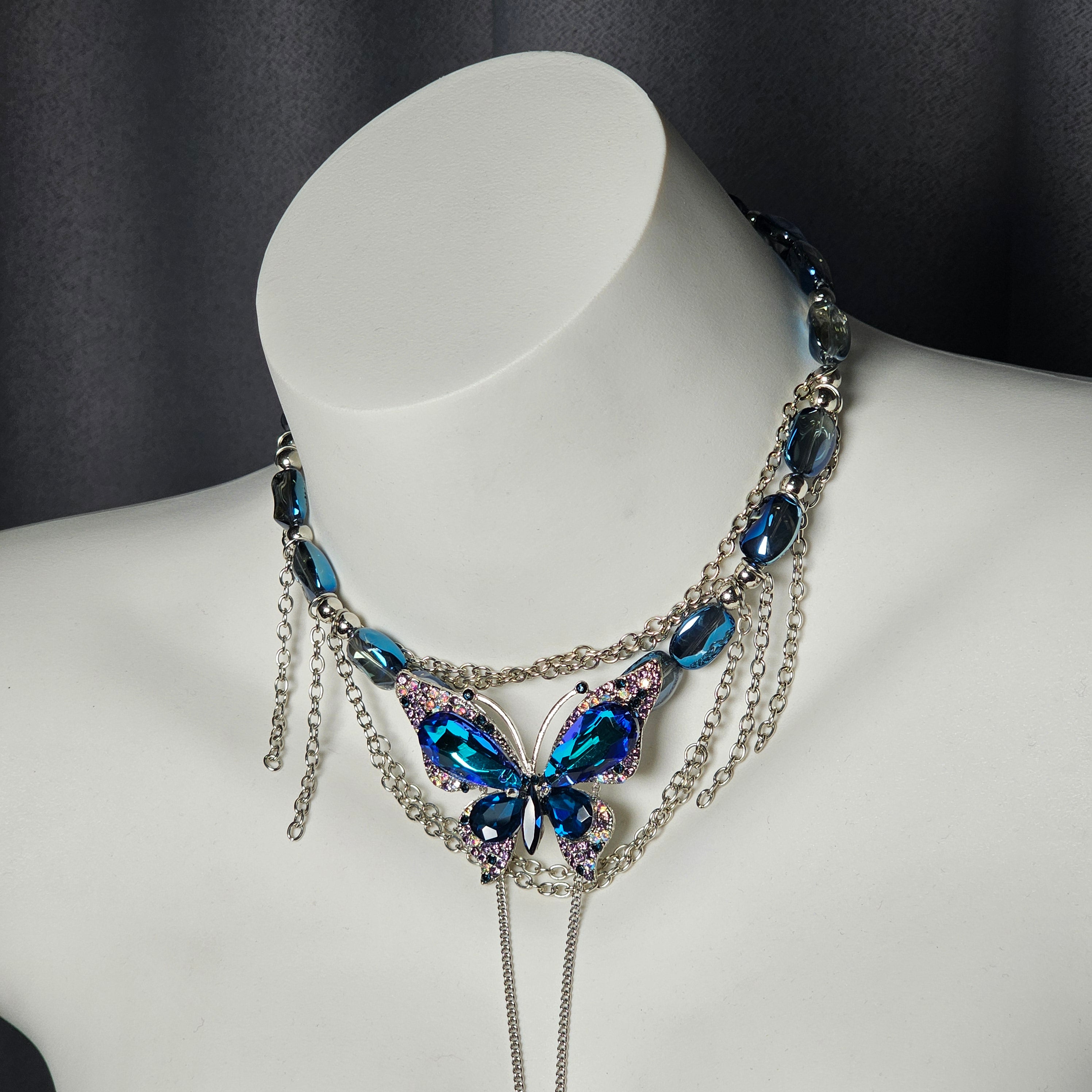 Blue beads paired with an indigo butterfly pendant exude cool elegance, while the irregular blue gemstone necklace with a matching butterfly charm radiates grace and refined allure.