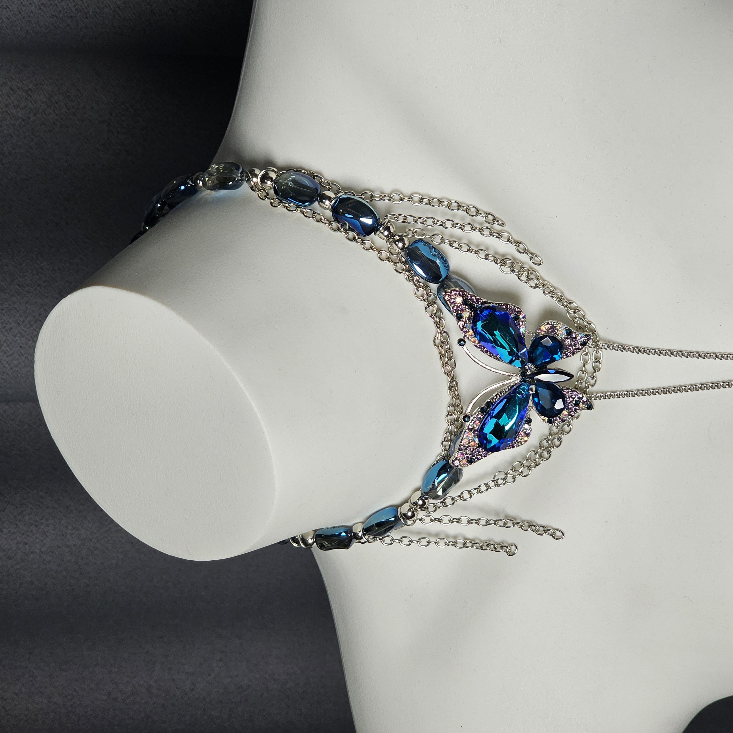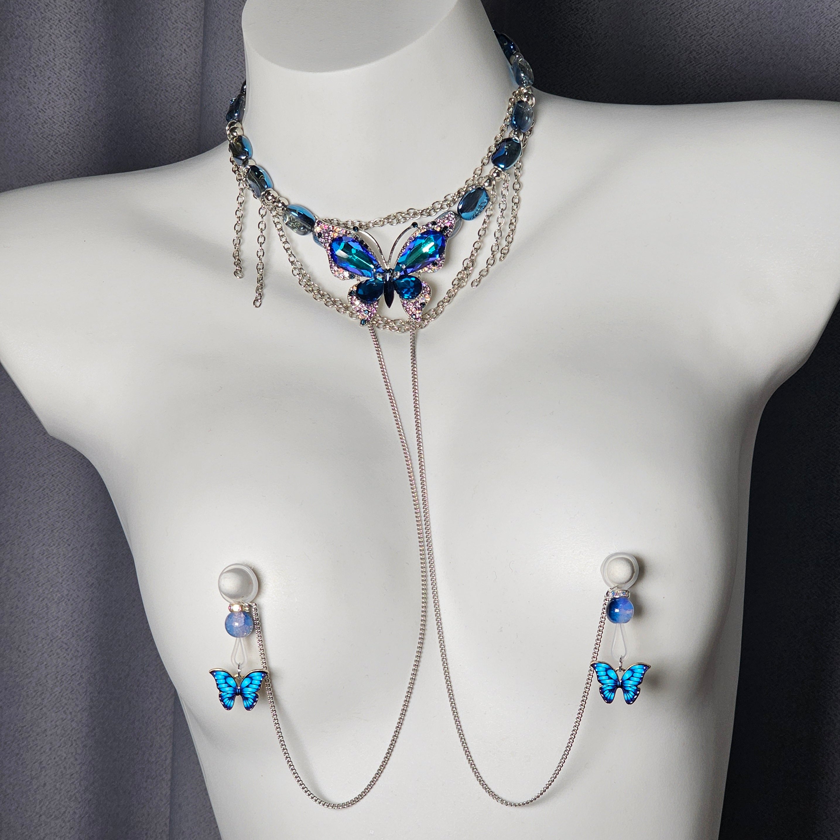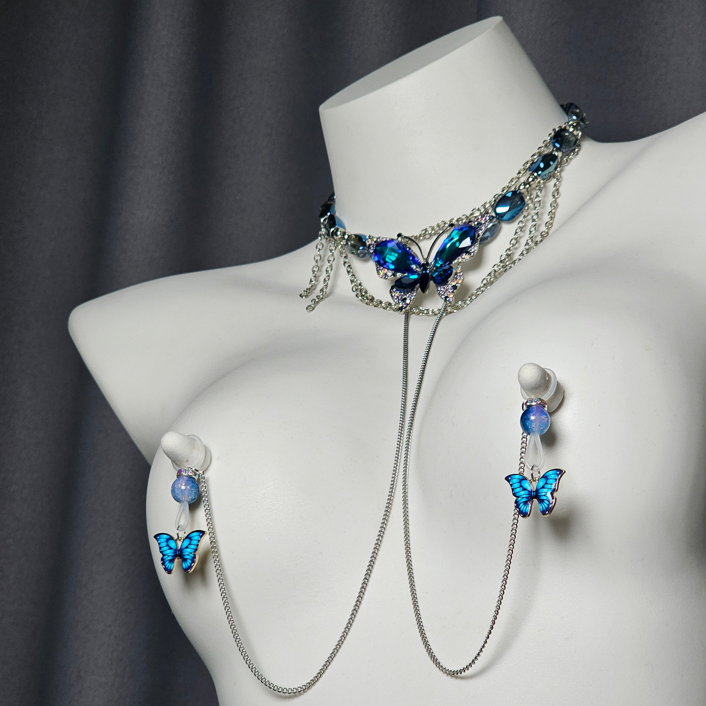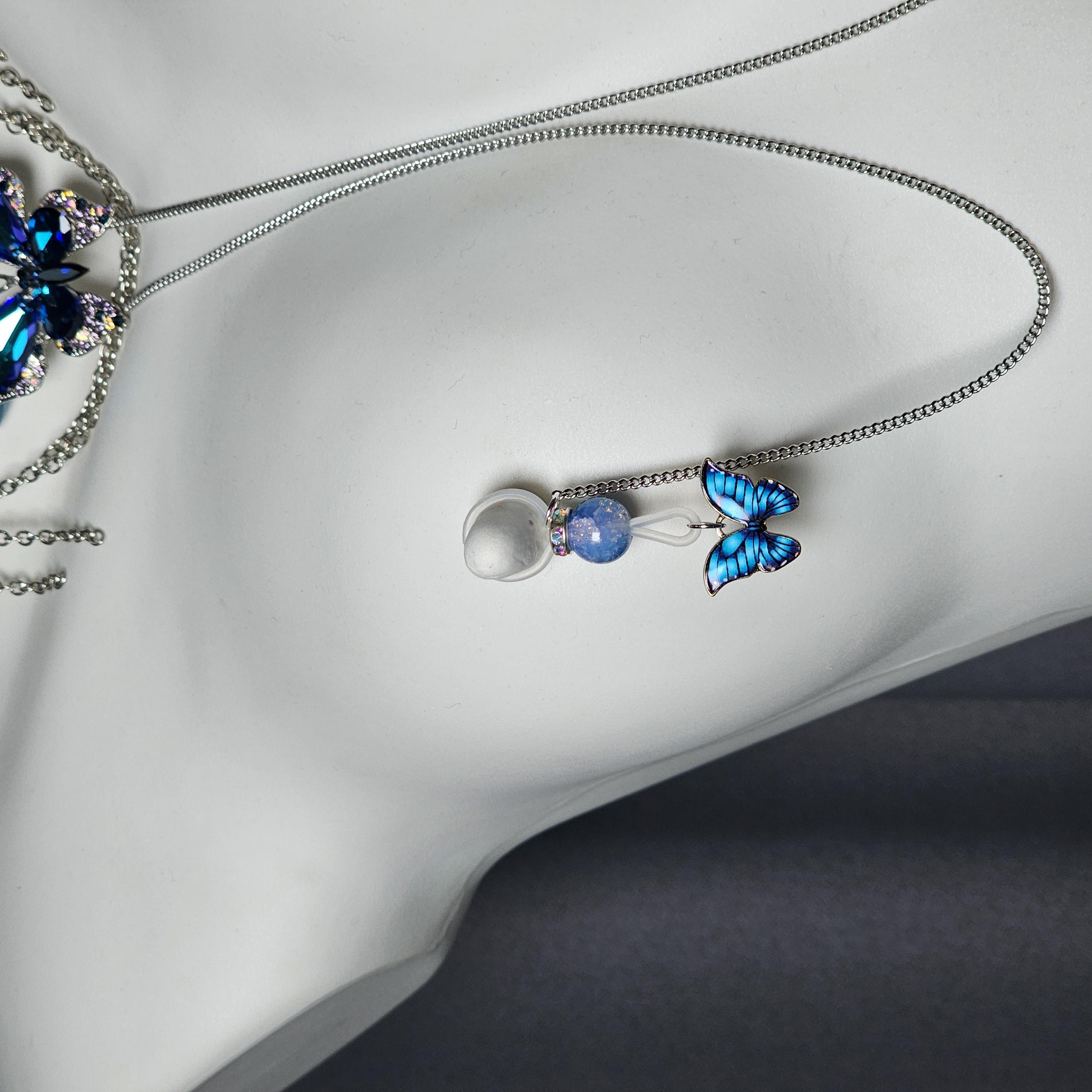 Blue beads paired with an indigo butterfly pendant exude cool elegance, while the irregular blue gemstone necklace with a matching butterfly charm radiates grace and refined allure.