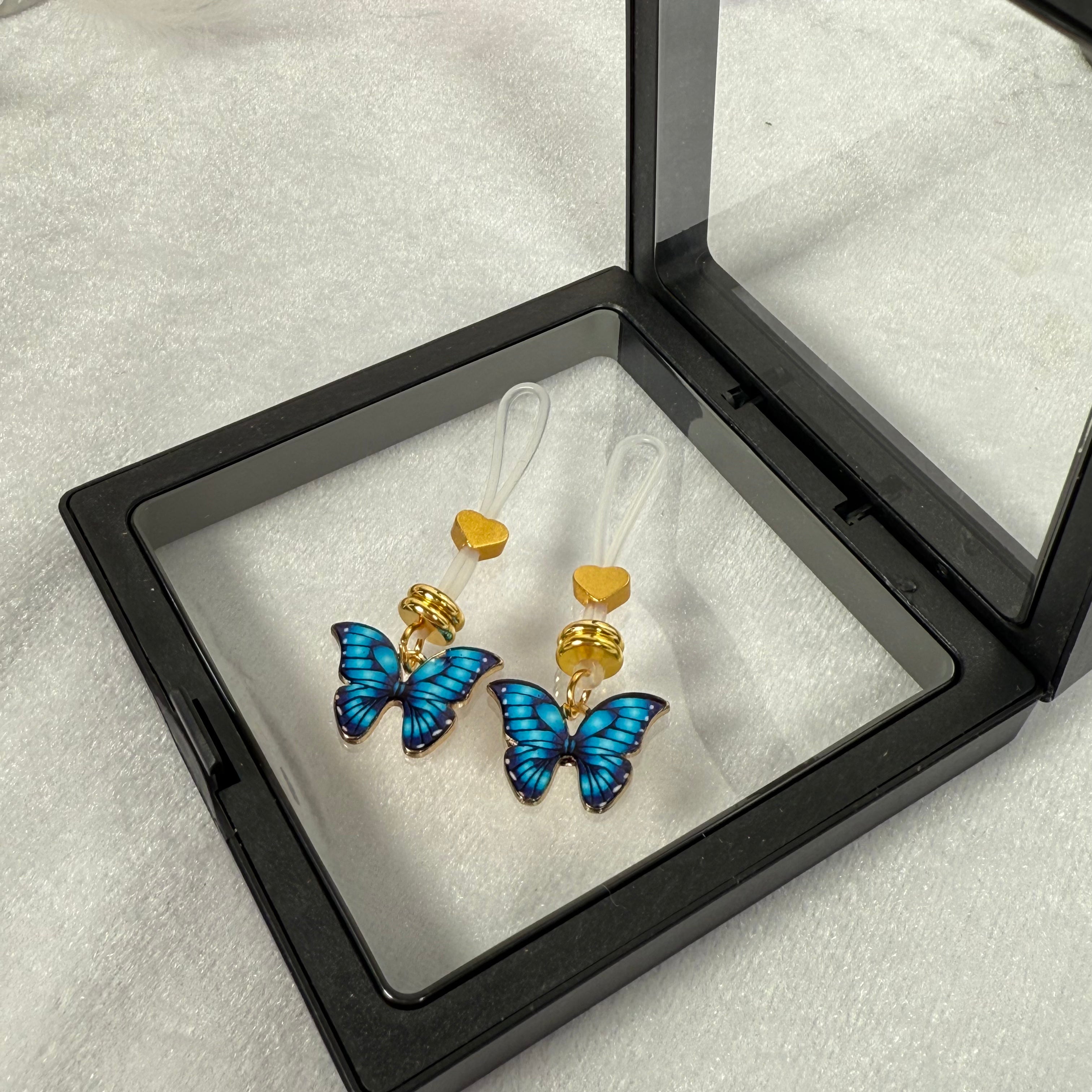 Featuring a ethereal blue butterfly as its primary visual element, this pendant showcases a delicate balance of elegance and sensuality. The adjustable clip allows for precise tightening and comfort, ensuring a secure fit. The medical-grade stainless steel with a delicate coating ensures skin-safety and a long-lasting shine. The butterfly pendant gently sways with body movements, creating captivating flashes of color in the light and shadow. Whether in intimate moments, onstage performances, or artistic photography, it's a captivating finishing touch.