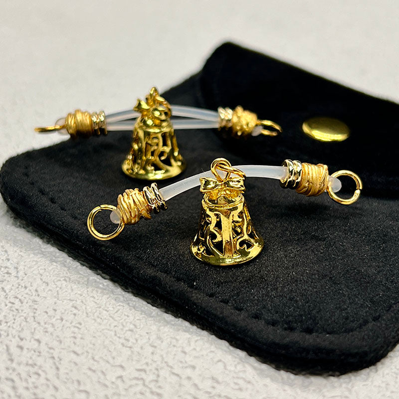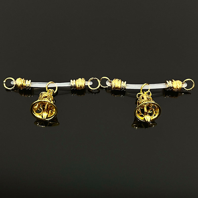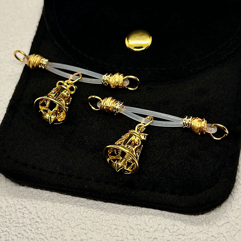 This adjustable nipple clamp features a gold openwork bell as its core design, cleverly blending retro playfulness with understated luxury. The bell's delicate openwork pattern shimmers with a metallic sheen, and every slight movement seems to play an ambiguous melody, exuding both retro charm and sweet sensuality. Its smooth texture and eye-catching design create a sophisticated and captivating modern accessory.