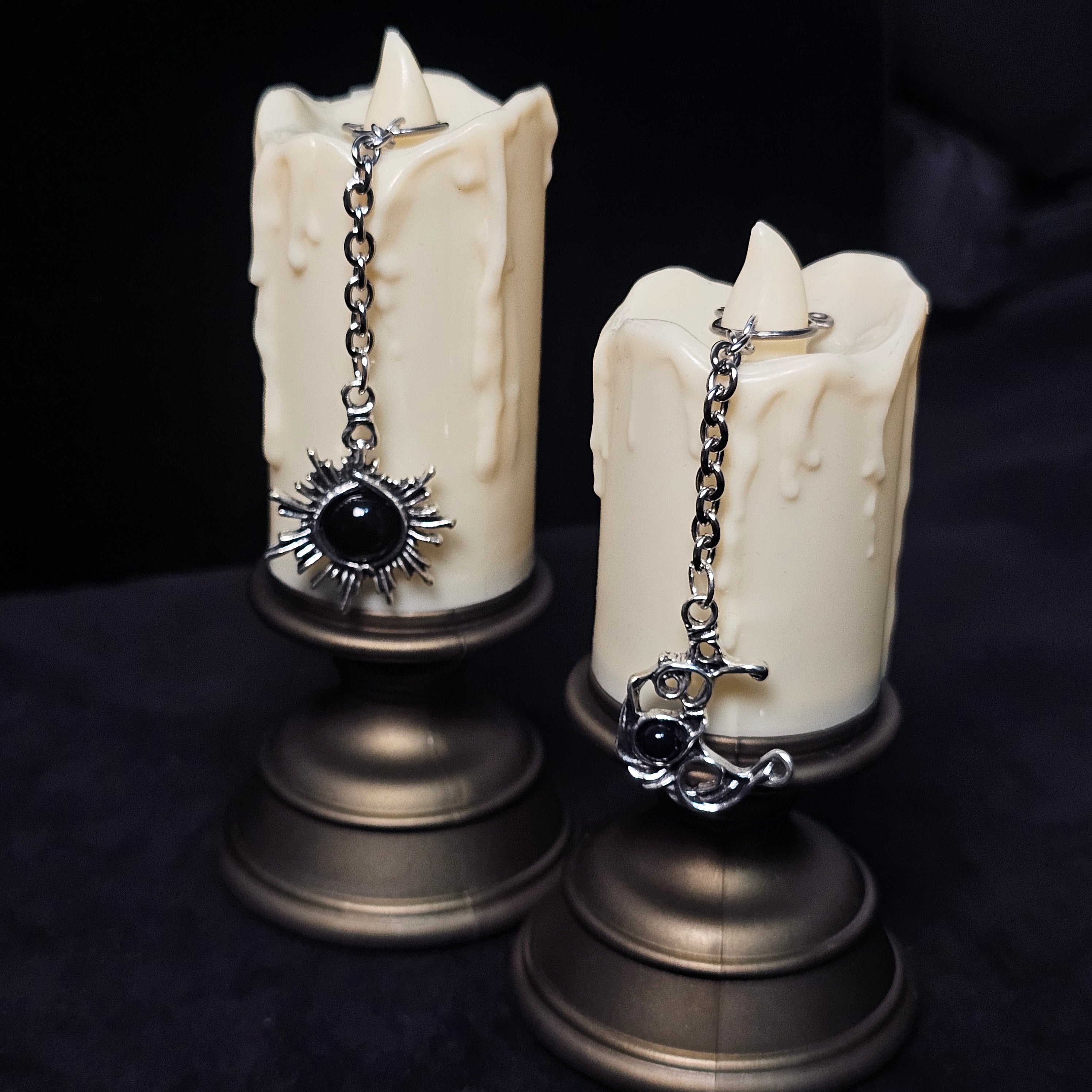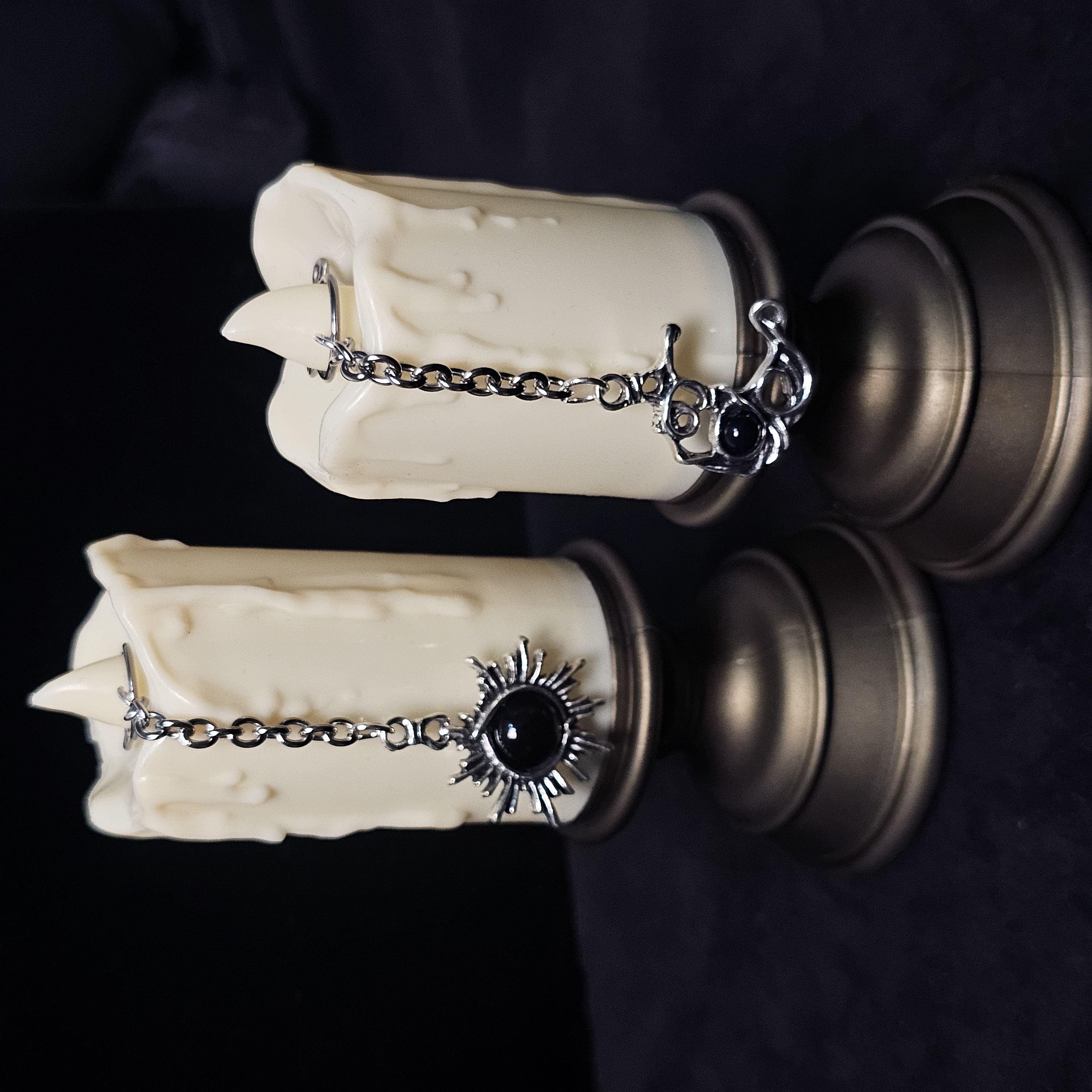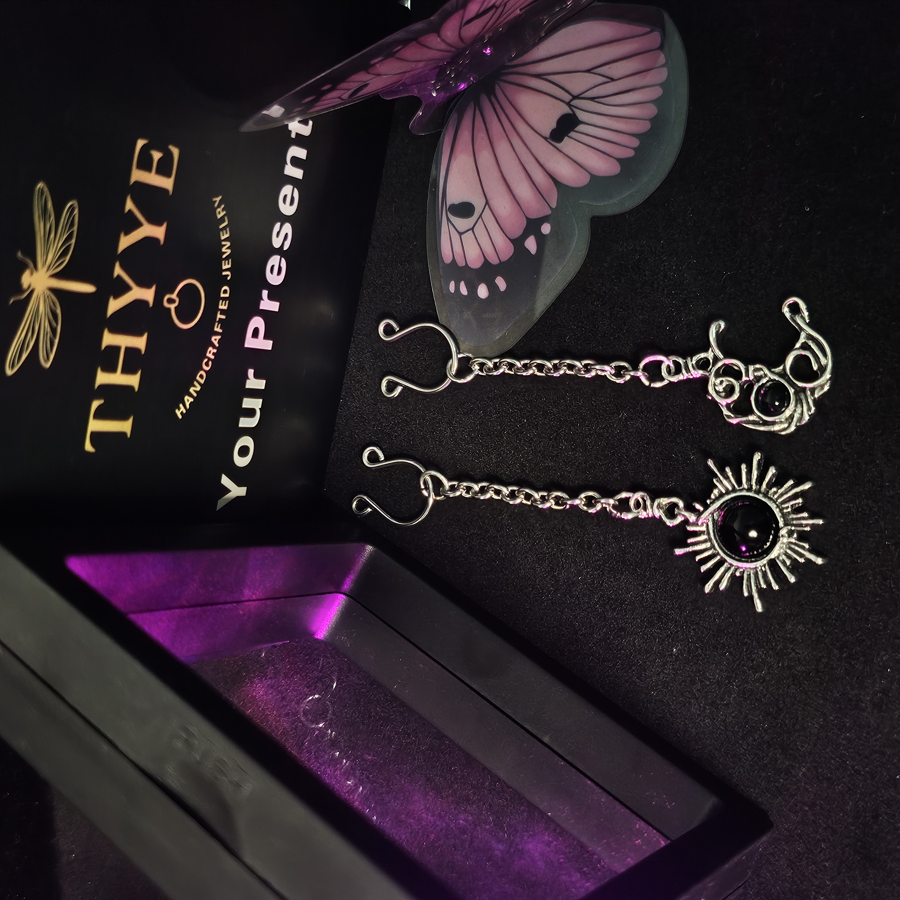 This nipple clamp, paired with exquisite moon and sun pendants and a delicate silver chain, exudes a sense of mystery and balance. The silver horseshoe ring exudes a strong sheen, creating a simple yet powerful expression. The moon and sun symbolize yin and yang, night and day, adding depth and a dynamic spirit to the overall look. The silver chain adds a touch of depth and elegance to the wearer. The clamp's adjustable design allows for precise adjustment of tension for comfort and stability. Whether used as a statement accessory, a festive embellishment, or a playful interaction between couples, it creates a unique atmosphere and charm. More than just an accessory, it is an artistic expression that symbolizes balance and individuality.