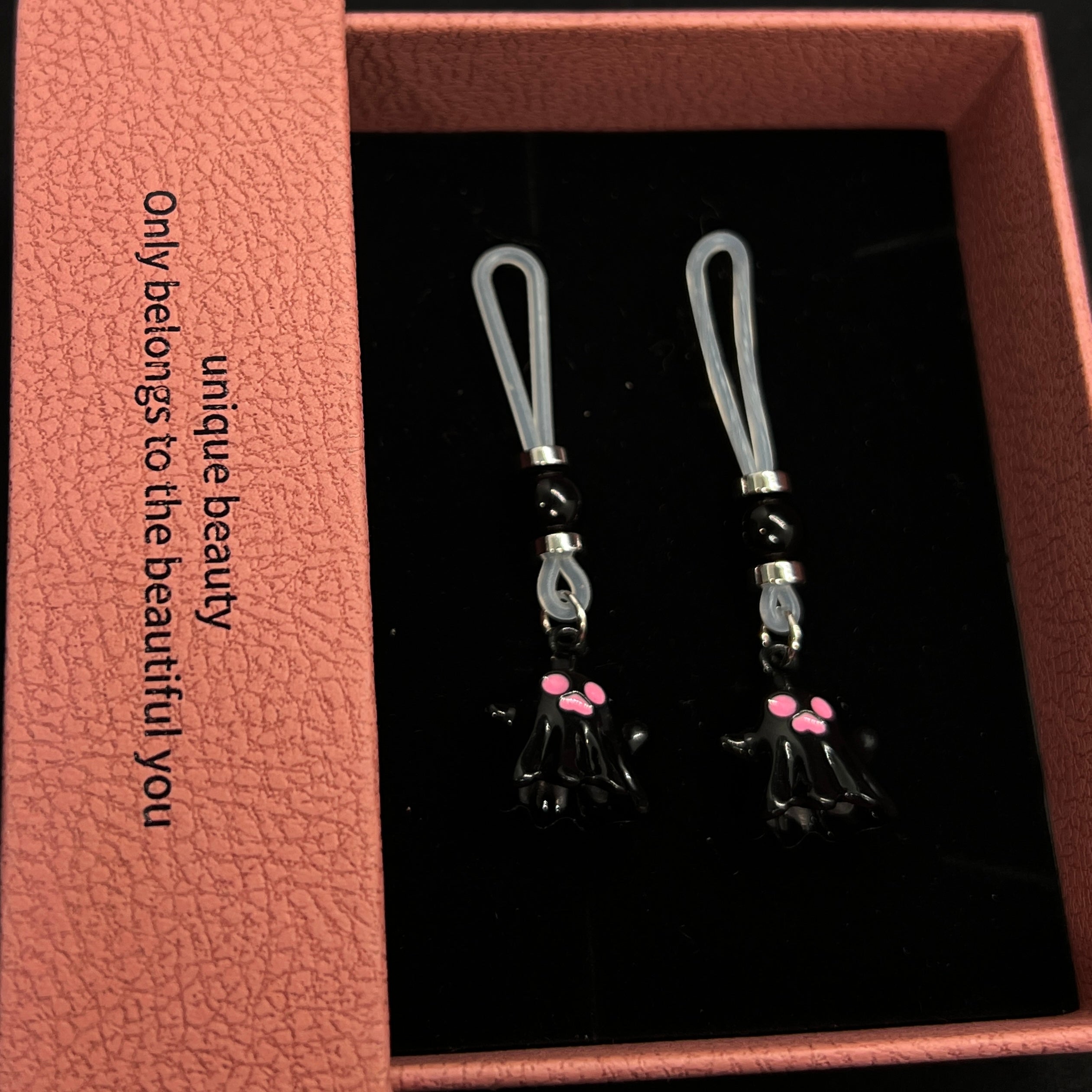 This adjustable nipple clip features a sleek black bead paired with a black Halloween ghost pendant, blending playful charm with contemporary elegance. Its smooth finish and dark tones create a mysterious, sophisticated look. Ideal for layering or standalone wear, the piece adds subtle edge and festive character. The adjustable design ensures a comfortable fit, making it both stylish and practical — a refined accessory that expresses individuality with a touch of whimsical allure.