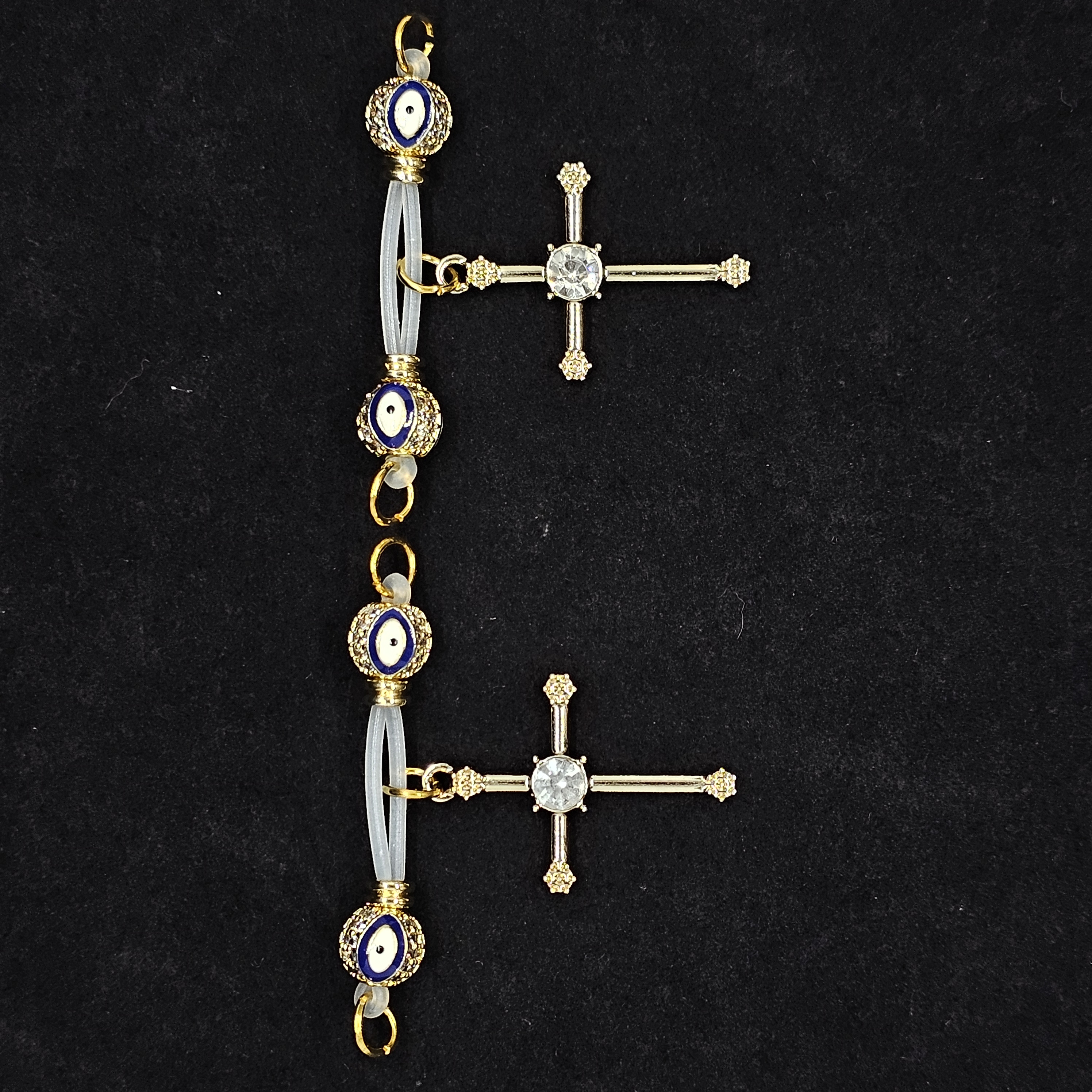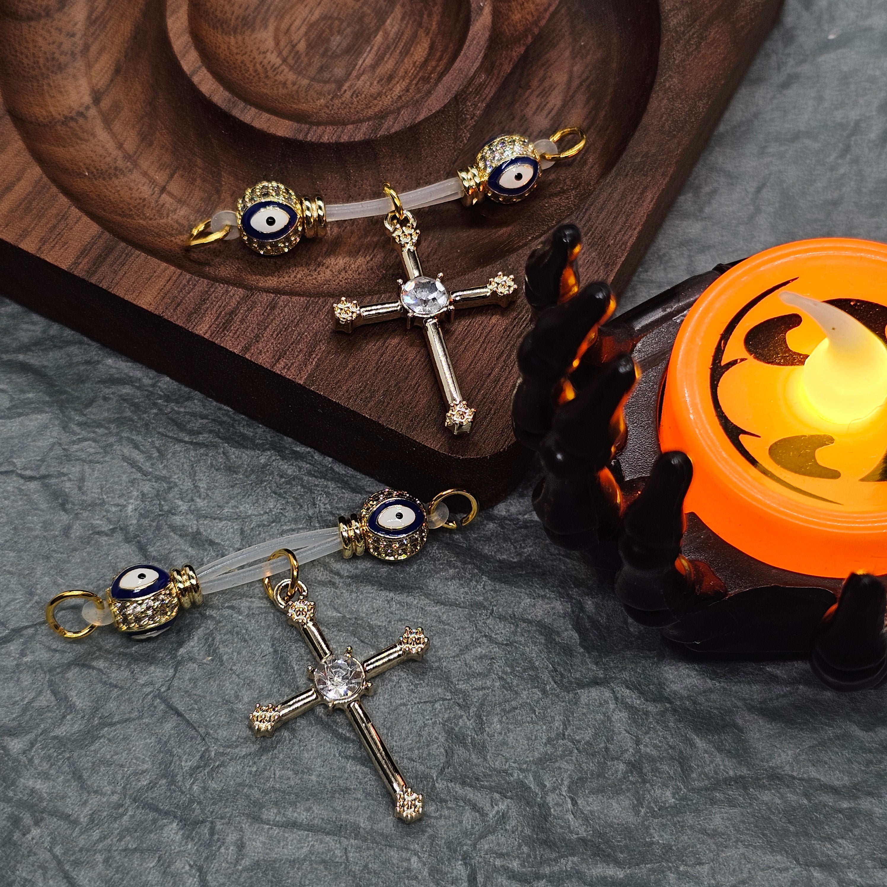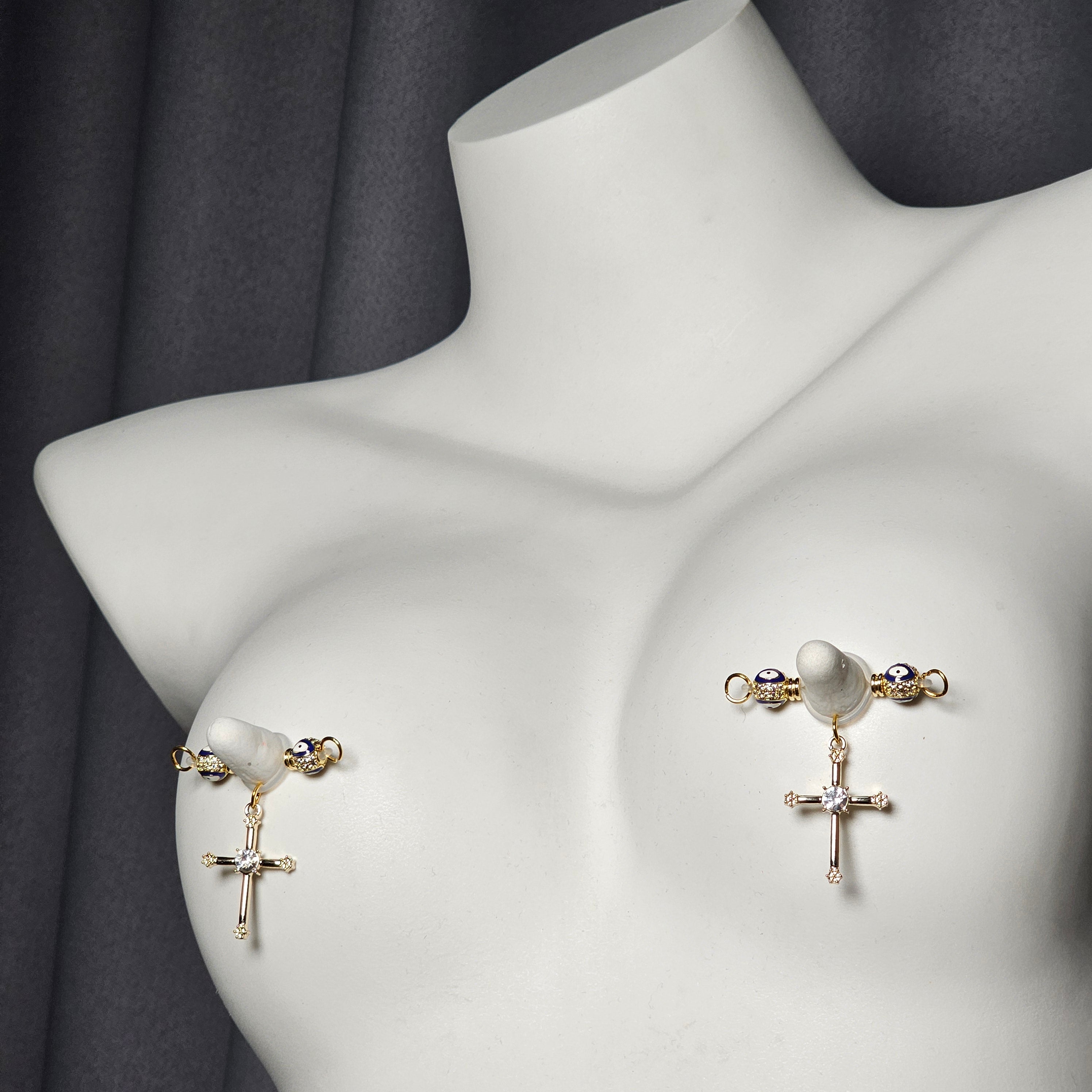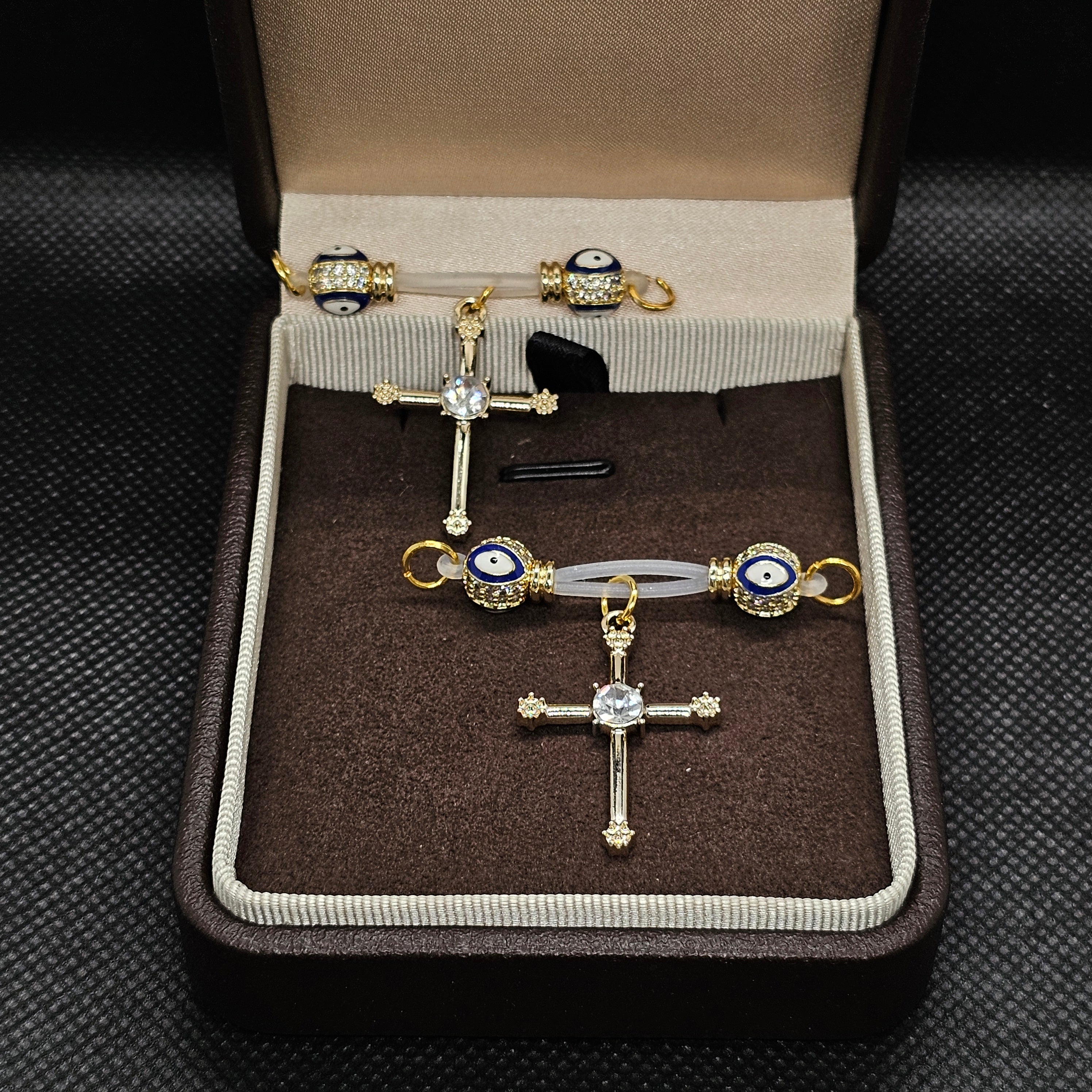 The gold barbell design combines an irregular eye motif with bamboo textures, accented by a diamond-encrusted 3D cross pendant. Its refined details shine with understated brilliance, while the adjustable fit ensures comfort and versatility. Each curve embodies a balance of strength and grace, radiating confidence, mystery, and sophisticated sensuality.