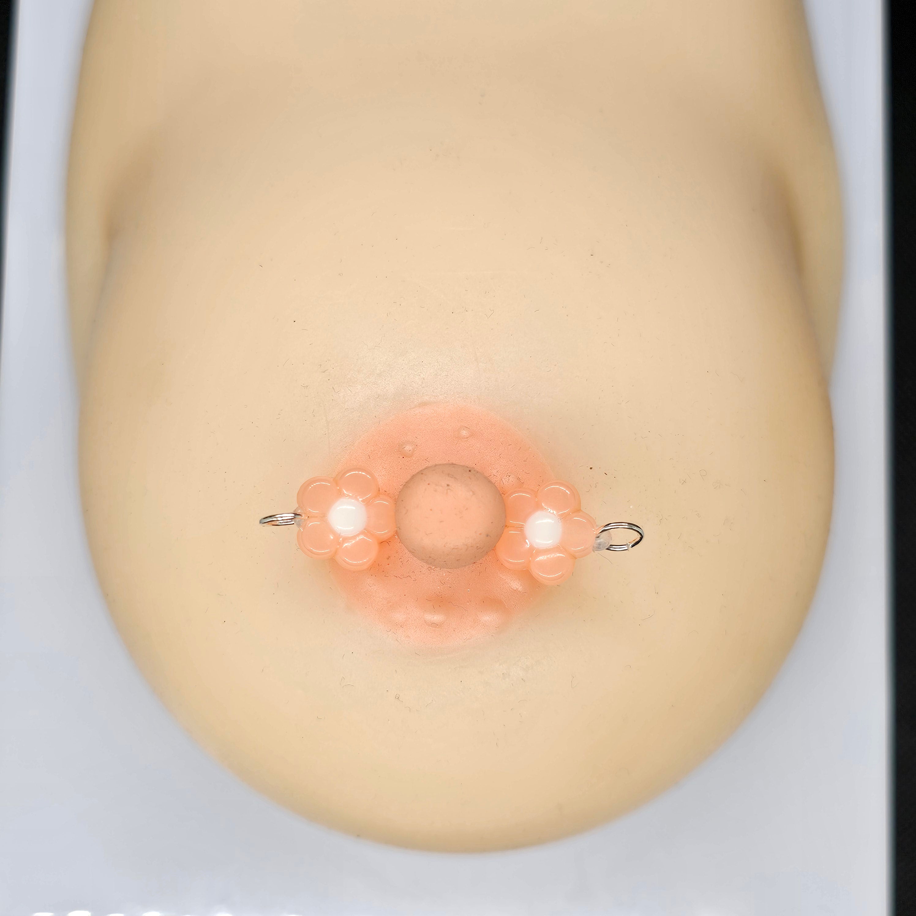 This barbell-style nipple clamp features delicate pink floral beads, blending softness with strength. The intricate petal details create a light, elegant look, while the adjustable design ensures both comfort and a perfect fit. The romantic pink hue adds a touch of refined charm, making it a statement of graceful individuality and elevated allure.