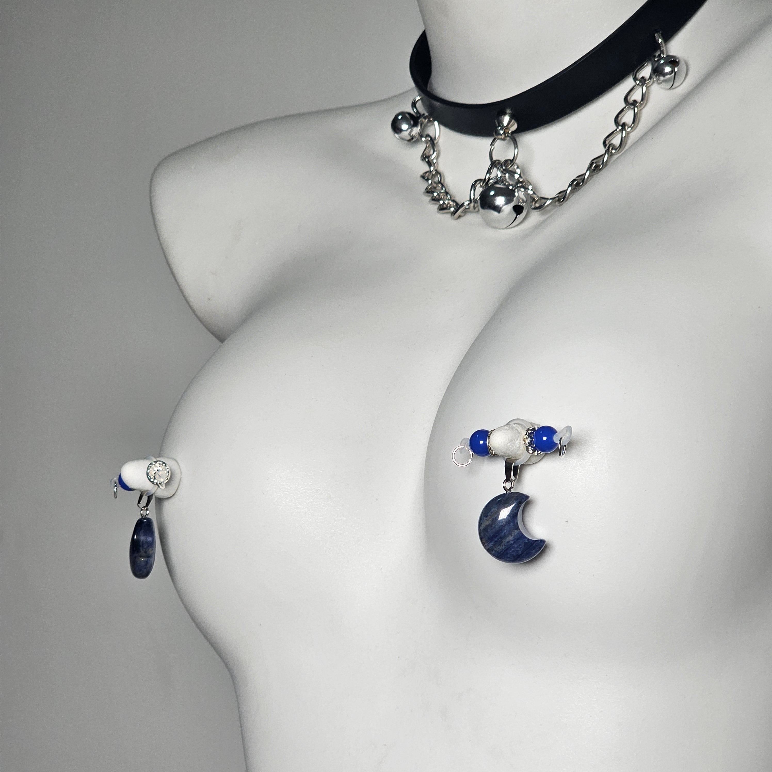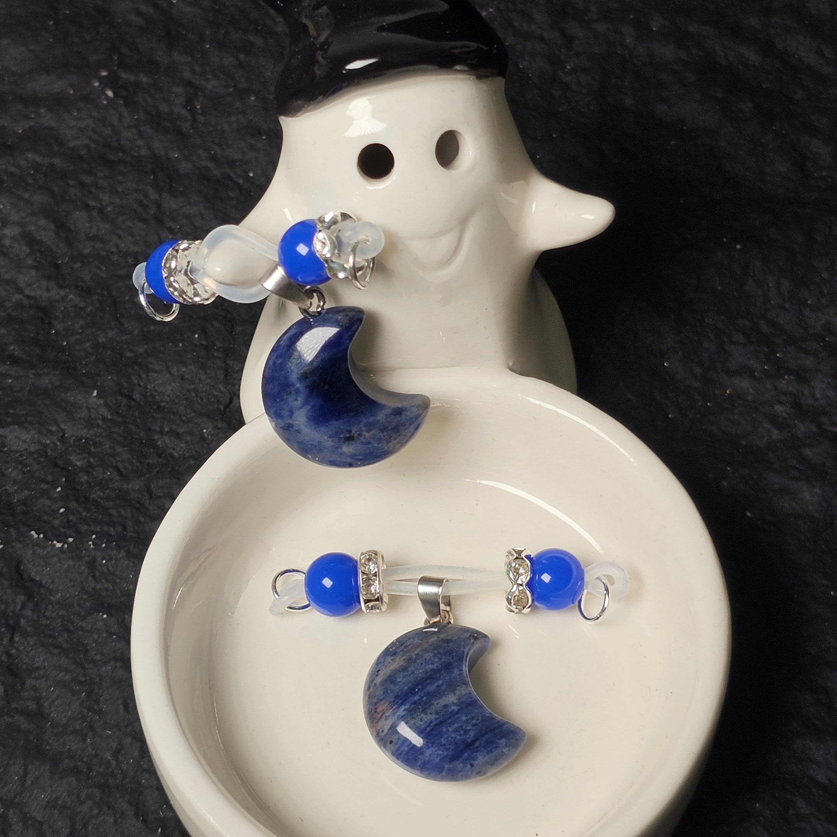 This barbell-shaped piece perfectly blends minimalist elegance with celestial allure. Featuring deep blue beads and a moon pendant inlaid with a blue energy stone, it exudes a refined and mystical aura. Its streamlined design offers both comfort and durability, while meticulous craftsmanship accentuates every detail. The perfect addition to your accessories collection, this piece offers a subtle yet striking touch, combining modernity with cosmic inspiration. Whether worn daily or for special occasions, it exudes tranquility, style, and timeless charm.