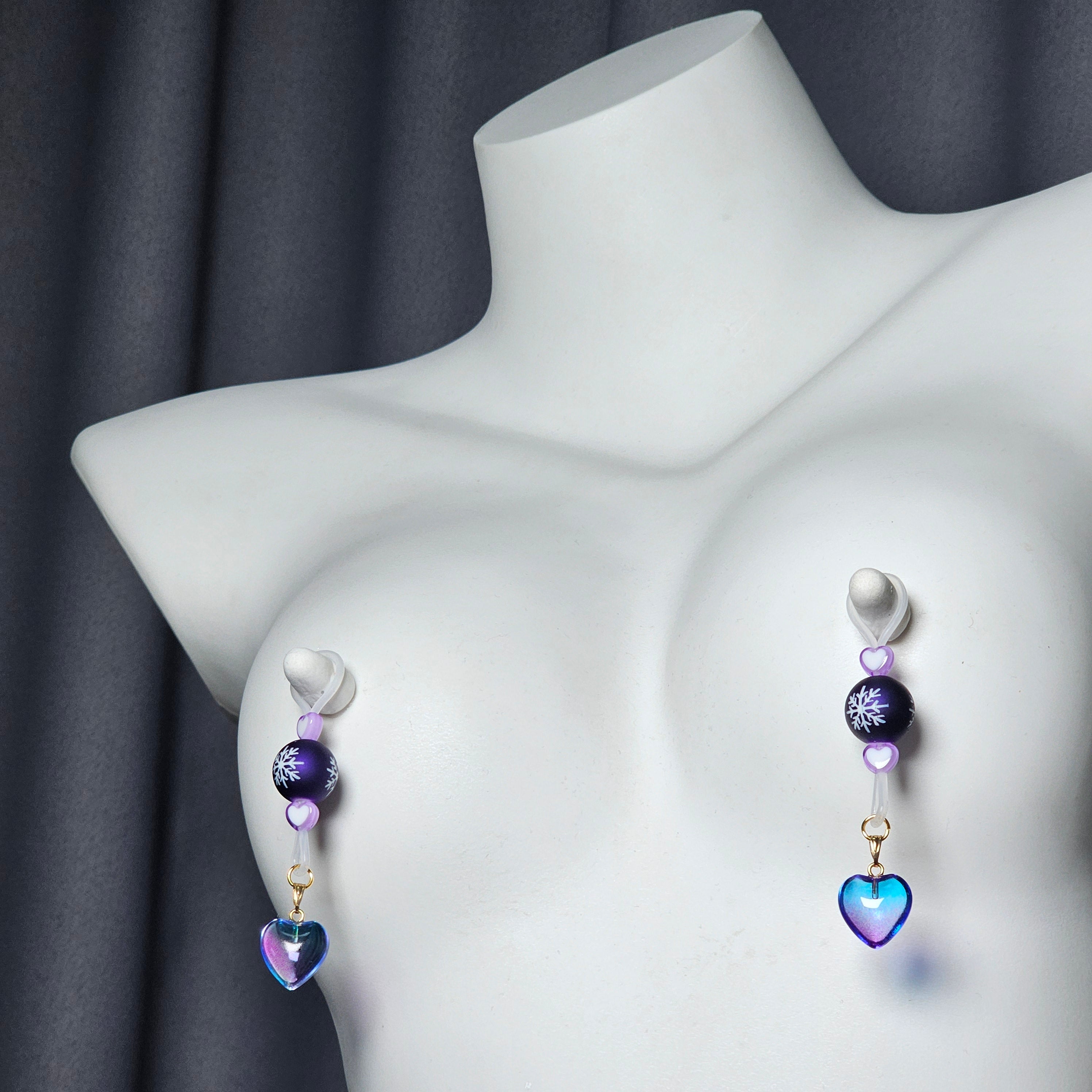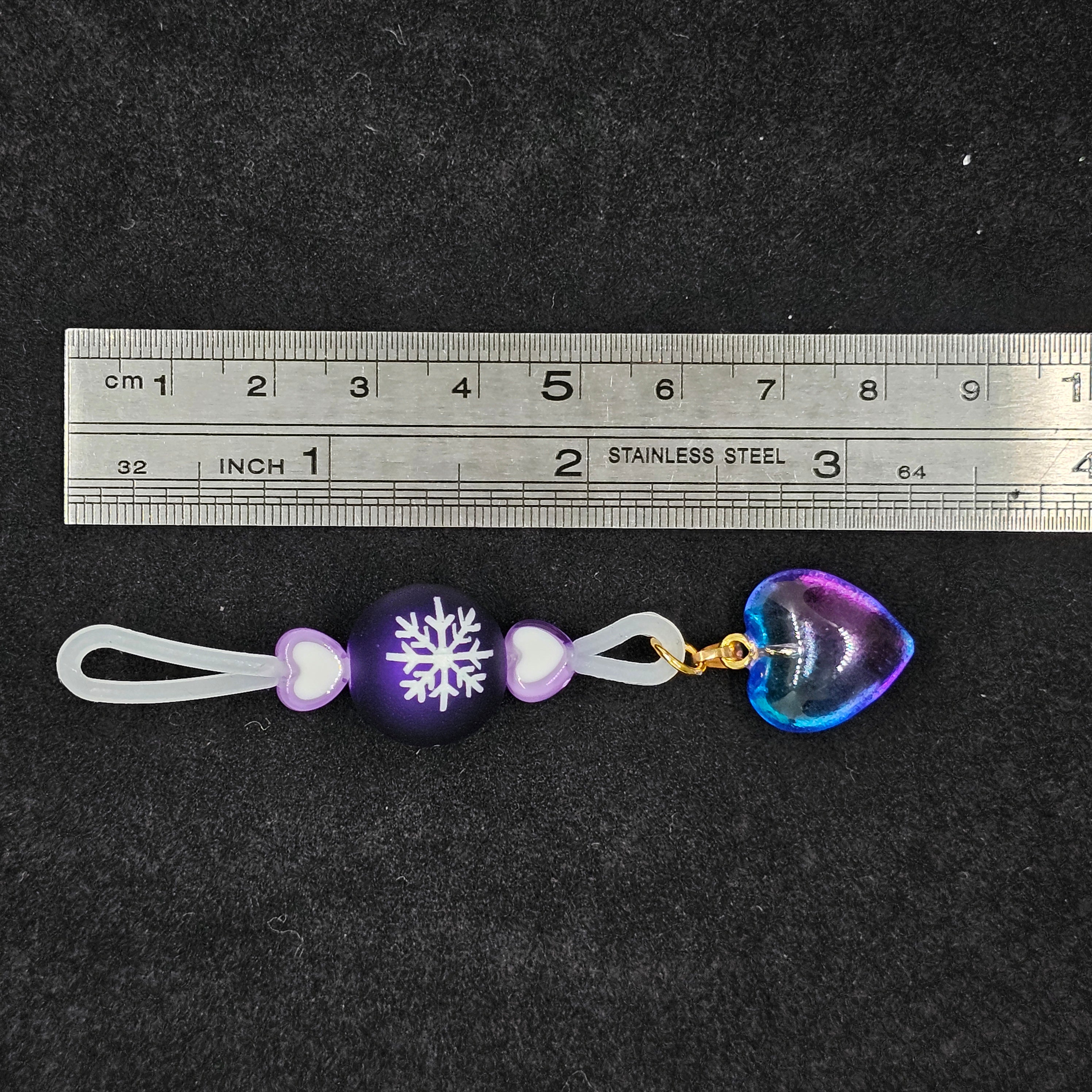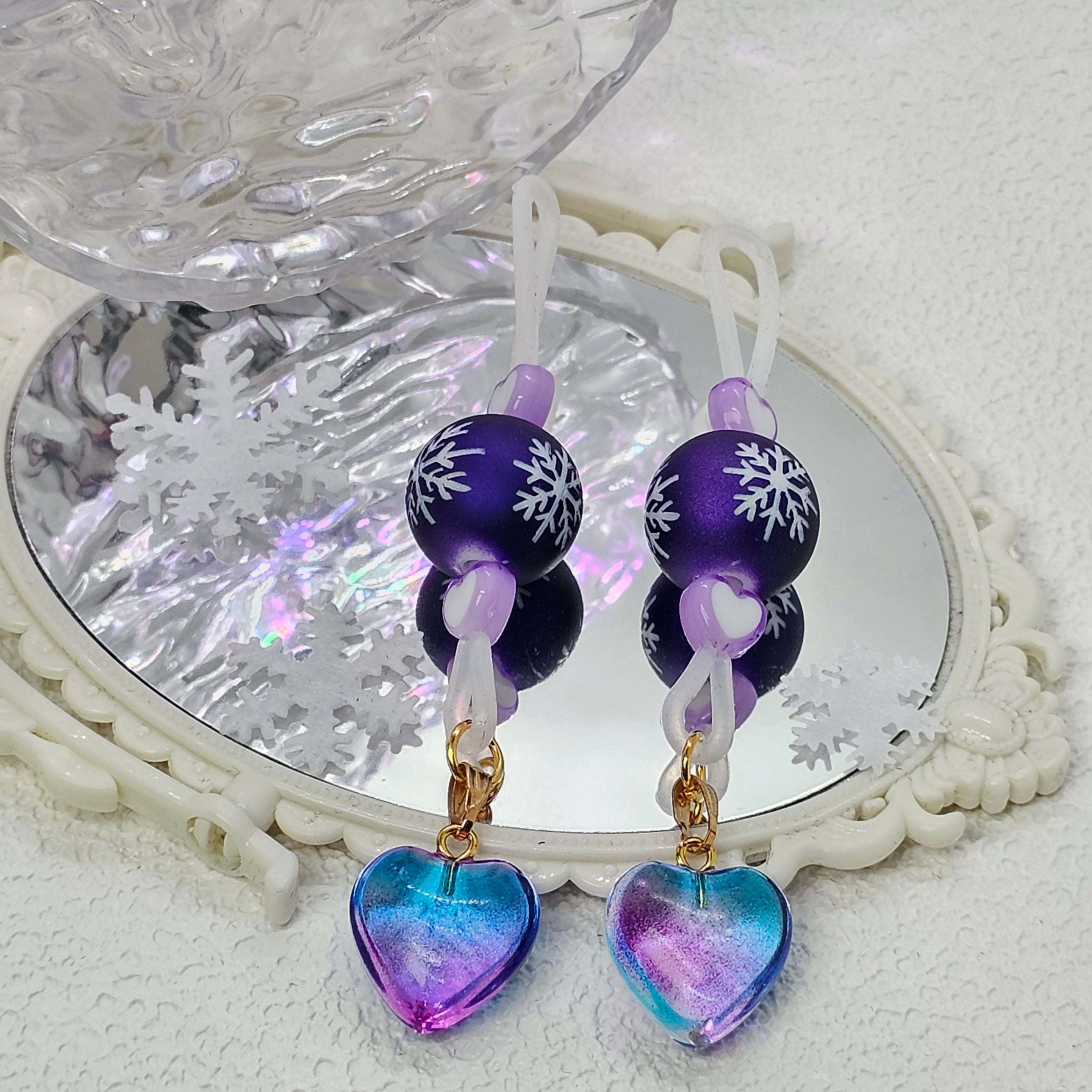 This design blends dreamy purples and soft blues, combining heart and snowflake bead motifs for a touch of romantic artistry. The translucent blue heart pendant sparkles with delicate brilliance, complementing the violet accents in perfect harmony. With an adjustable structure for comfort and fit, it offers a refined balance of elegance and individuality, radiating subtle sophistication and allure.