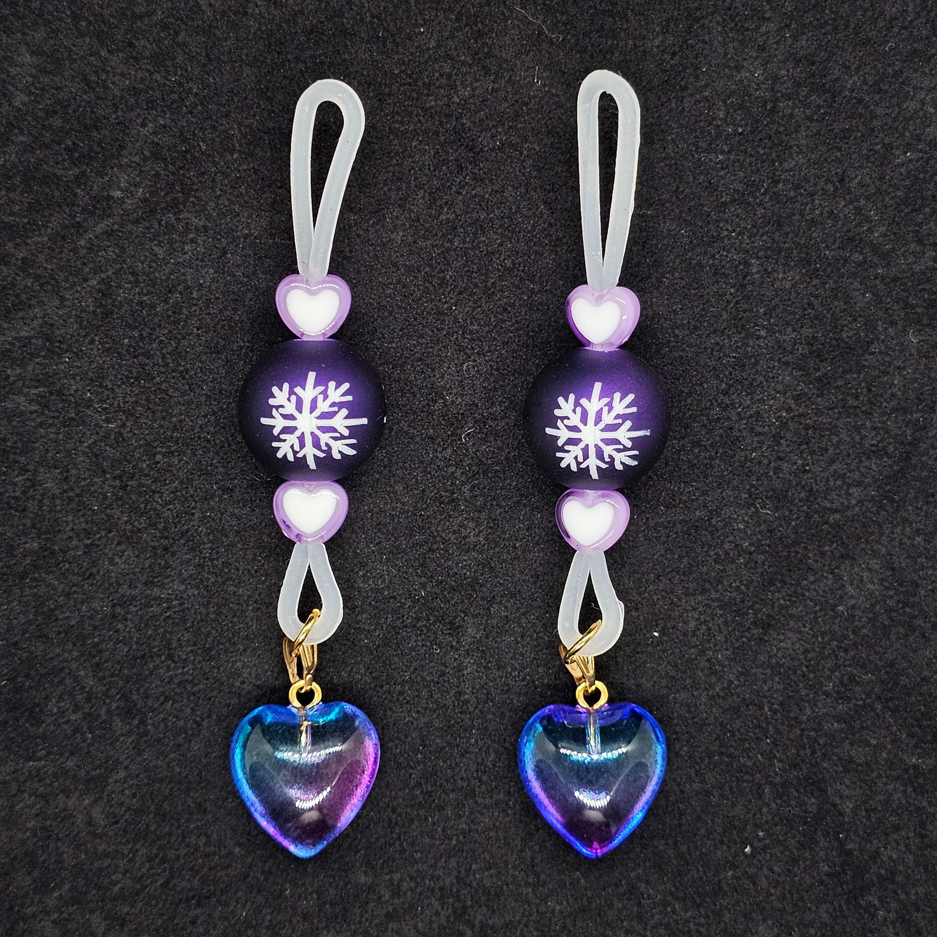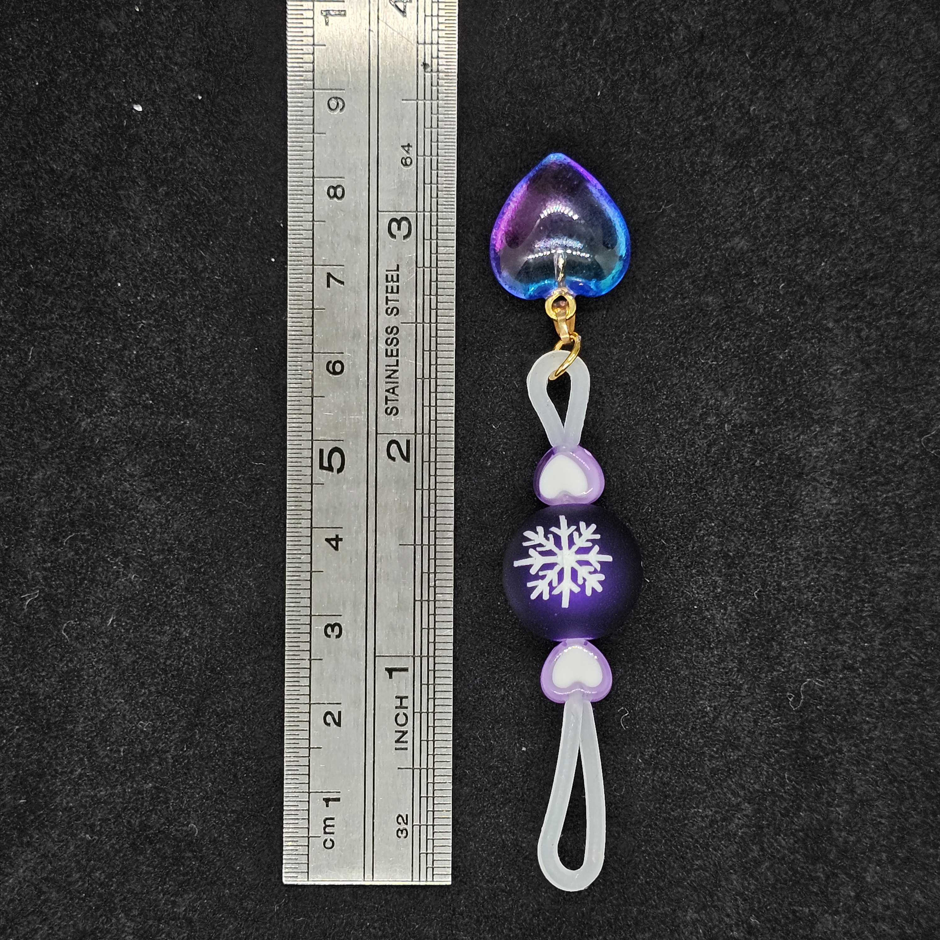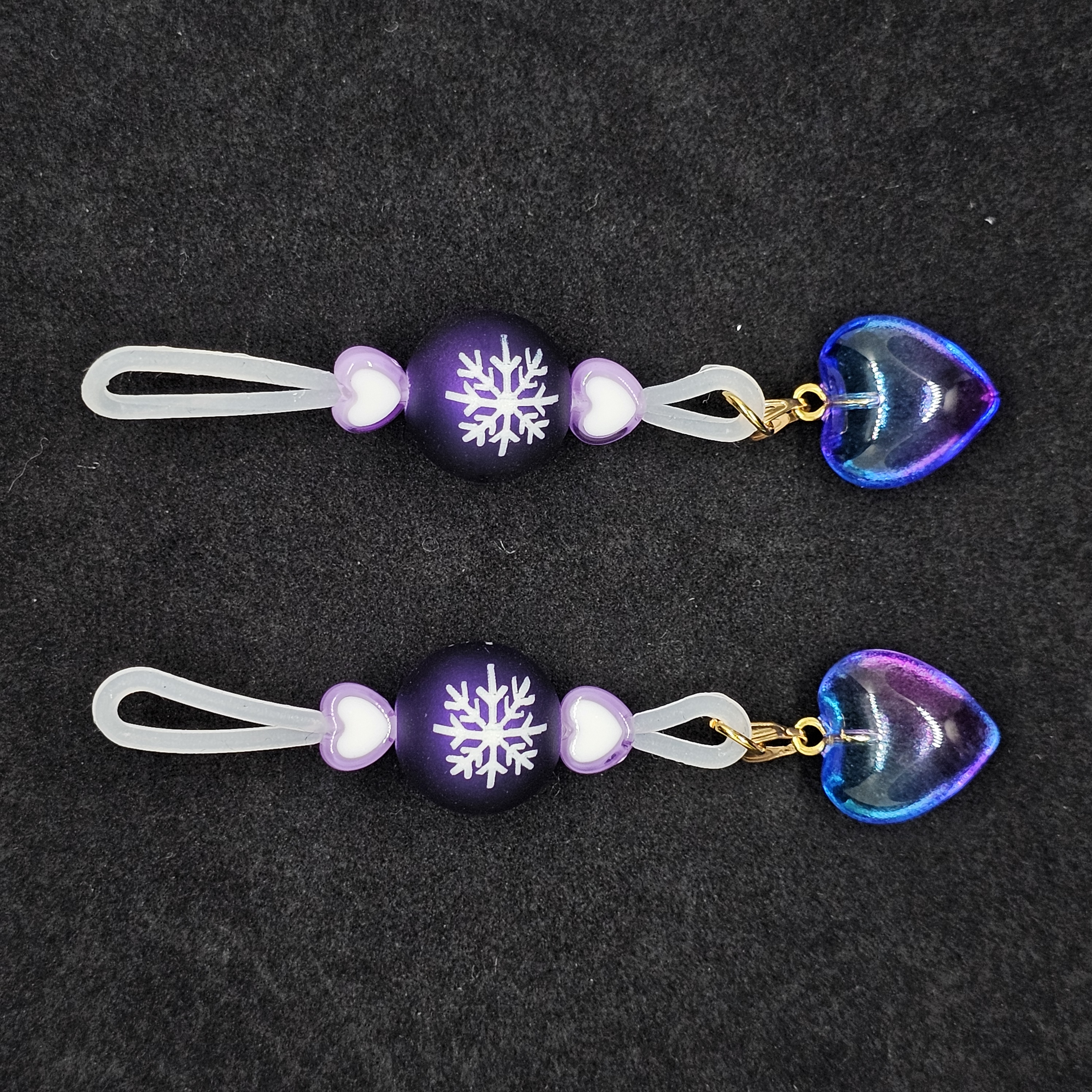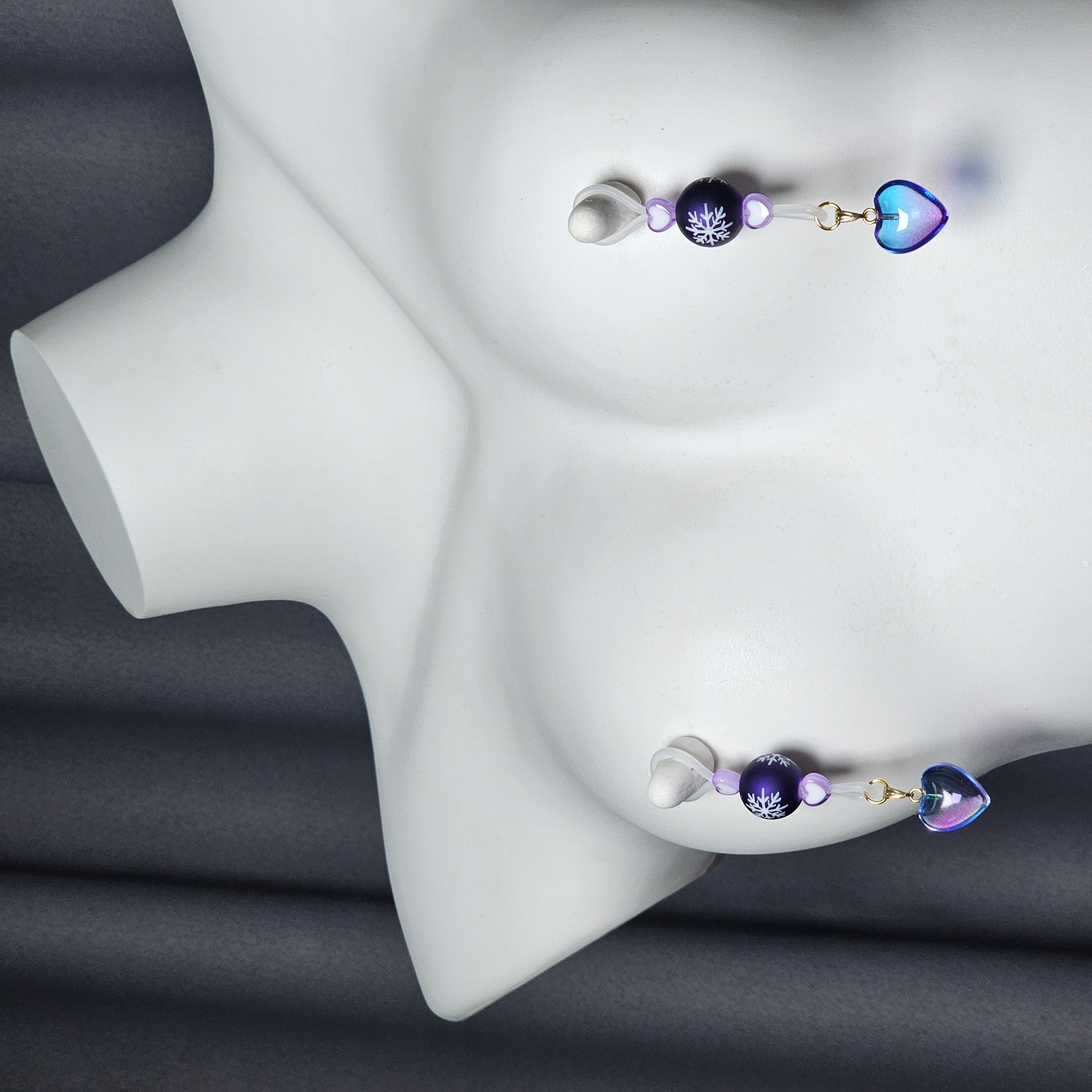 This design blends dreamy purples and soft blues, combining heart and snowflake bead motifs for a touch of romantic artistry. The translucent blue heart pendant sparkles with delicate brilliance, complementing the violet accents in perfect harmony. With an adjustable structure for comfort and fit, it offers a refined balance of elegance and individuality, radiating subtle sophistication and allure.