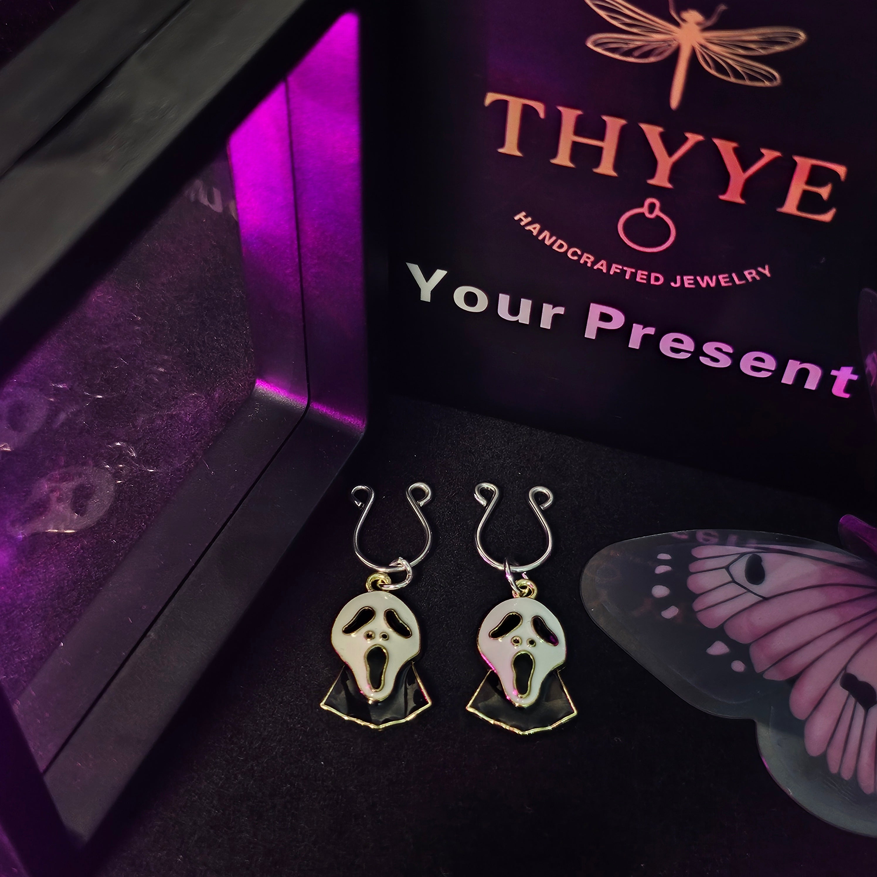 These nipple clamps perfectly combine Gothic style with Halloween elements. The pendant features a signature "scream" shape, creating a uniquely spooky atmosphere while maintaining a refined feel. The silver electroplating creates a cool sheen, while the horseshoe-shaped ring creates a sturdy, metallic feel. The clamps are adjustable for comfort and stability, perfect for every wearer. The chain embellishment adds dimension and can be worn alone or paired with a festive outfit, instantly creating a mysterious and daring aura. Whether for a Halloween party, role-playing, or as a fun gift between couples, these nipple clamps are sure to be an eye-catcher. More than just a festive accessory, they're a unique way to express your individuality and confidence.