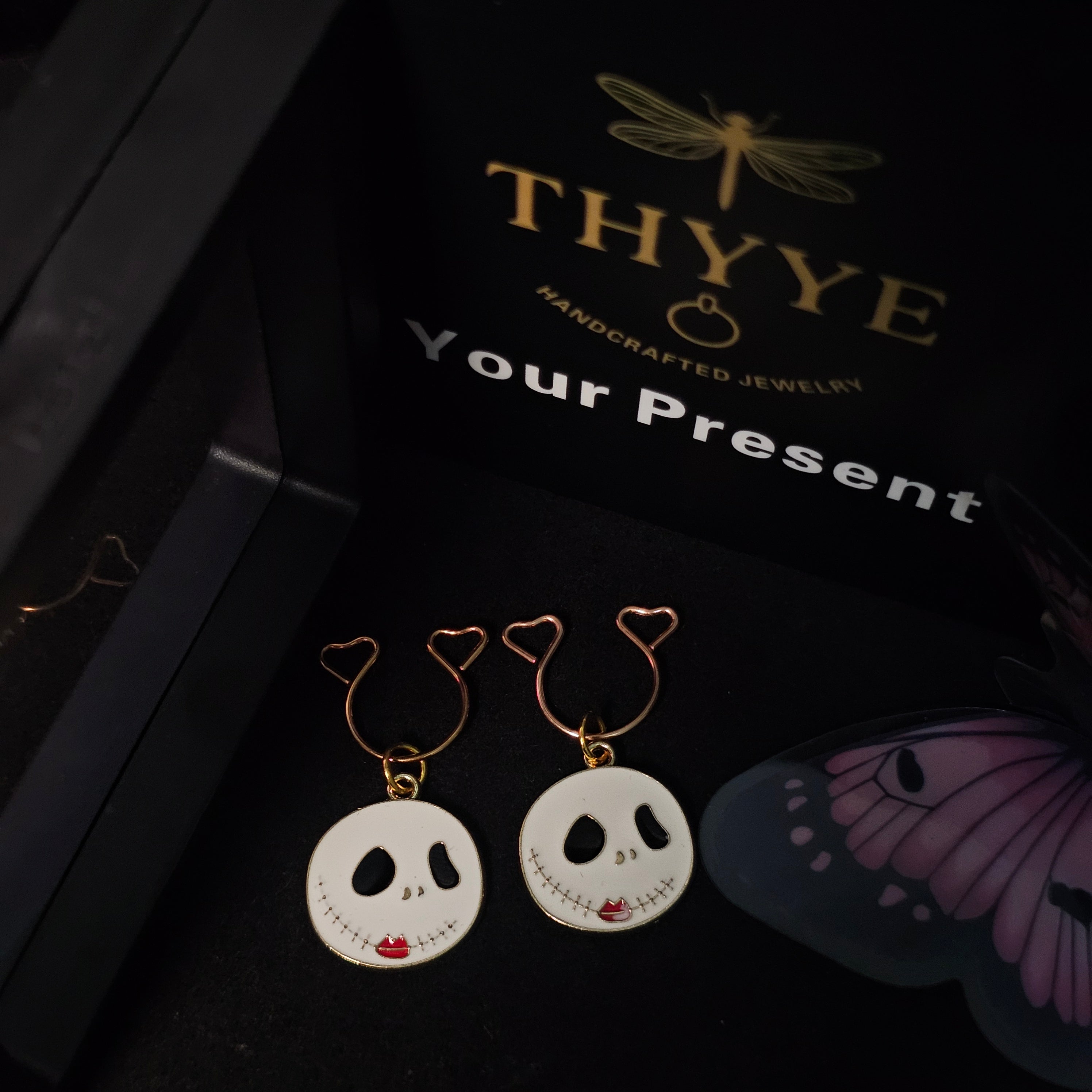 这些乳夹将经典万圣节元素与时尚设计完美融合。马蹄形环采用亮金色电镀,闪耀优雅。吊坠灵感源自南瓜脸,采用独特的白色设计。可调节夹环佩戴舒适,可精确调节松紧,同时保持安全轻盈的佩戴体验。链条和精致的装饰提升了设计感,使其不仅仅是一件趣味十足的节日配饰,更是一种大胆的宣言。无论是万圣节派对、角色扮演游戏,还是充满乐趣的情侣聚会,它都能为整体造型增添点睛之笔。它不仅仅是一件珠宝,更是一份节日惊喜和独特的表达。
