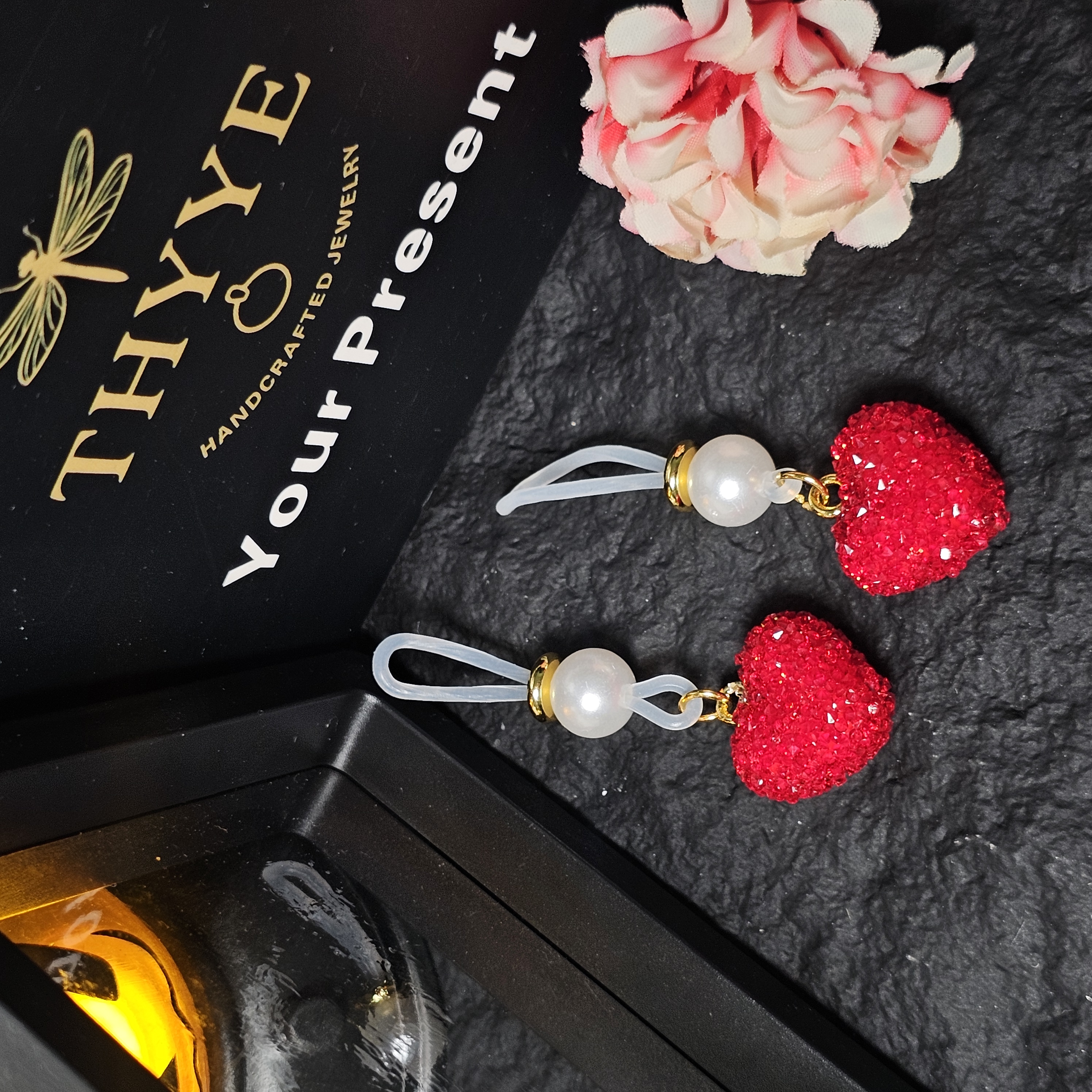 This nipple clamp blends romance and luxury, perfectly embodying the feminine beauty and unique charm of women. The pendant features a shimmering red gemstone in a heart-shaped design, symbolizing love and passion. The intricately set gemstones radiate a captivating brilliance, while the surrounding diamond embellishments add a touch of luxury. The ingeniously designed and adjustable nipple clamps offer exceptional comfort and adaptability to any body type, ensuring seamless all-day wear. Whether for everyday wear or special occasions, these clamps will add a touch of dazzling glamour, radiating confidence and elegance. The perfect gift for yourself or a loved one, filling every moment with love and sparkle.