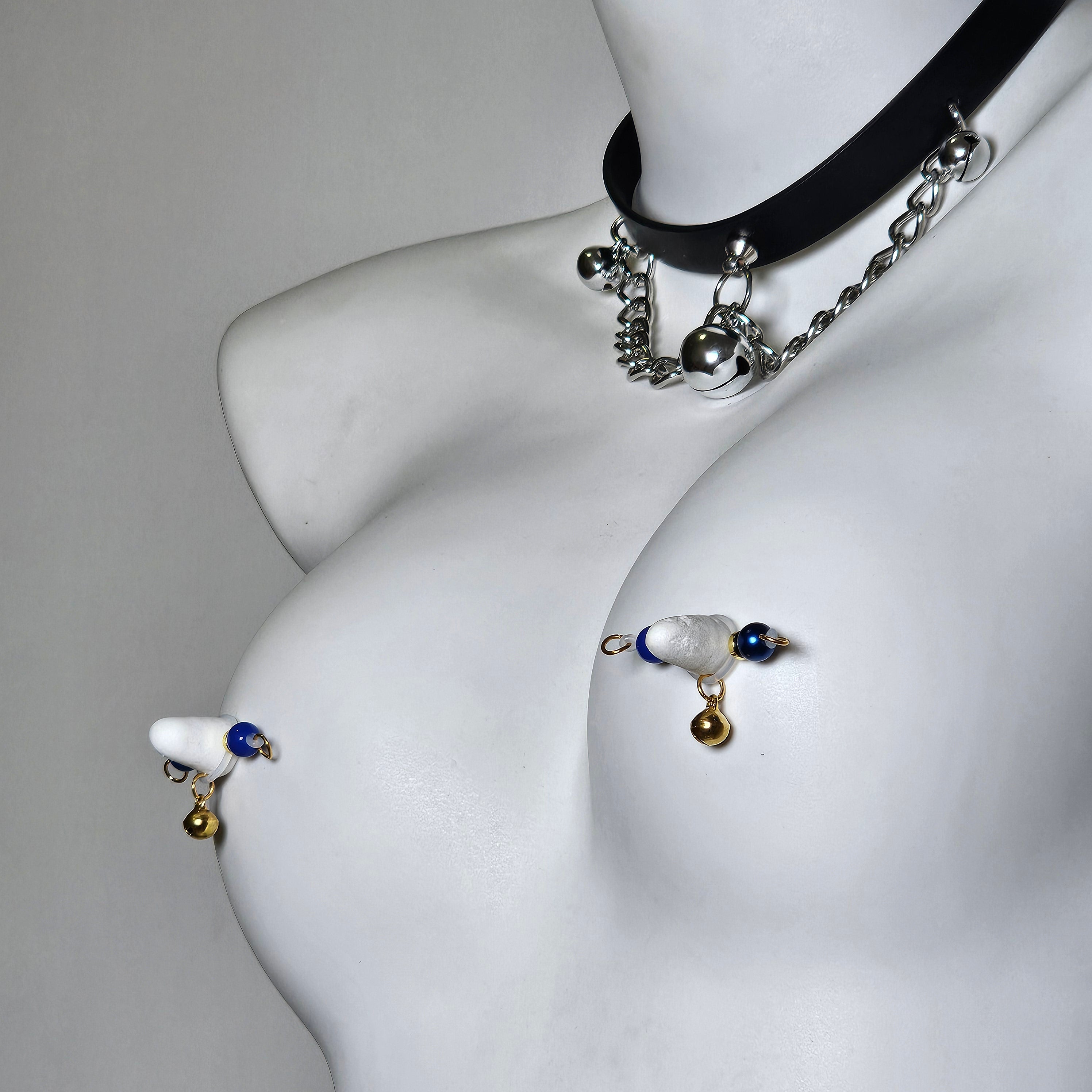 Inspired by the shape of a barbell, this piece, embellished with sapphire blue beads and a delicate gold bell pendant, exudes understated luxury and a vibrant aesthetic. The deep blue, as mysterious as the night sky, complements the shimmering gold, lending the piece an elegant and unique character. The adjustable design offers a comfortable and flexible fit, easily adapting to any occasion. Whether for everyday looks or special occasions, it imbues the wearer with confidence and charm. The fusion of exquisite craftsmanship and individuality makes this piece more than just a decorative touch; it expresses a unique and refined style.