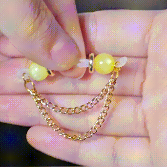 Inspired by luxury and strength, these barbell-style adjustable nipple clamps perfectly combine delicate materials with a unique aesthetic. The translucent yellow jade beads resemble frozen sunlight, radiating warmth and vitality. Paired with a gold chain, they create a subtle yet opulent finish, adding a touch of shimmering, flowing light to the overall look. The geometric, three-dimensional texture and the flexible chain cleverly blend to showcase the refined lines of a modern aesthetic while imbuing the piece with a unique tension and style. Crafted from sturdy metal, the clamps are smooth and flexible, allowing for adjustable tightness to ensure a comfortable and secure fit. The lightweight and tactile design elevates the piece beyond a playful accessory to a statement piece of fashion and individuality. Whether worn in private or on special occasions, they imbue the wearer with a sense of confidence and sophistication, becoming a refined accent in every gesture.
