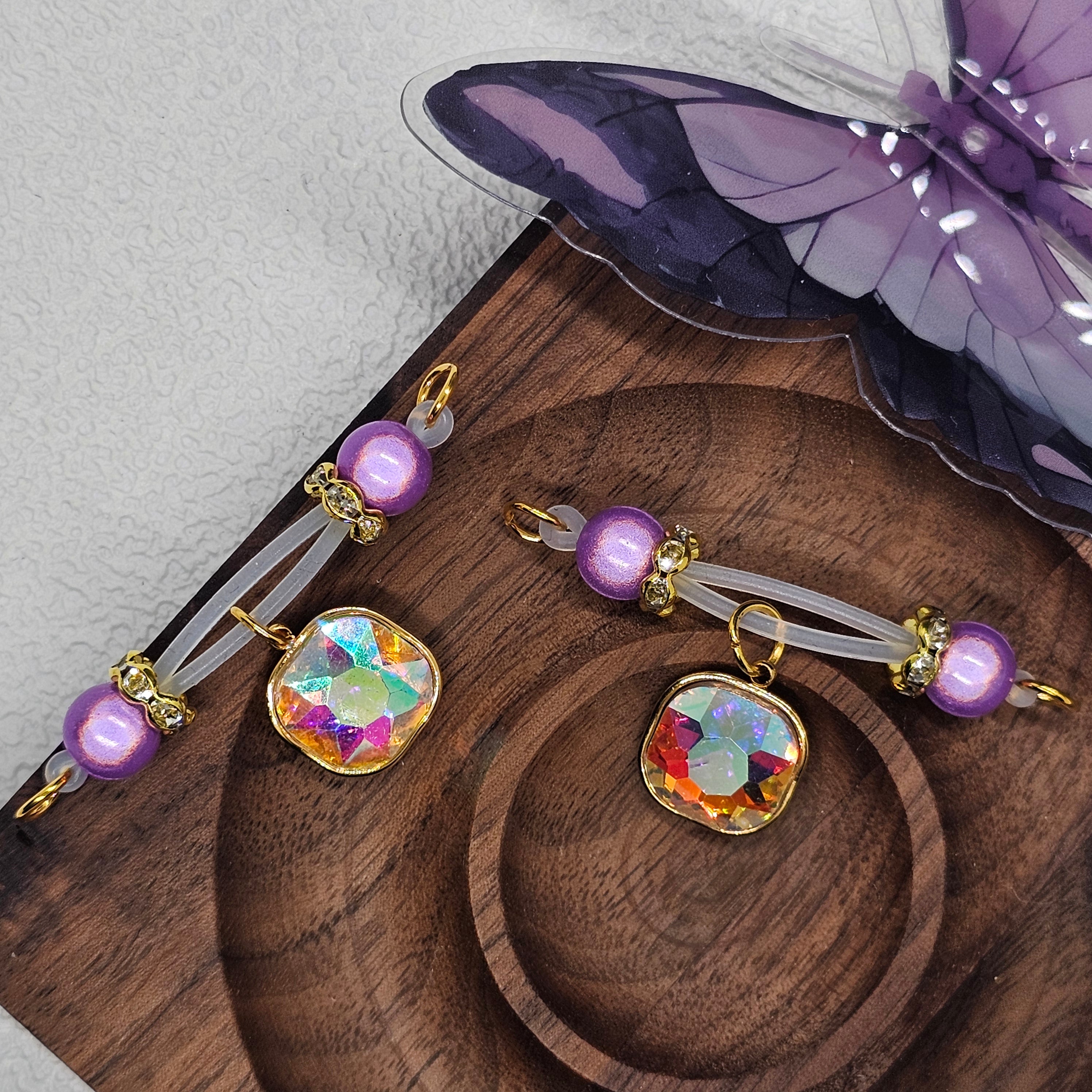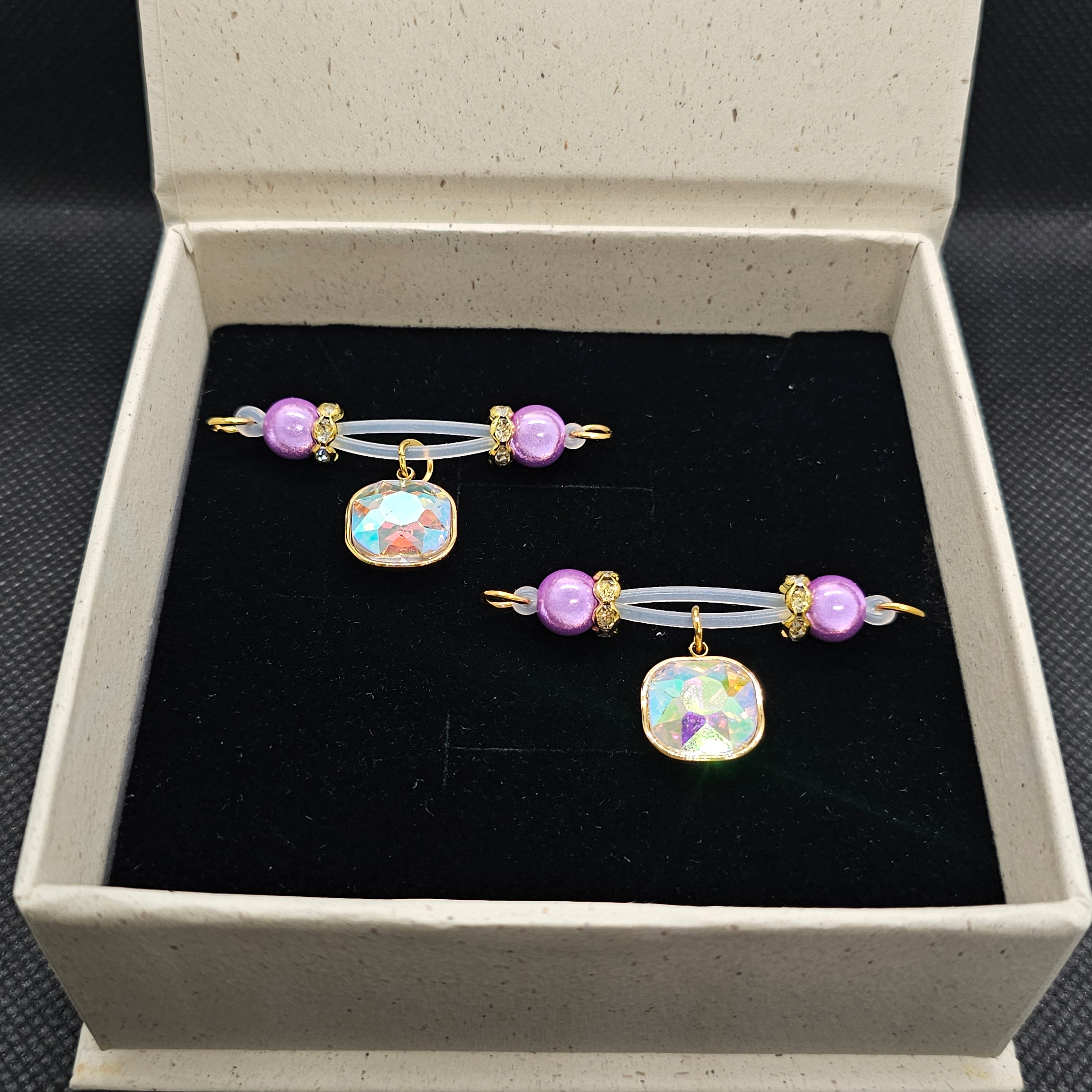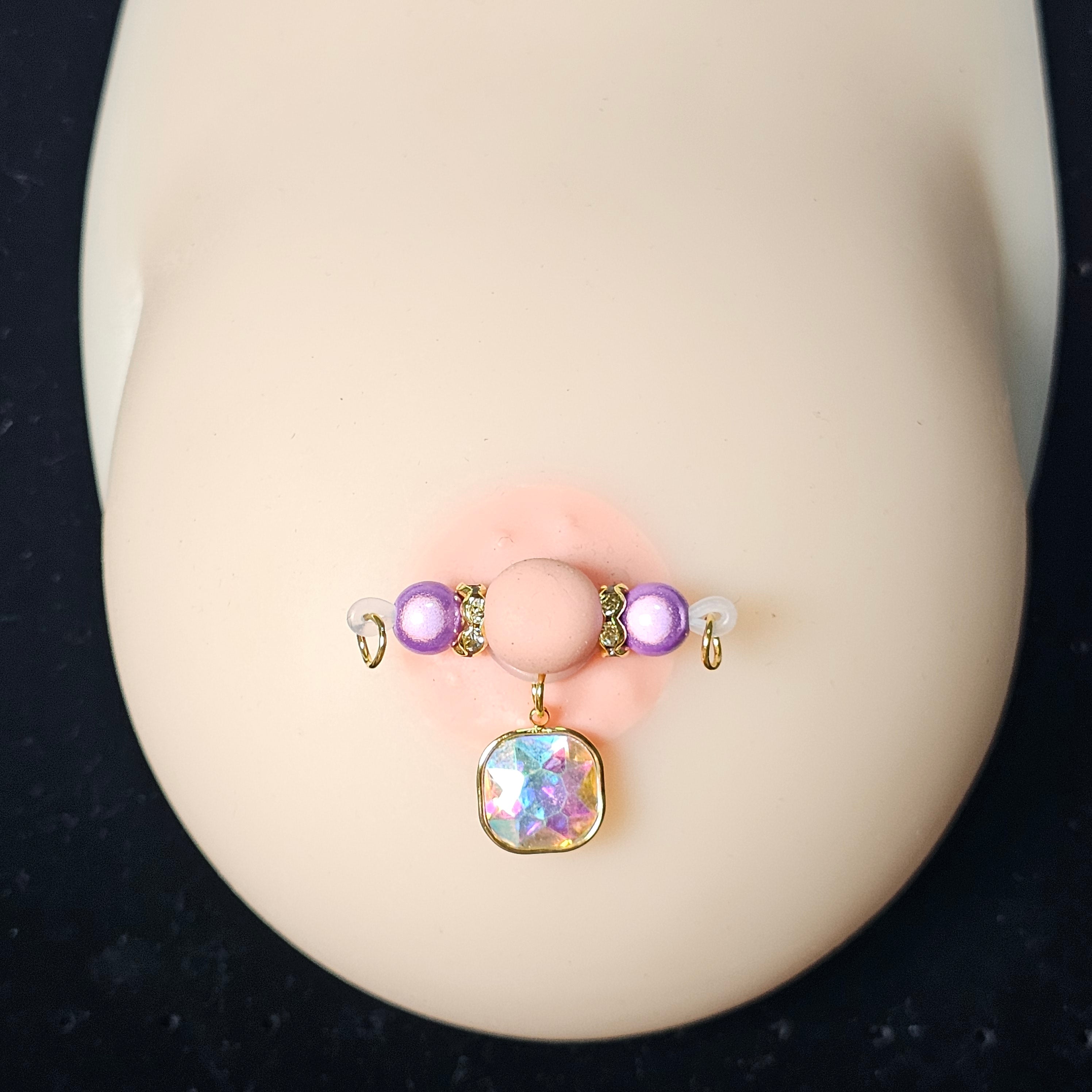This adjustable barbell clip combines deep purple beads with a square, multi-faceted gemstone pendant, creating a striking blend of elegance and sophistication. The polished beads offer a smooth, refined texture, while the faceted gemstone captures light beautifully, adding a luxurious sparkle. Designed for comfort and effortless adjustment, it sits securely while enhancing personal allure. Perfect for intimate moments, stylish photography, or as a chic accessory to elevate any look. Minimalist yet opulent, this piece balances subtle charm with high-end detailing, making it an exquisite statement of refined taste and modern elegance.