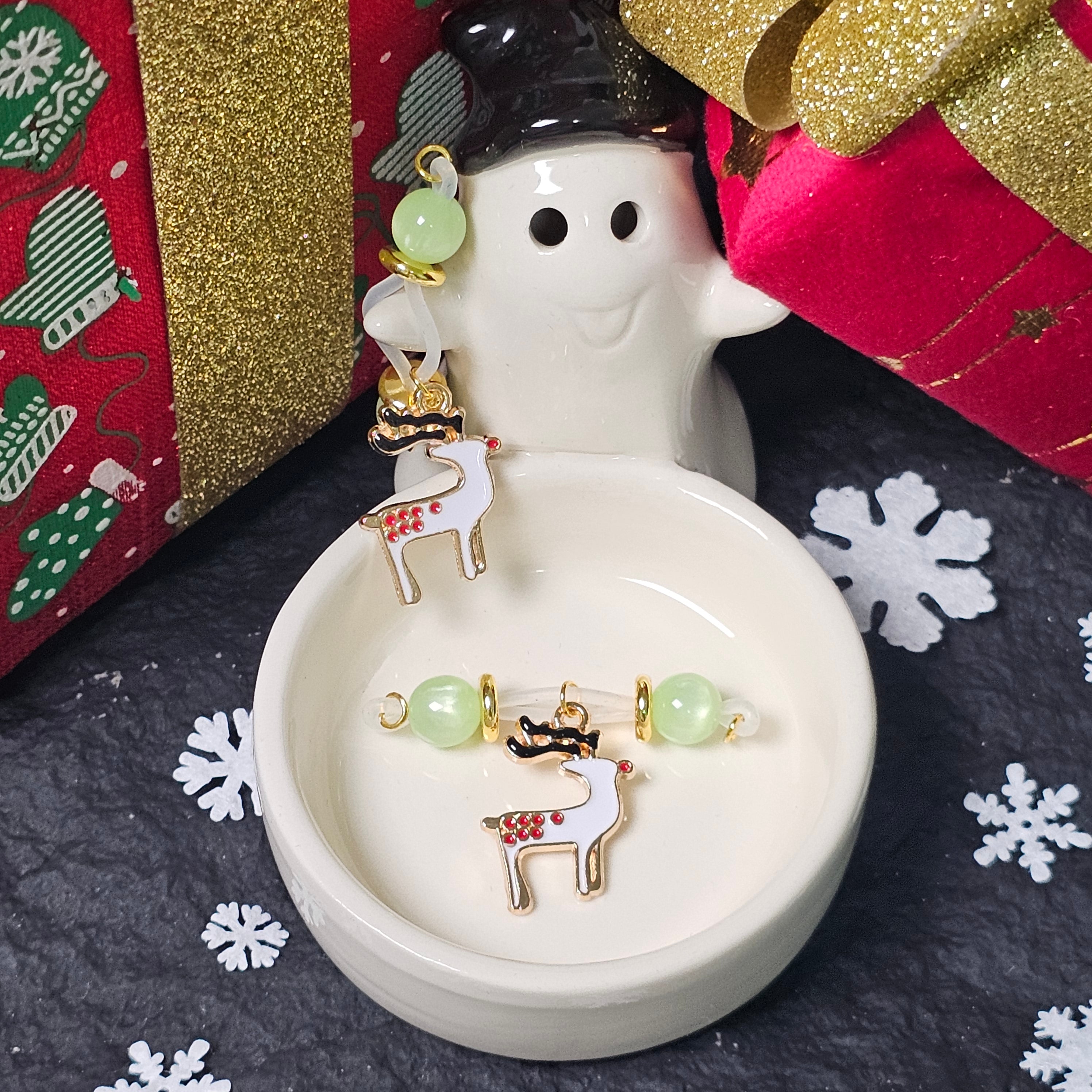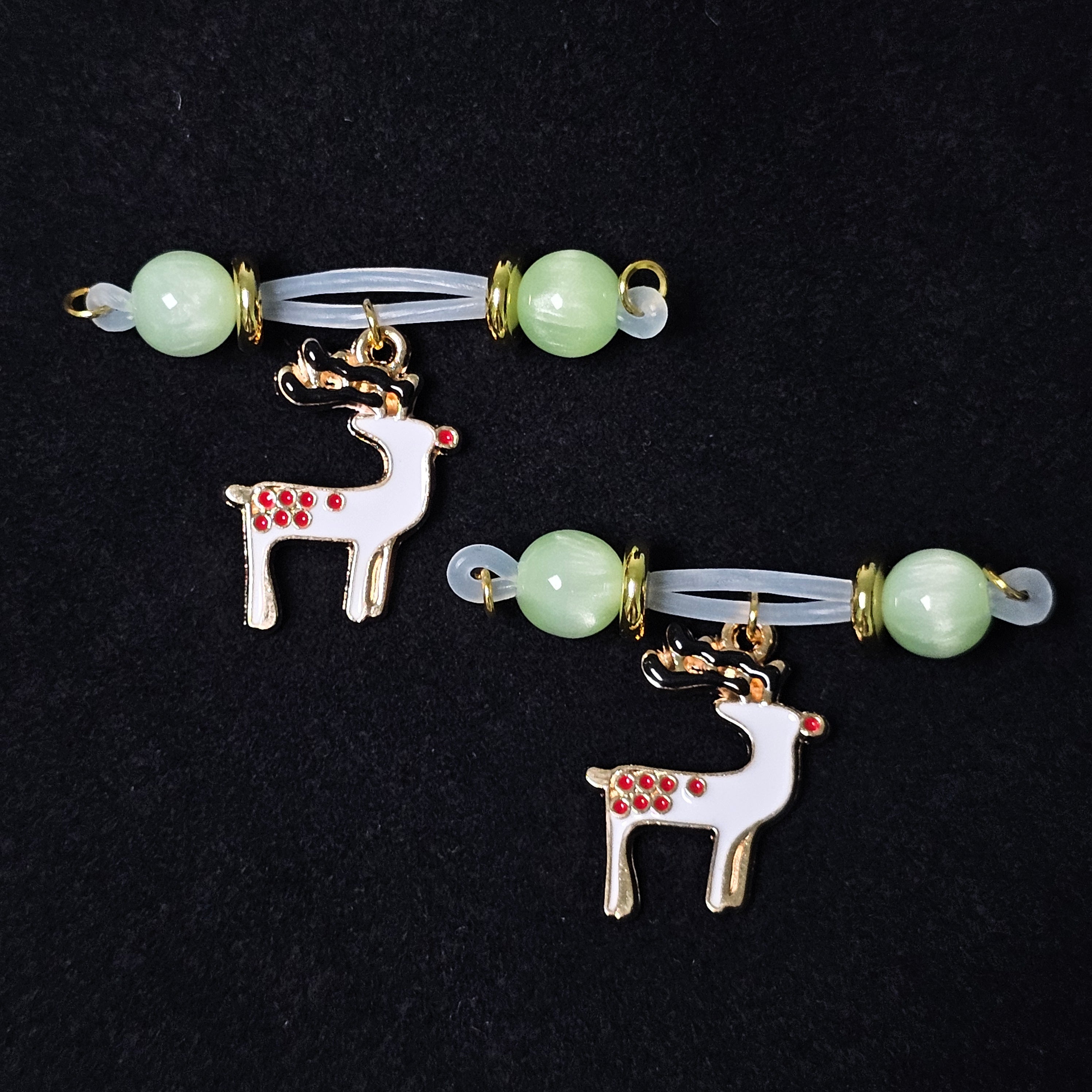 Add a touch of magic to the holidays with these adjustable barbell-style nipple clamps. Embellished with light green beads and an elegant white reindeer pendant, these clamps exude a sophisticated, wintry vibe. The screw-type adjustment allows for precise control of pressure, ensuring both comfort and increased stimulation. The light green beads exude a fresh, festive glow, while the white reindeer pendant adds a touch of Christmassy winter whimsy. Perfect for Christmas role-play, romantic surprises, or as a fun holiday gift, these clamps are made of durable, safe metal with a smooth finish, balancing fashion with practicality. Whether as a gift for a partner or a small treat for yourself, these reindeer-themed nipple clamps will make your holidays unforgettable. Add festive charm and fun to intimate moments and make this Christmas shine.