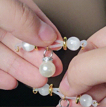 Inspired by purity and elegance, these barbell-style adjustable nipple clamps combine Eastern warmth with Western refinement, embodying an understated yet luxurious aesthetic. The white jade beads, as translucent as morning dew, exude a natural, soft luster. Paired with elegant pearl pendants, they symbolize purity and eternity, creating a light yet refined elegance. While the overall design is simple and elegant, the meticulous craftsmanship is evident in the details, and every line exudes elegance. Crafted from high-quality metal, the clamps are smooth and adjustable, ensuring a comfortable and secure fit. The lightweight and tactile design is not only a romantic addition to an intimate setting, but also an artistic accessory that embodies individuality and taste. It transforms every wear into an elegant ritual, reflecting the wearer's unique temperament and refined taste.