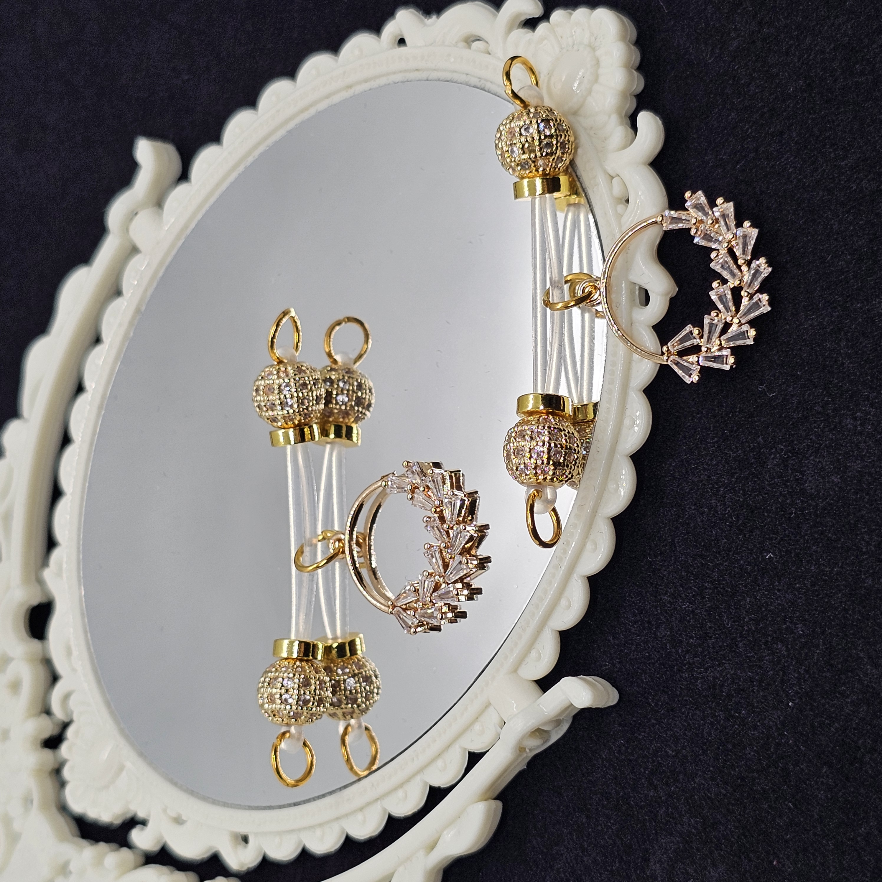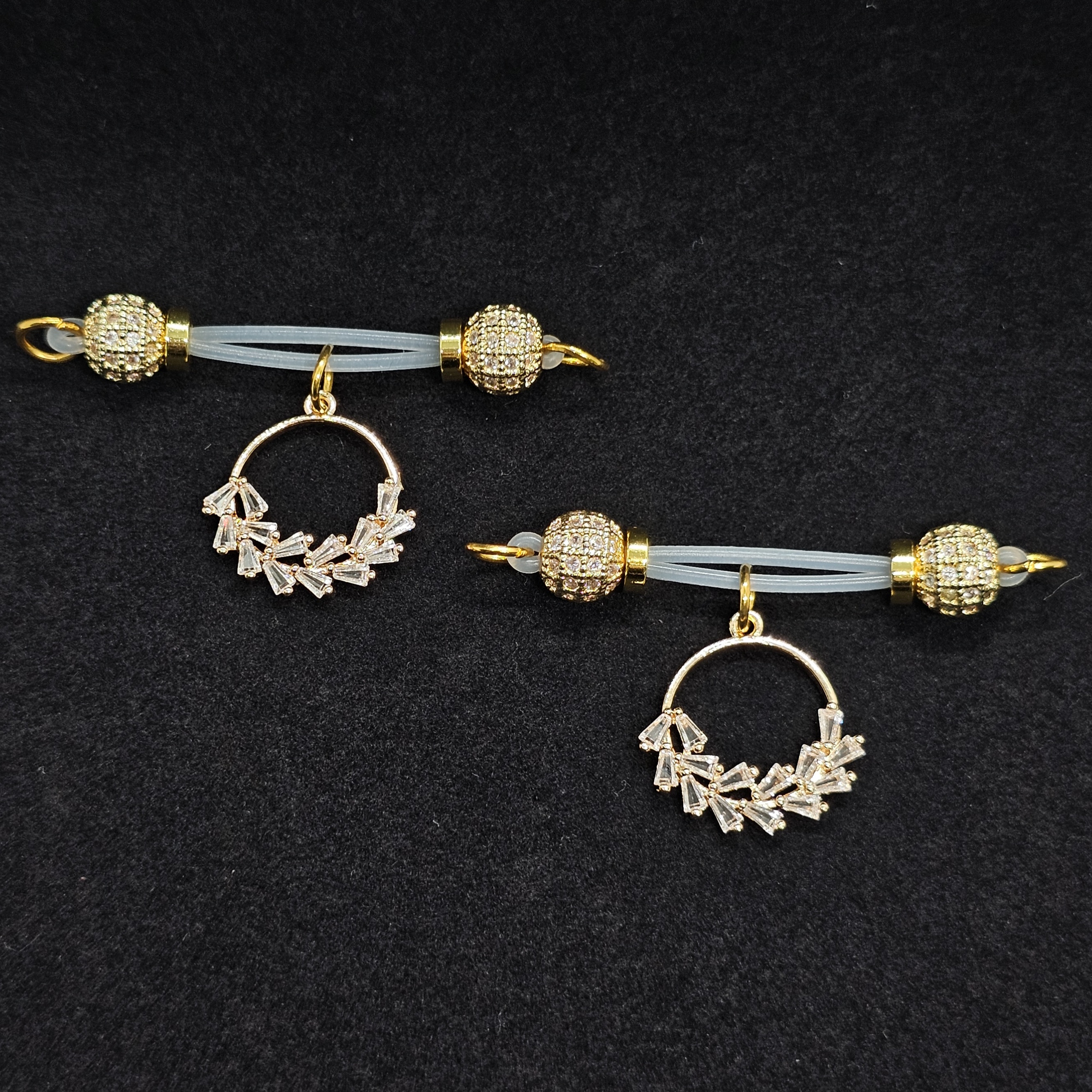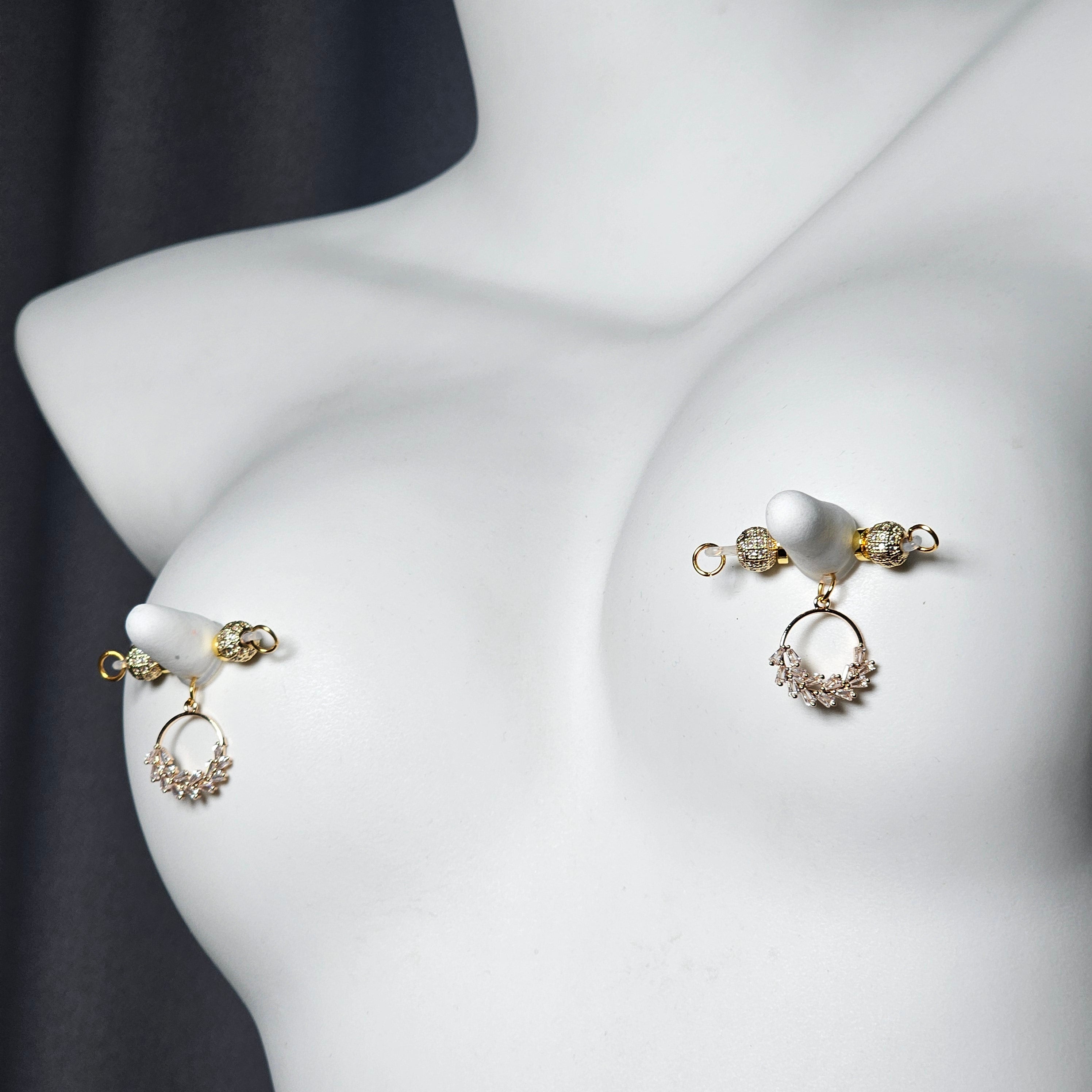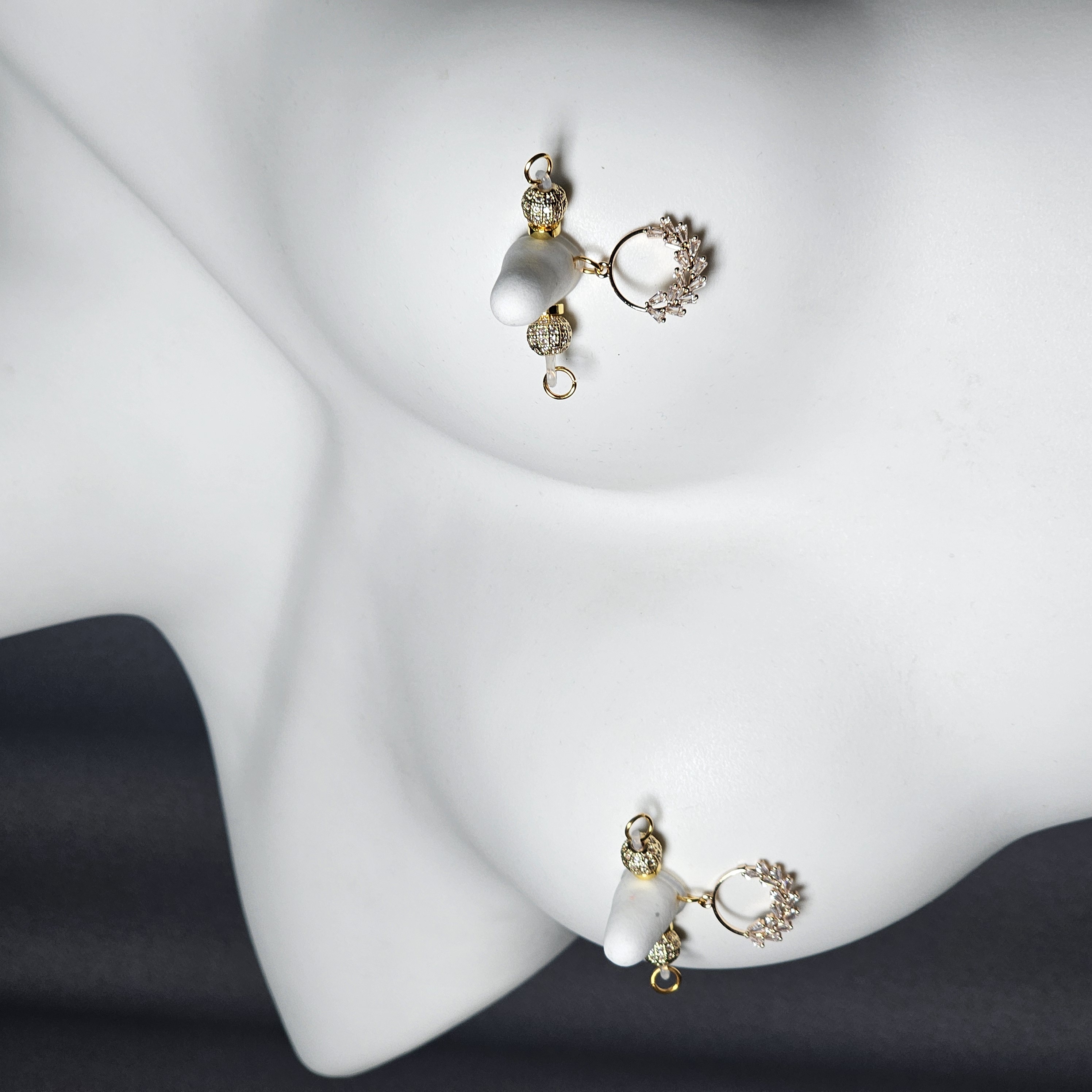 This adjustable barbell-style nipple clip features a luxurious gold diamond-encrusted bead paired with a delicate rose gold wheat-ear ring pendant set with sparkling crystals. The warm tones of gold and rose gold blend harmoniously, creating an elegant and refined aesthetic. Meticulously crafted with a polished finish, the metal surface is smooth and comfortable against the skin. The adjustable tension design ensures a personalized fit, suitable for both beginners and experienced users. Whether worn alone to highlight sophistication or paired with lingerie for a seductive allure, this piece radiates confidence, elegance, and modern sensuality. A perfect choice for those who appreciate exquisite, high-end design.