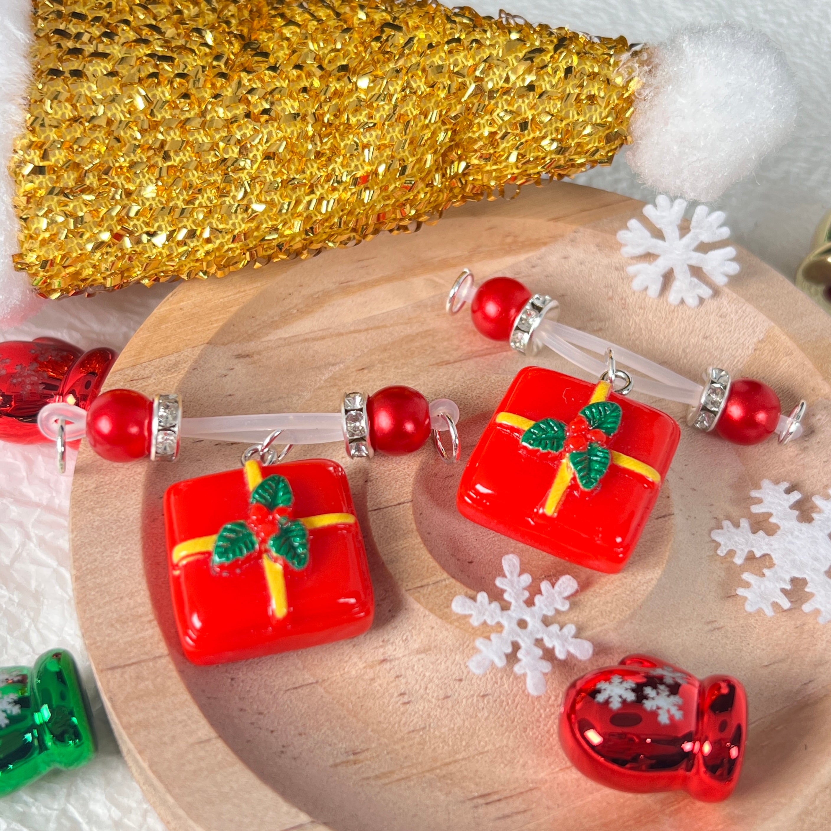 Barbell-style red bead paired with a red square gift box pendant, delicately crafted and compact. Adjustable nipple clip ensures comfortable, secure wear. Adds festive charm and playful elegance to holiday styling, making it a unique accessory for Christmas or special occasions.