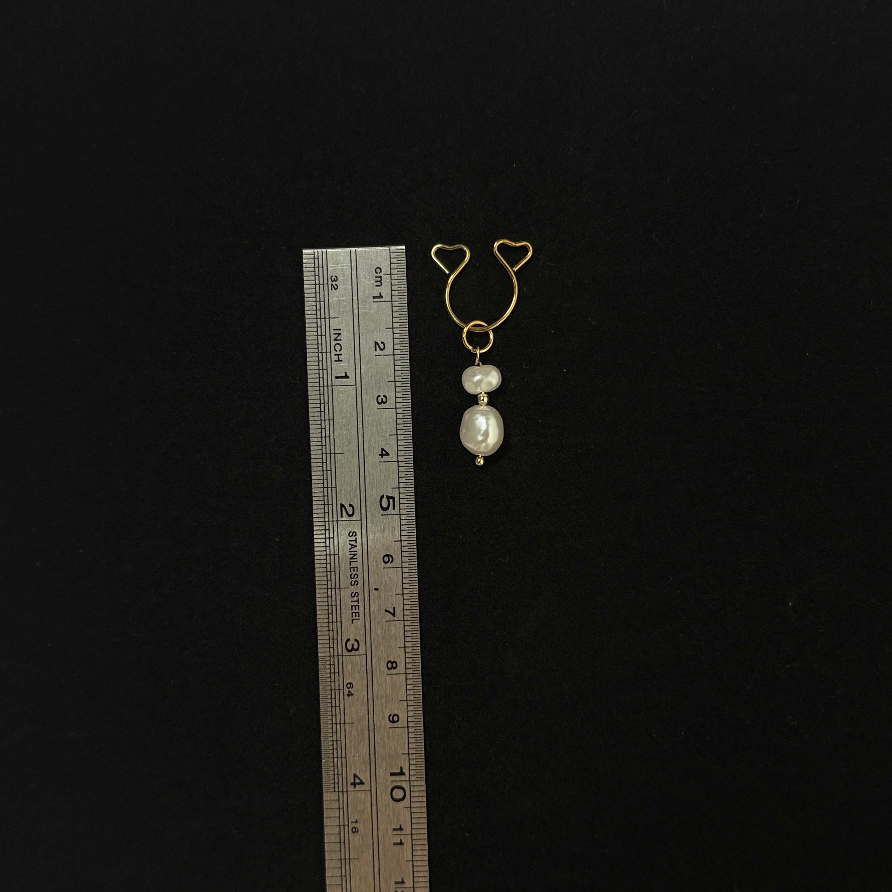 The horseshoe ring's sleek, rounded lines symbolize luck and protection. Embellished with natural freshwater pearls, it exudes a soft, refined luster, exuding a discreet yet sophisticated elegance. The adjustable design accommodates diverse needs, balancing comfort and aesthetics for a personal touch without sacrificing elegance and sophistication. Whether a subtle addition to an intimate setting or a special gift, these nipple clamps offer a sense of surprise and ritual. The juxtaposition of pearls and metal creates a harmonious aesthetic of strength and softness, imbuing the wearer with a unique sense of confidence and allure.