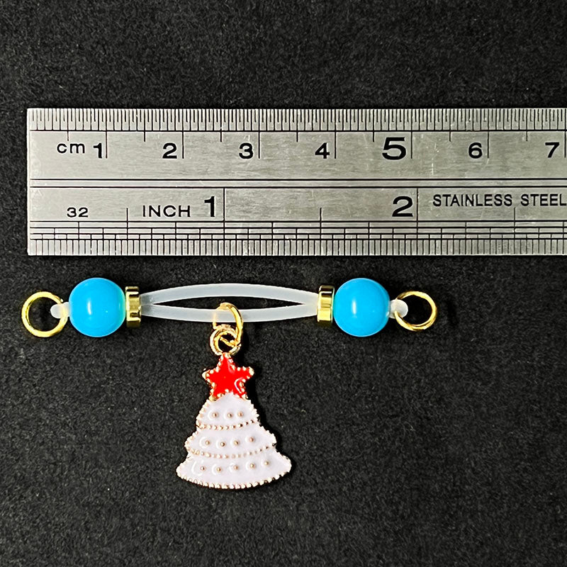 This adjustable nipple clamp features refreshing blue beads paired with a white Christmas tree pendant and adorned with a red star at the top, cleverly blending the playful Christmas spirit with the exquisite feel of jewelry. The semi-sheer elastic band design balances modern style with festive fun, while the smooth texture and metallic details create a unique spark, making it an eye-catching piece that combines artistry with a touch of sexiness.