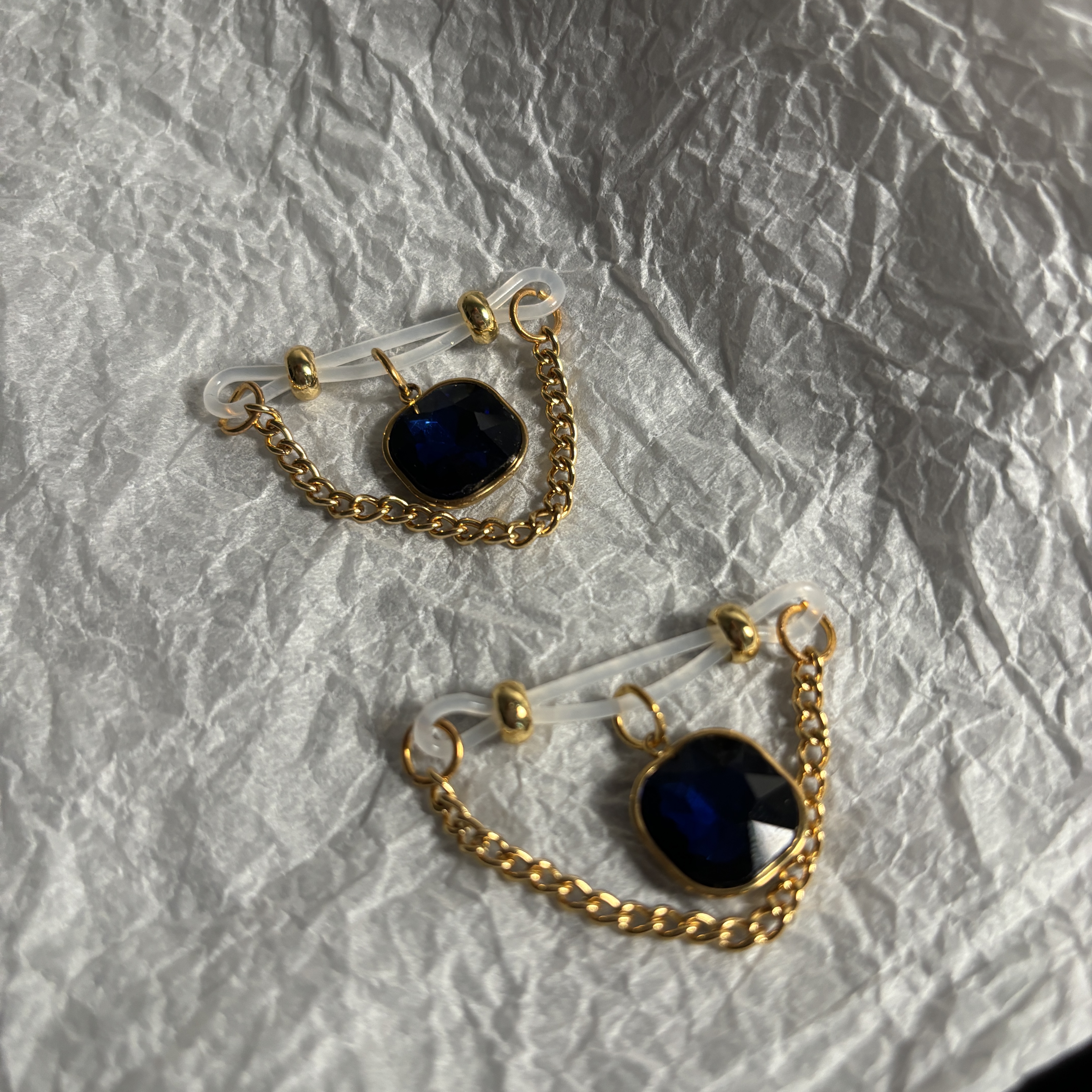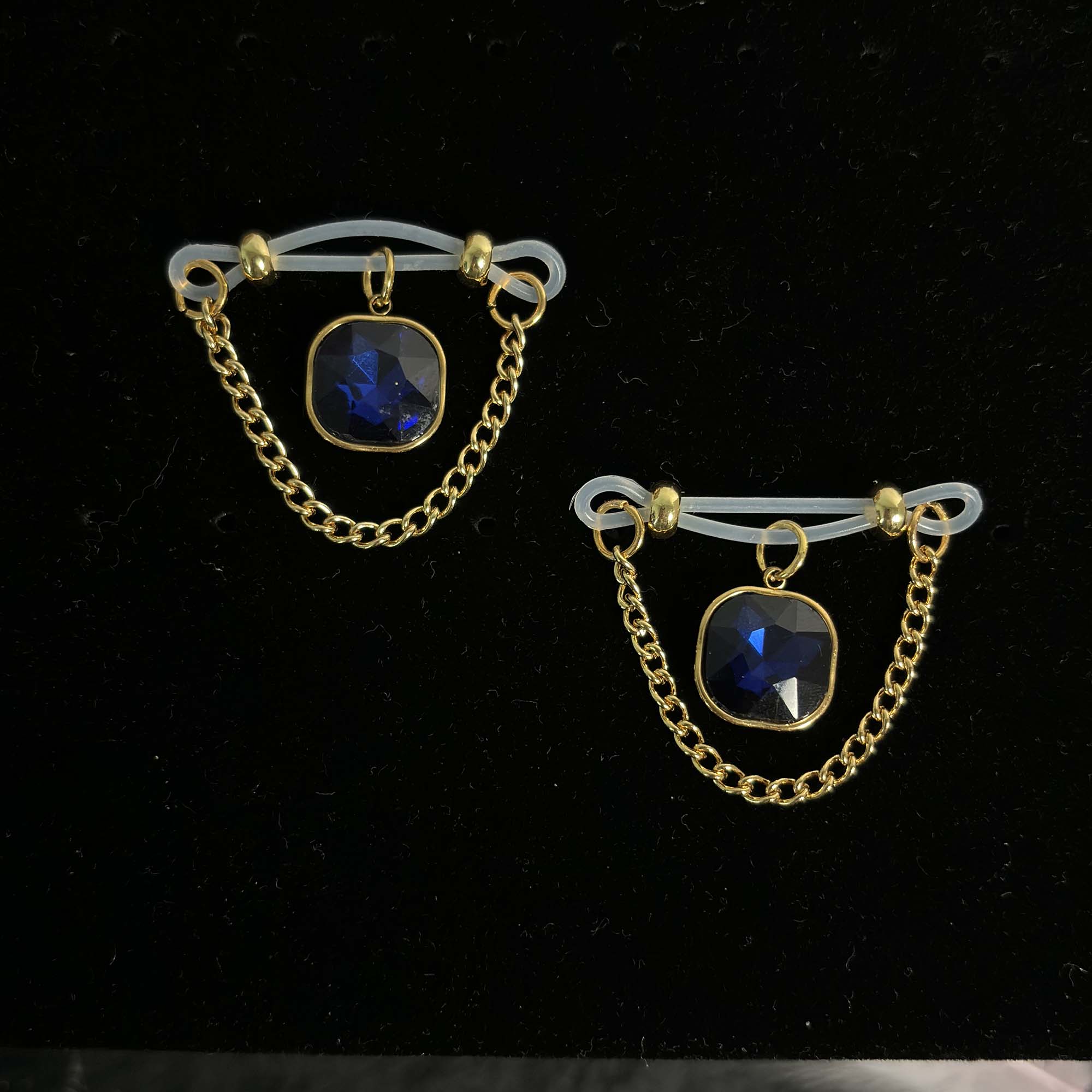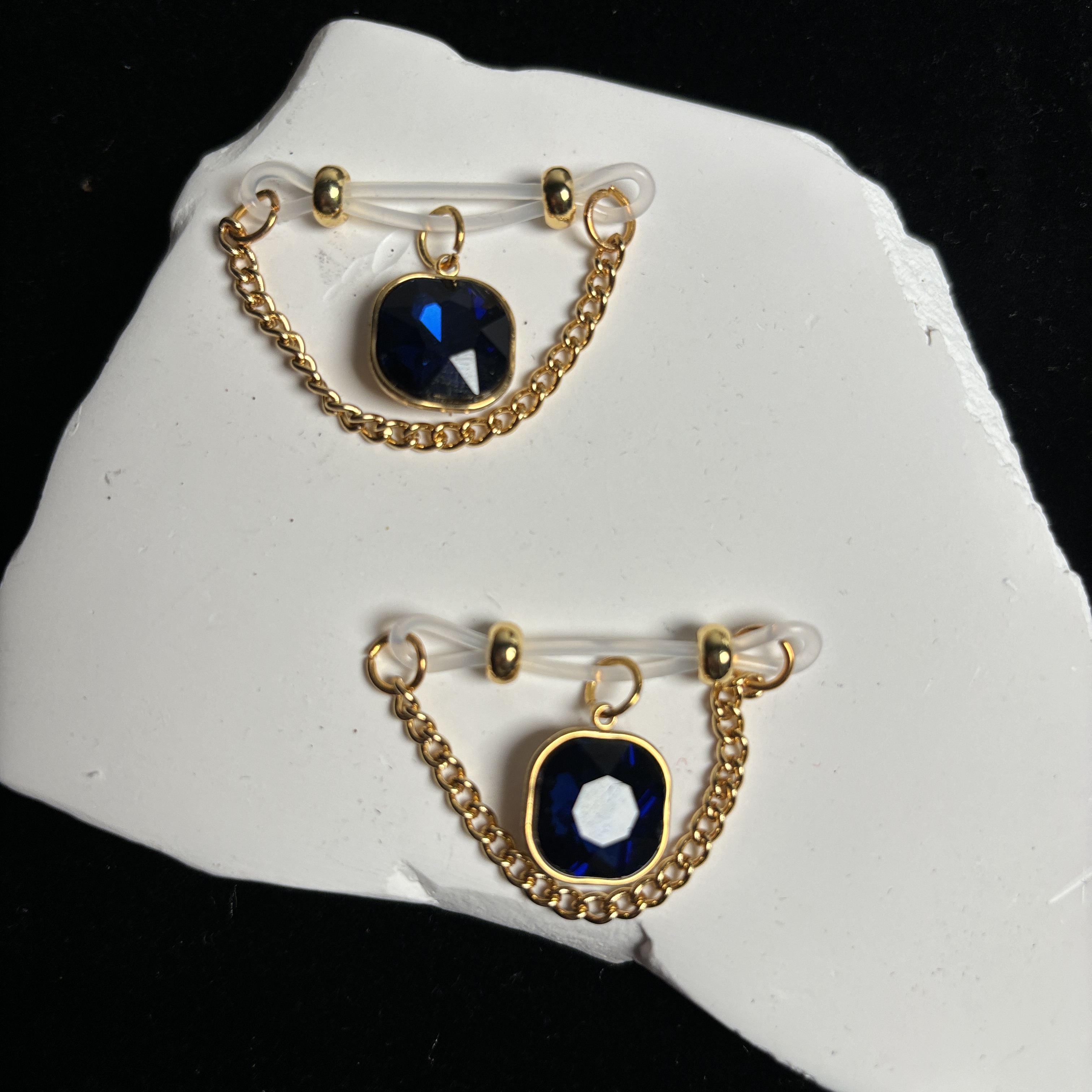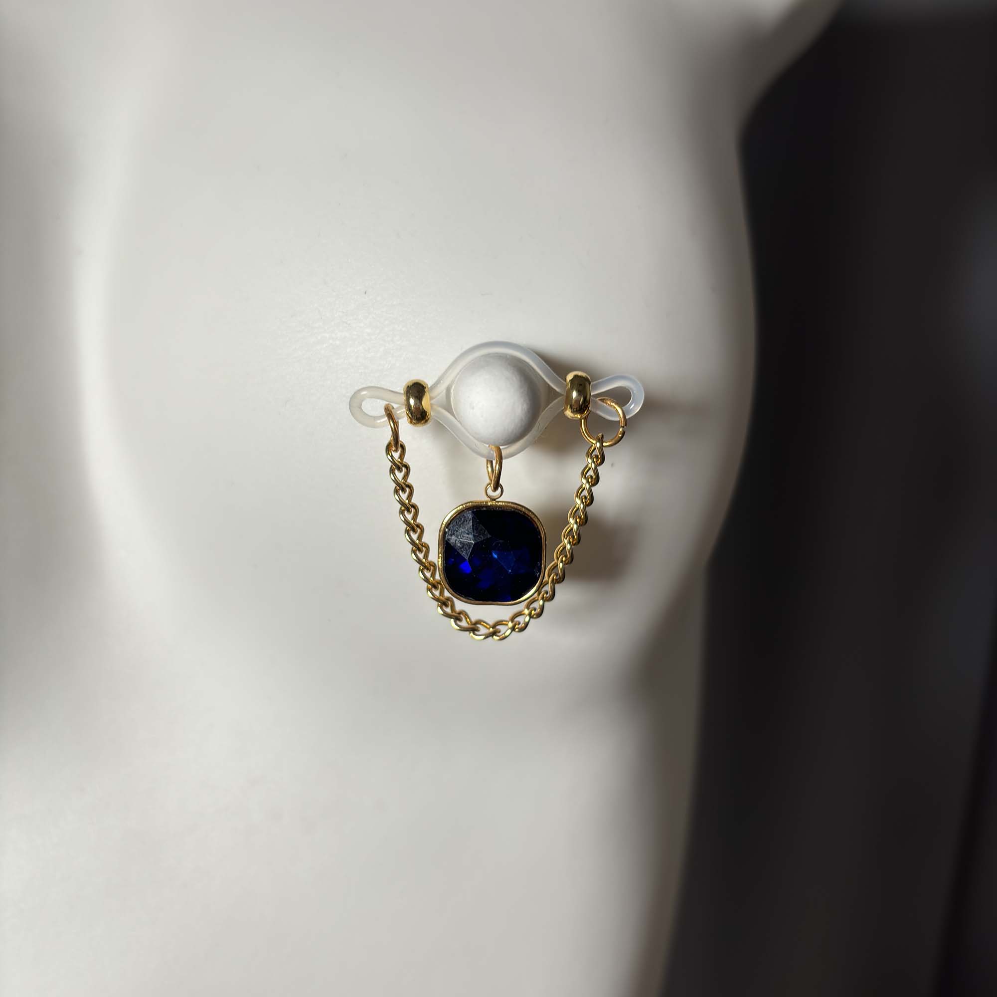 This royal blue square gemstone pendant nipple clip perfectly combines elegant color with modern design. The royal blue gemstone glows beautifully against the gold chain, creating a subtle luxurious effect. Its adjustable design ensures a comfortable fit for various body shapes. Lightweight and meticulously crafted, every edge is smooth and polished. Whether worn alone or layered with other accessories, it highlights individuality and sophistication. Ideal for personal use or as a gift, this nipple clip embodies elegance and refined taste, allowing the wearer to showcase unique charm through subtle details.