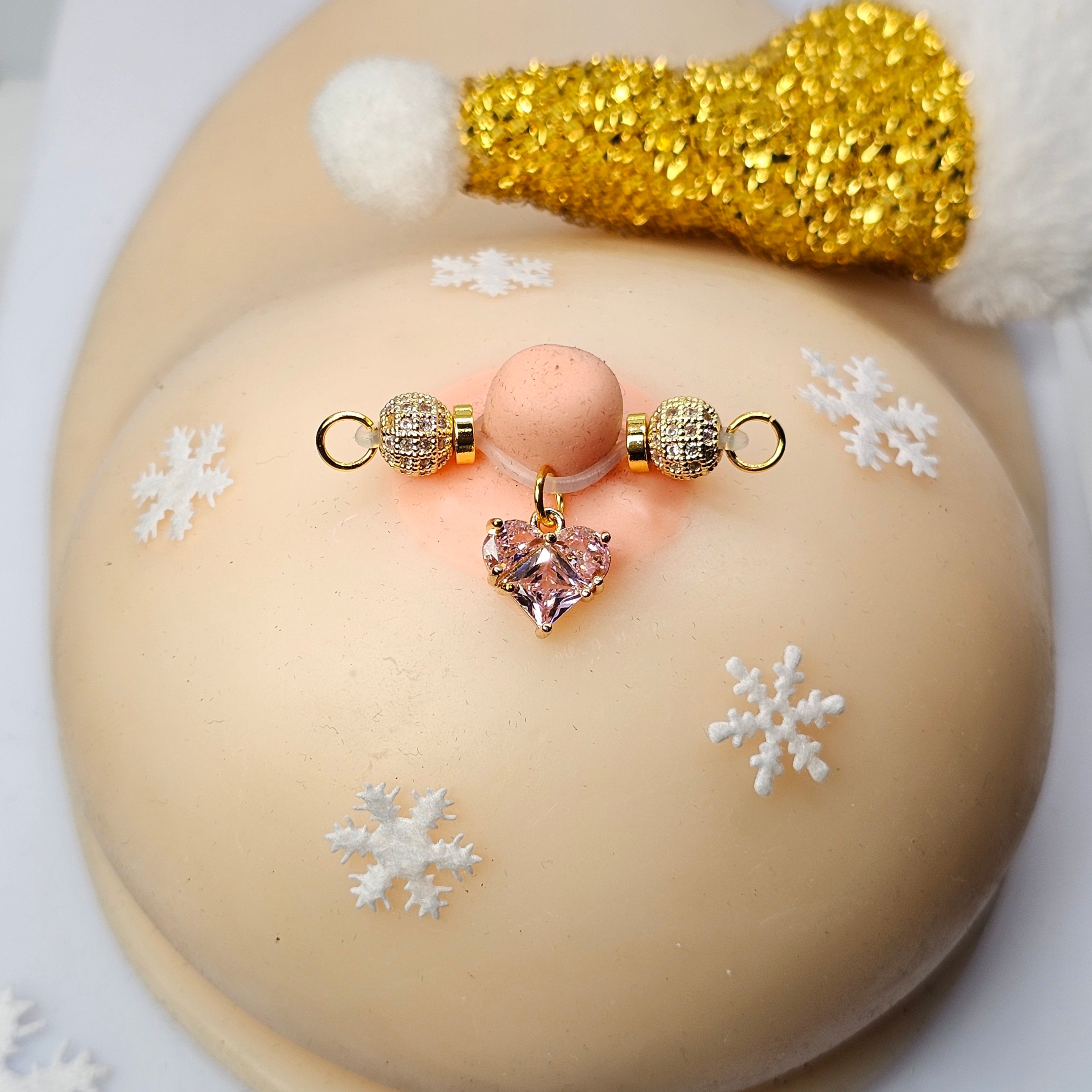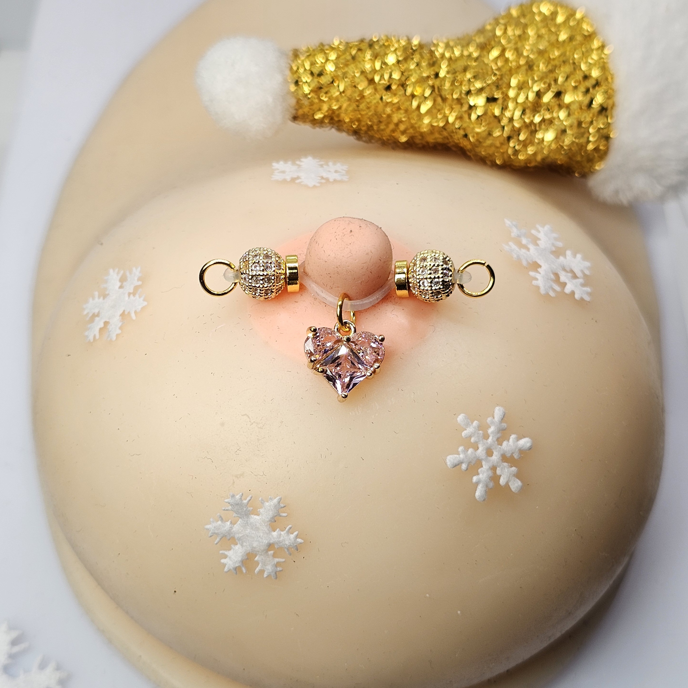 This elegant adjustable barbell nipple clamp features a luxurious combination of gold-plated, diamond-studded beads and a delicate pink heart-shaped gemstone pendant. Designed to blend sophistication with sensual allure, it offers a comfortable and secure fit with adjustable tension. The brilliant gold finish and sparkling details make it a standout accessory for both daily wear and intimate occasions. Perfect for pairing with lingerie or jewelry, it adds a refined, romantic touch to your personal style .