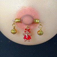 This barbell-style adjustable nipple clip features a shiny golden bell paired with a charming bow-shaped gingerbread pendant. The combination of festive warmth and refined elegance creates a playful yet sophisticated look. Lightweight, comfortable, and exquisitely detailed, it adds a subtle holiday accent to intimate styling.
