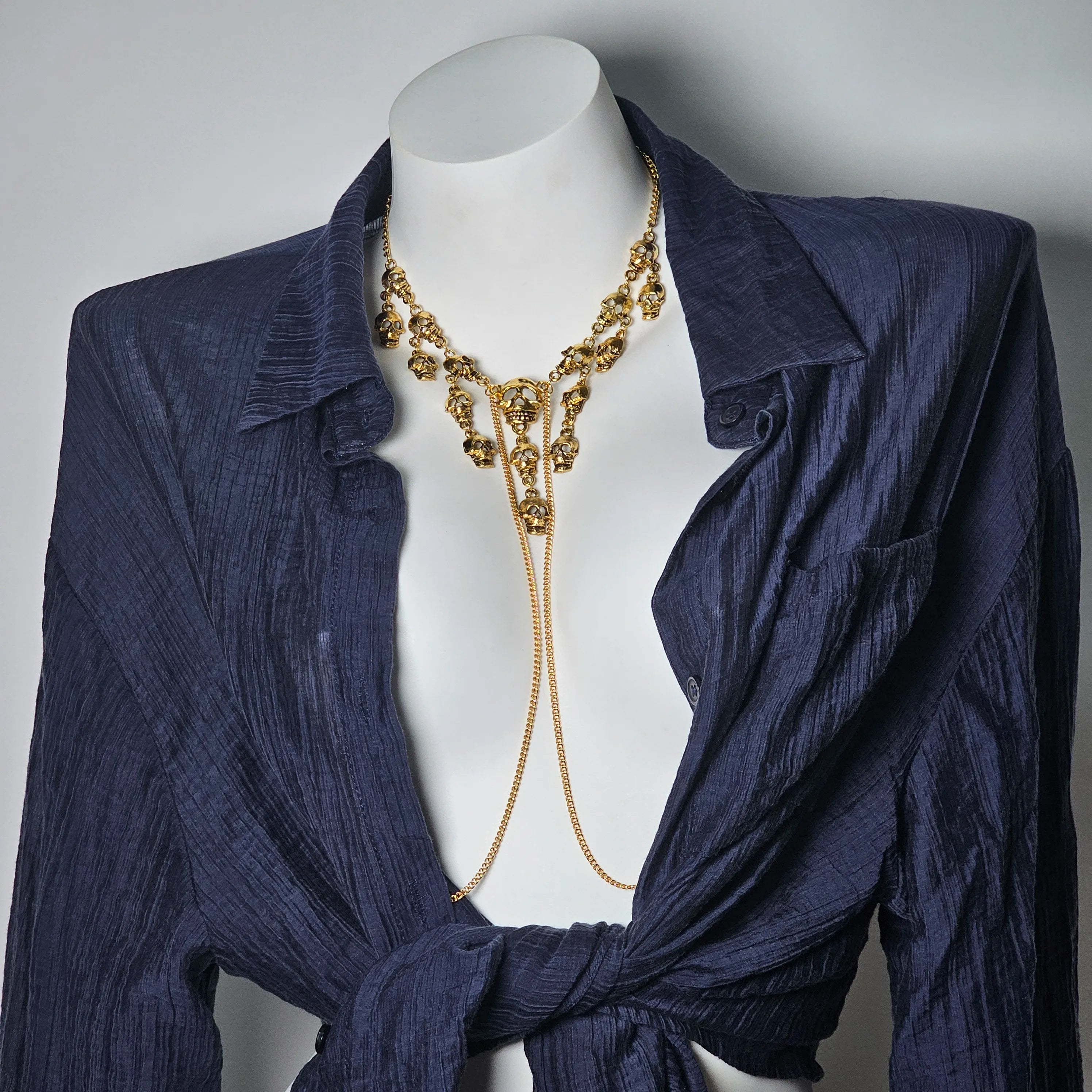The luxurious gold chain supports the exquisite gold skull pendant, which is dazzling, cold and noble, showing bold personality and extraordinary taste creates a festive atmosphere.