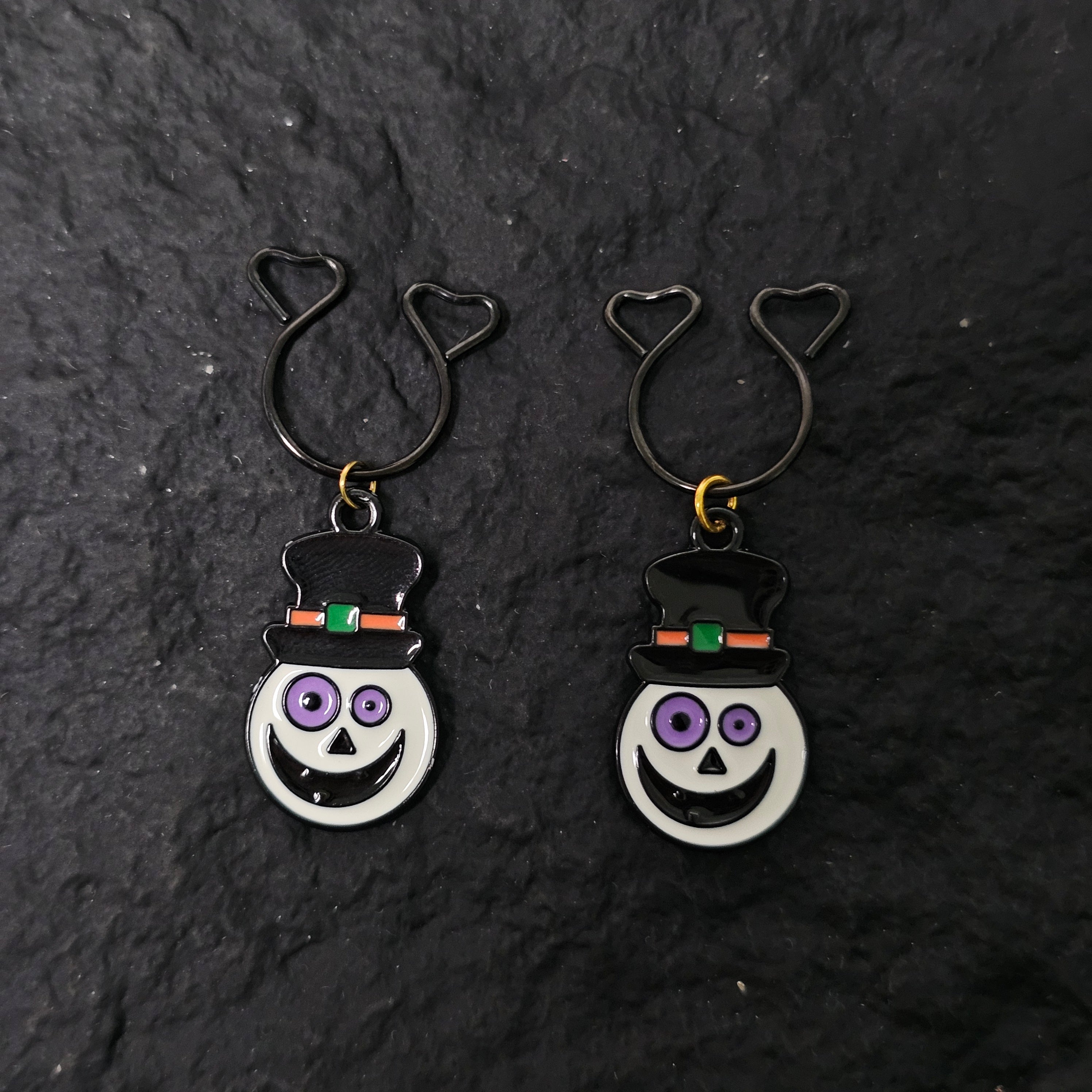 This nipple clamp features a cool black horseshoe ring and a matching evil snowman pendant, exuding a dark yet playful charm. Made from high-quality alloy, it's durable and comfortable. The adjustable clamp allows for easy control of tightness, from gentle to intense. The cool and mysterious black horseshoe ring complements the playful and contrasting evil snowman pendant, adding drama and personal style to the overall look. Whether for a private exploration or as a special gift, it's a fresh, exciting, and conversation-provoking accessory. More than just a piece of jewelry, it's a statement and a playful expression.