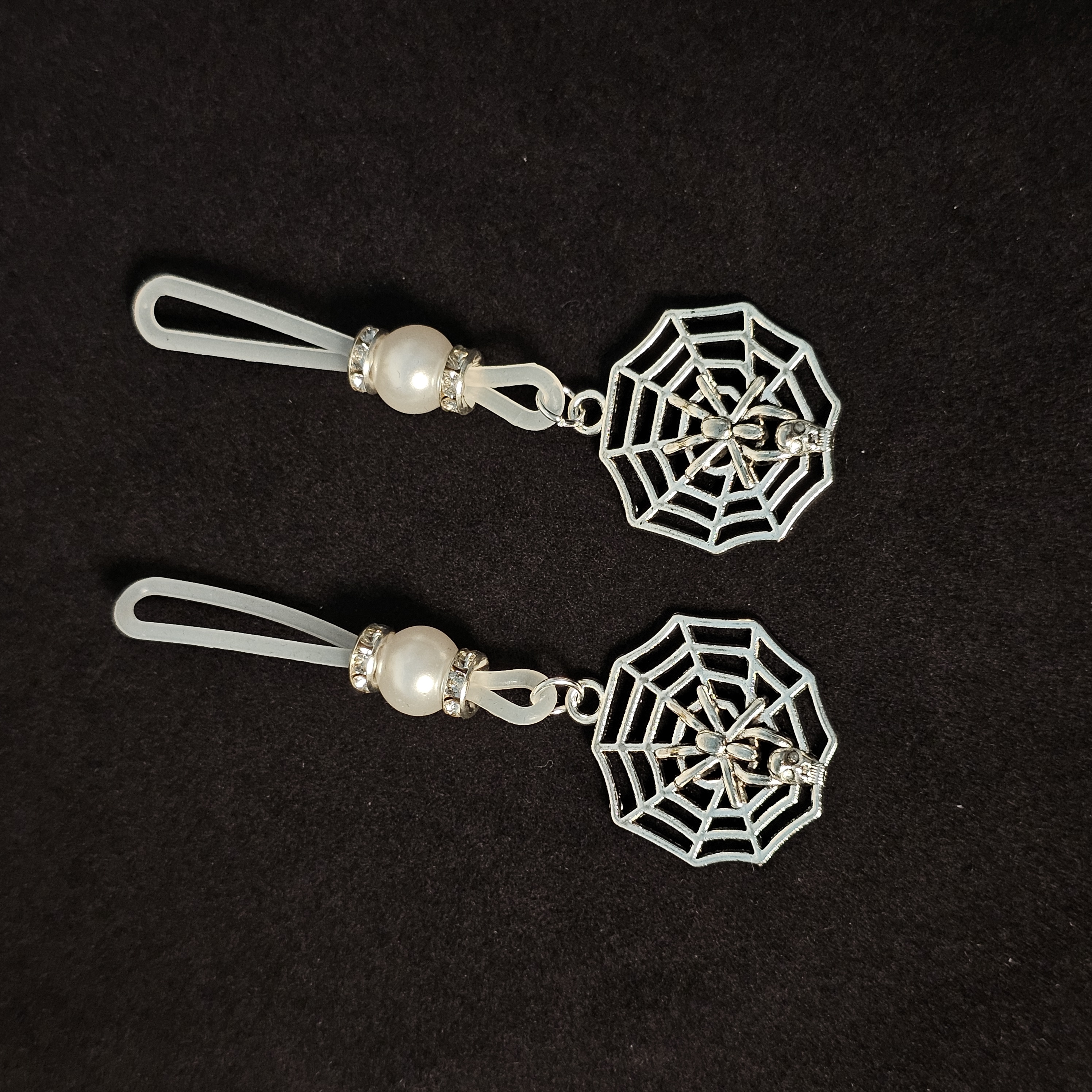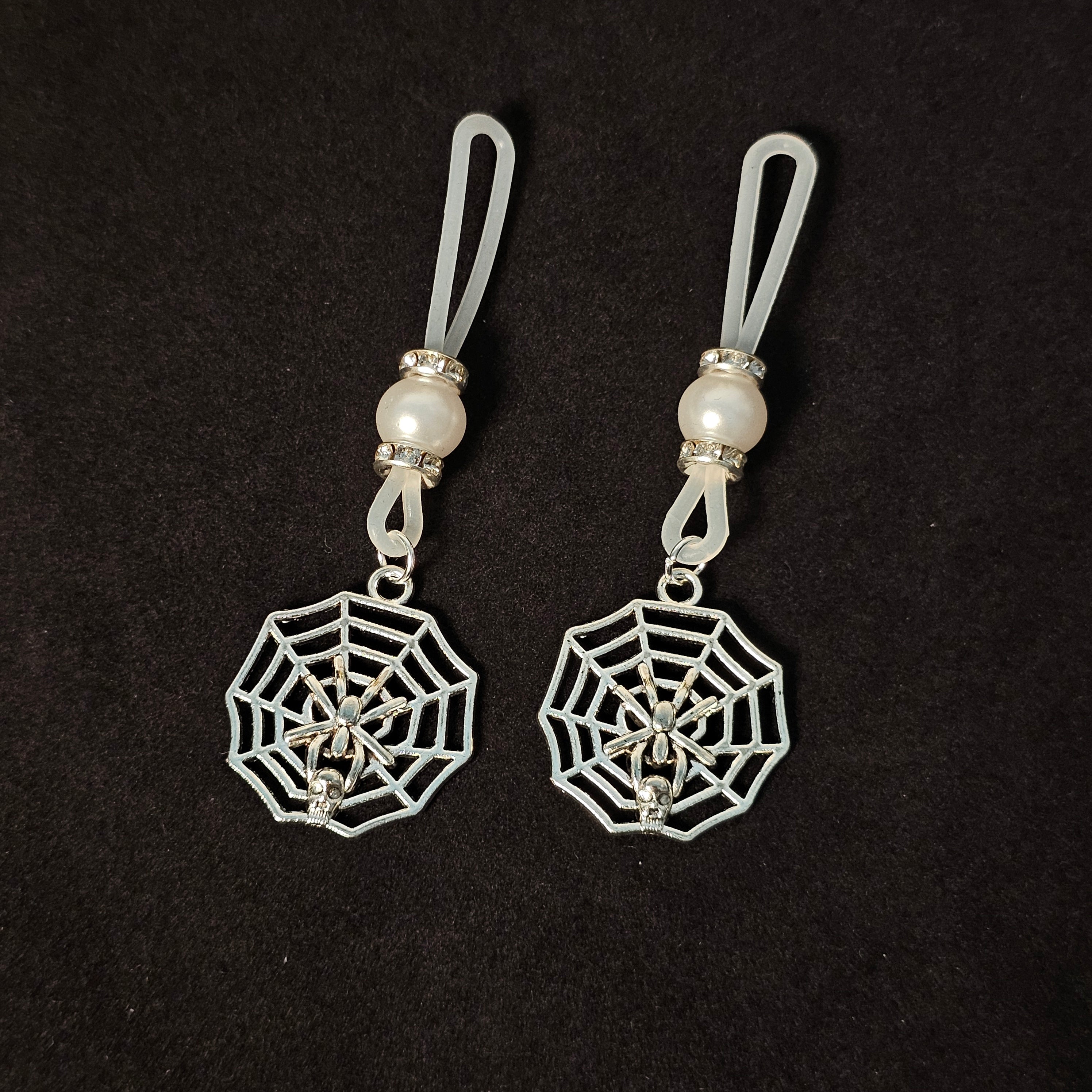 This unique nipple clamp is full of personality and fun, perfect for Halloween, parties, or romantic occasions. The adjustable design allows for precise adjustment of the clamping force to suit different sizes, ensuring a comfortable and secure fit. The pendant features a delicate spiderweb shape with a shimmering silver luster, adding a touch of mystery and festive charm to the overall look. Made of high-quality, durable metal, the clamp boasts a smooth, scratch-resistant finish. Whether worn alone or paired with other accessories, it easily creates a personalized look and enhances the fun and allure of any party. The exquisite design and unique pendant will make you the center of attention in any occasion, showcasing your individual style and unique charm. It's an ideal choice for holiday parties, themed events, or romantic occasions.