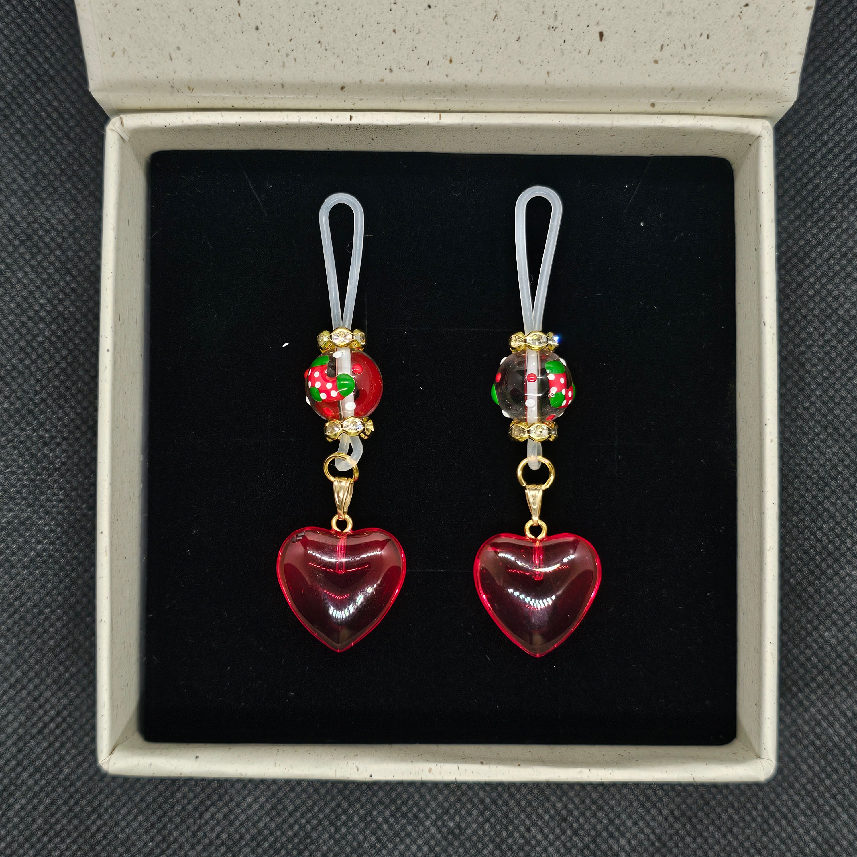 Red glass beads paired with a translucent 3D heart pendant radiate both warmth and passion. The adjustable design ensures a comfortable and personalized fit, while the refined metal contrasts beautifully with the luminous glass. Perfect for intimate moments or as a bold fashion accent, it exudes confidence, allure, and a distinctly elegant sensuality.