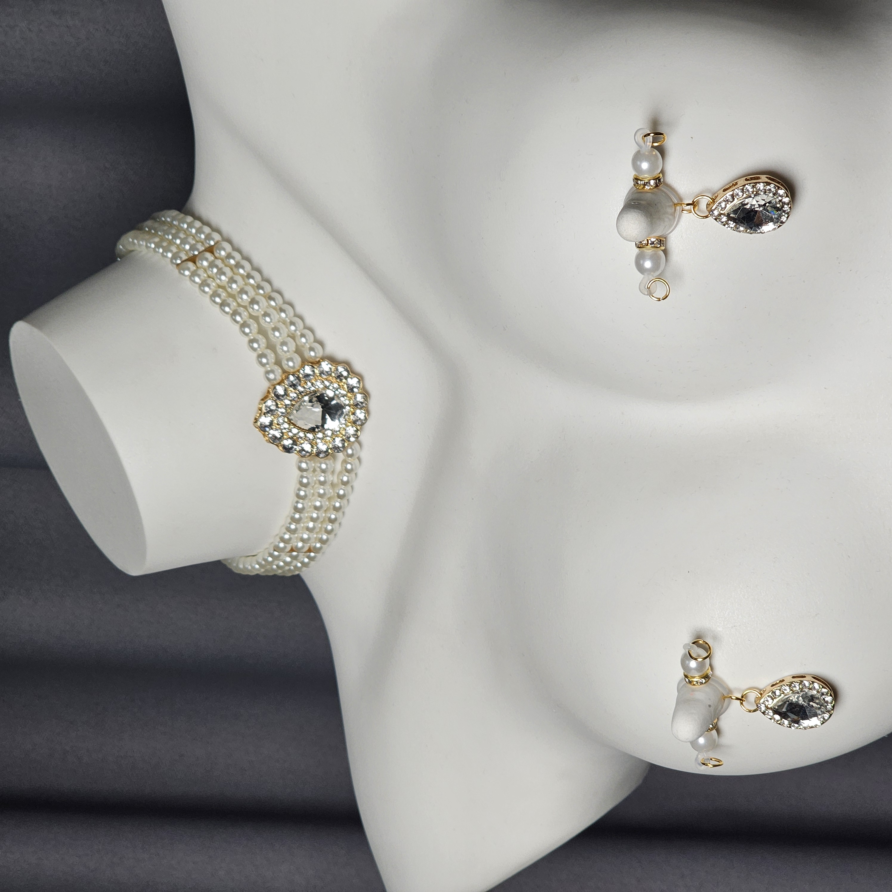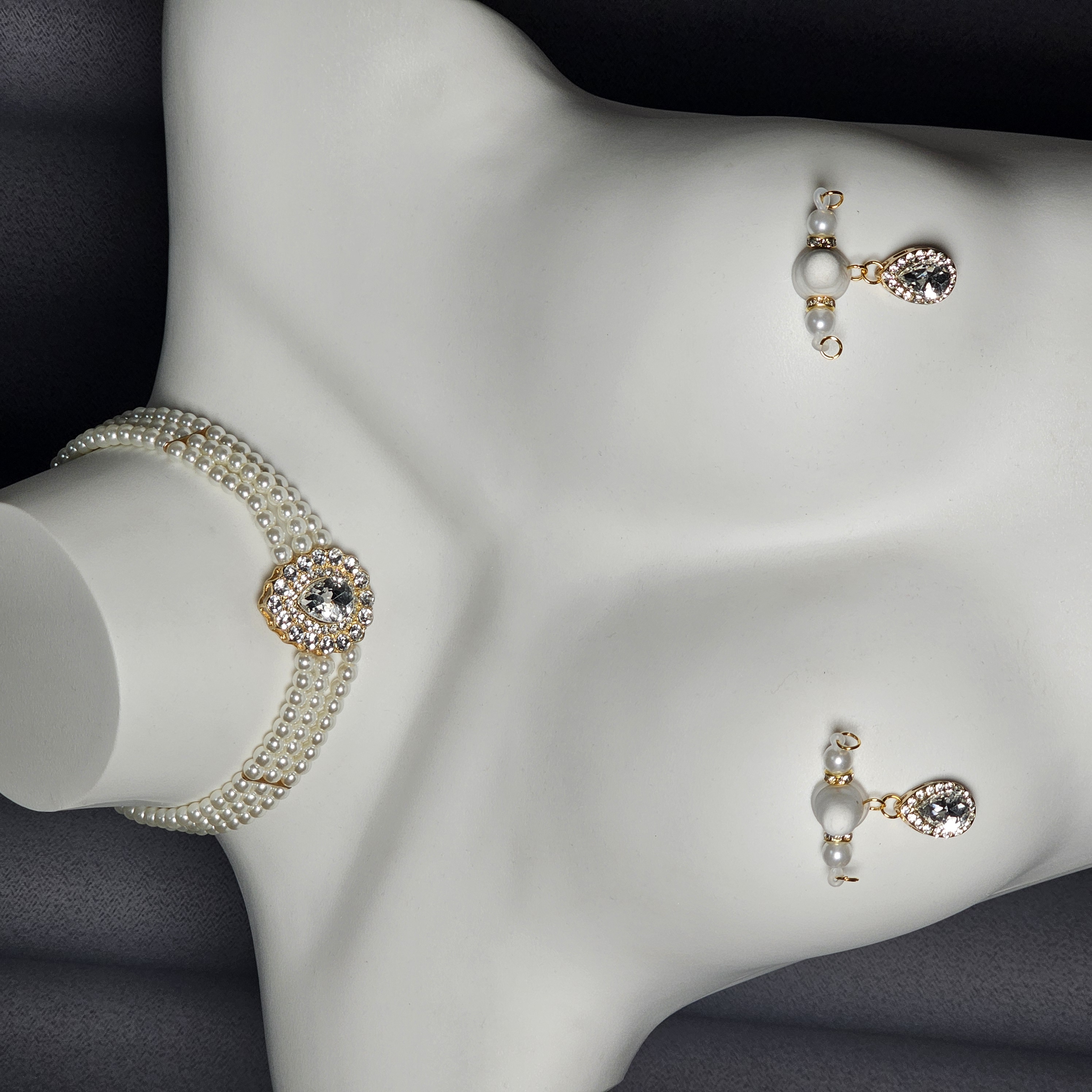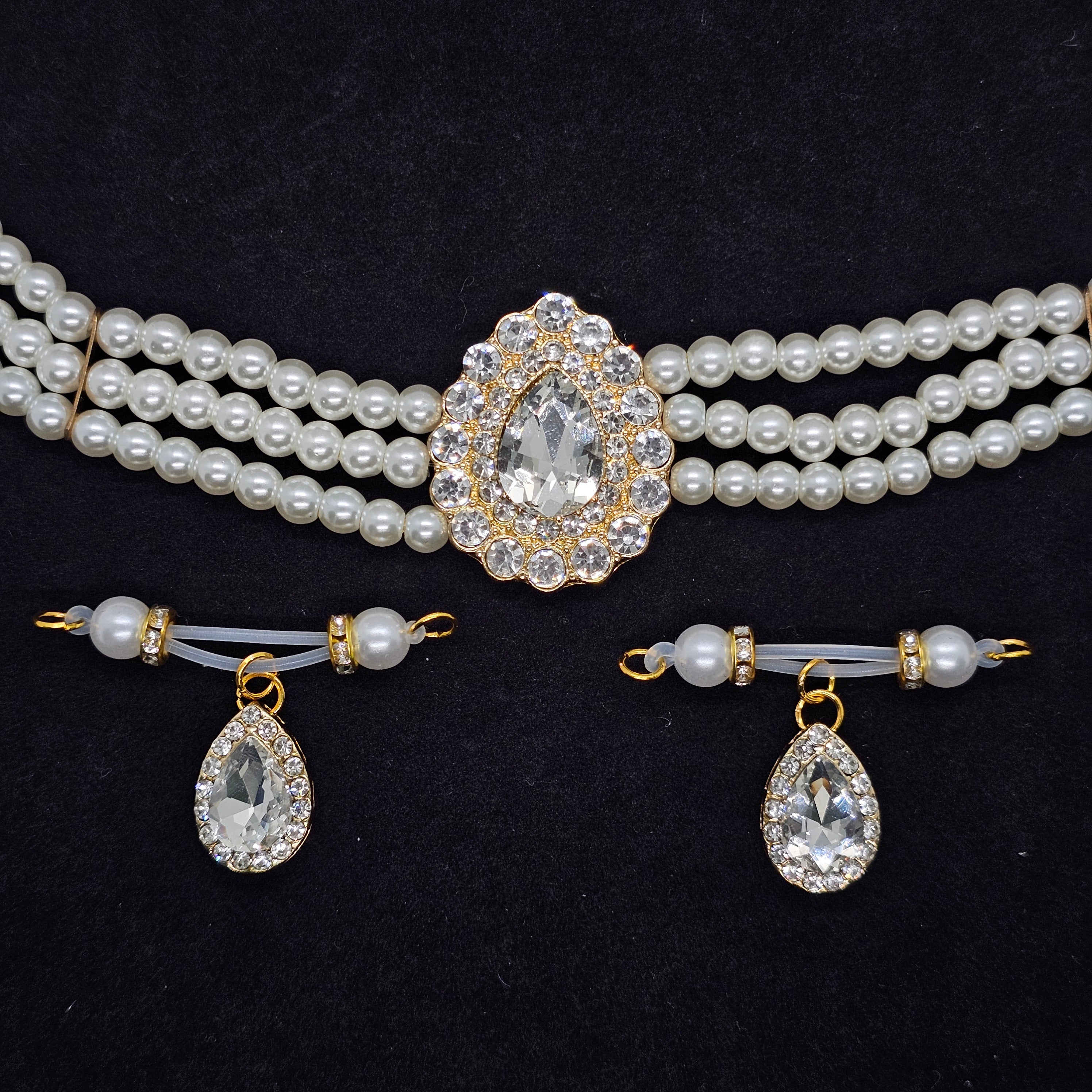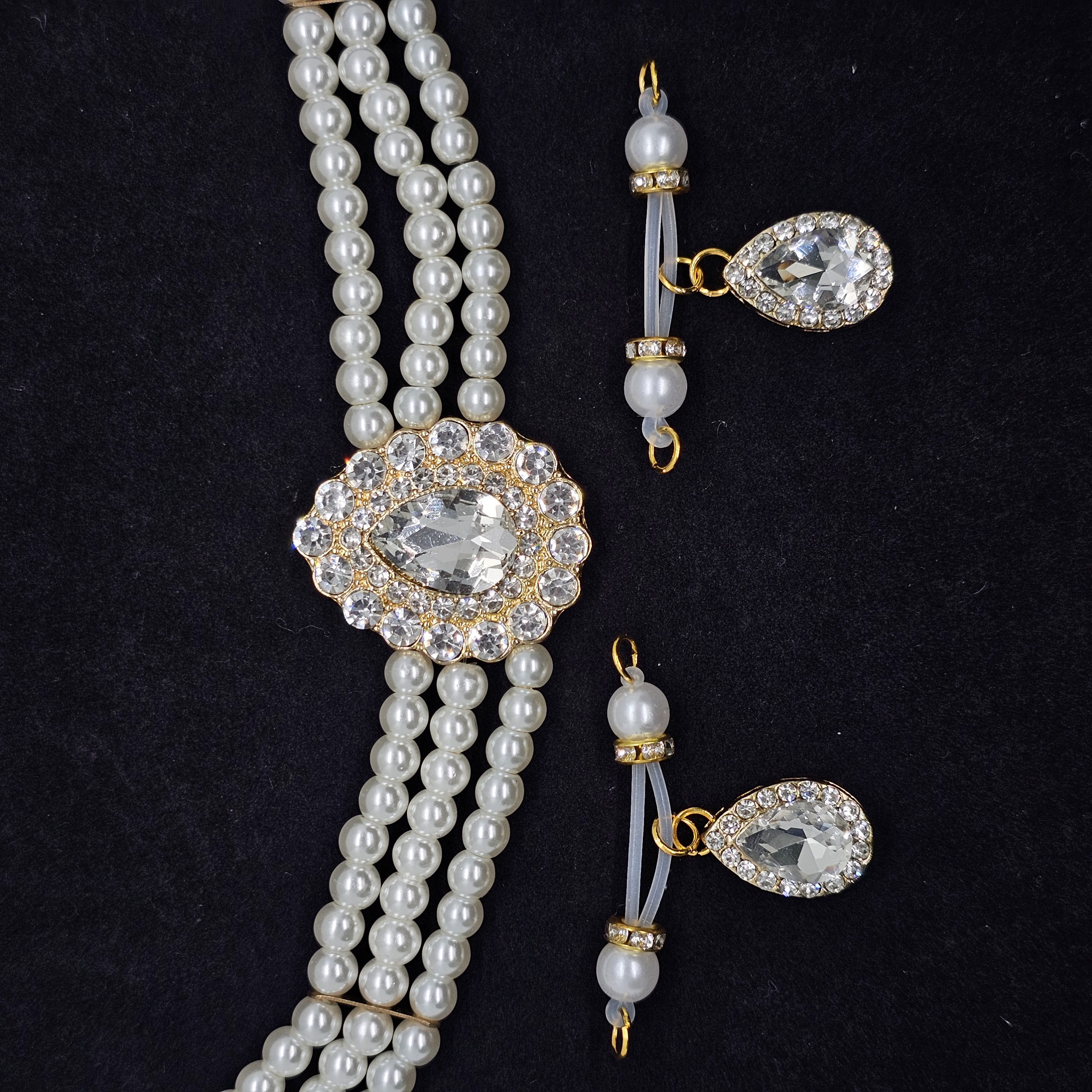 Lustrous pearls and teardrop-cut diamonds shimmer in harmony, enhanced by delicate crystal detailing and an adjustable design, embodying refined elegance and the radiant confidence of modern femininity.