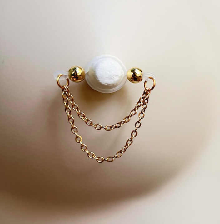 The imitation barbell shape and the chain pendant are naturally integrated, and the adjustable clip structure is adopted. It is stable and not easy to fall off, suitable for a variety of nipple sizes.