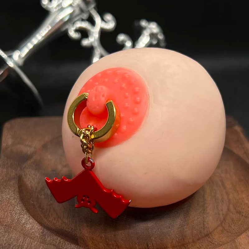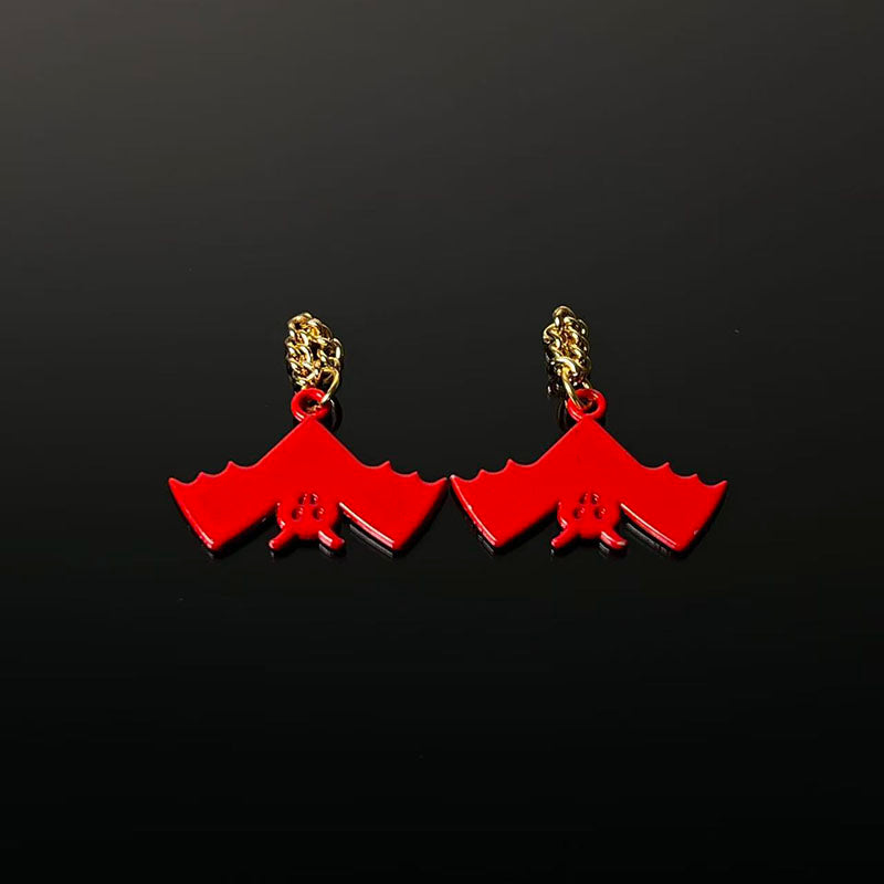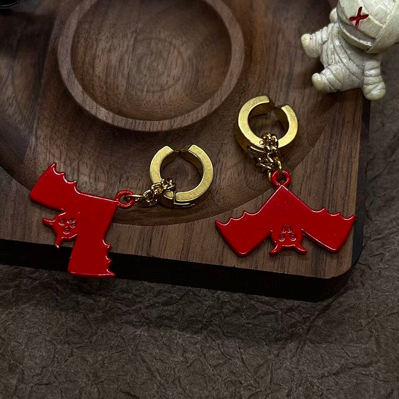 This adjustable men's nipple clip features a red axe and bat wing pendant, paired with a matching gold chain link design. It's both edgy and sophisticated, blending a sense of horror with bold fashion elements, offering comfort, durability, and a striking, dark masculine appeal.