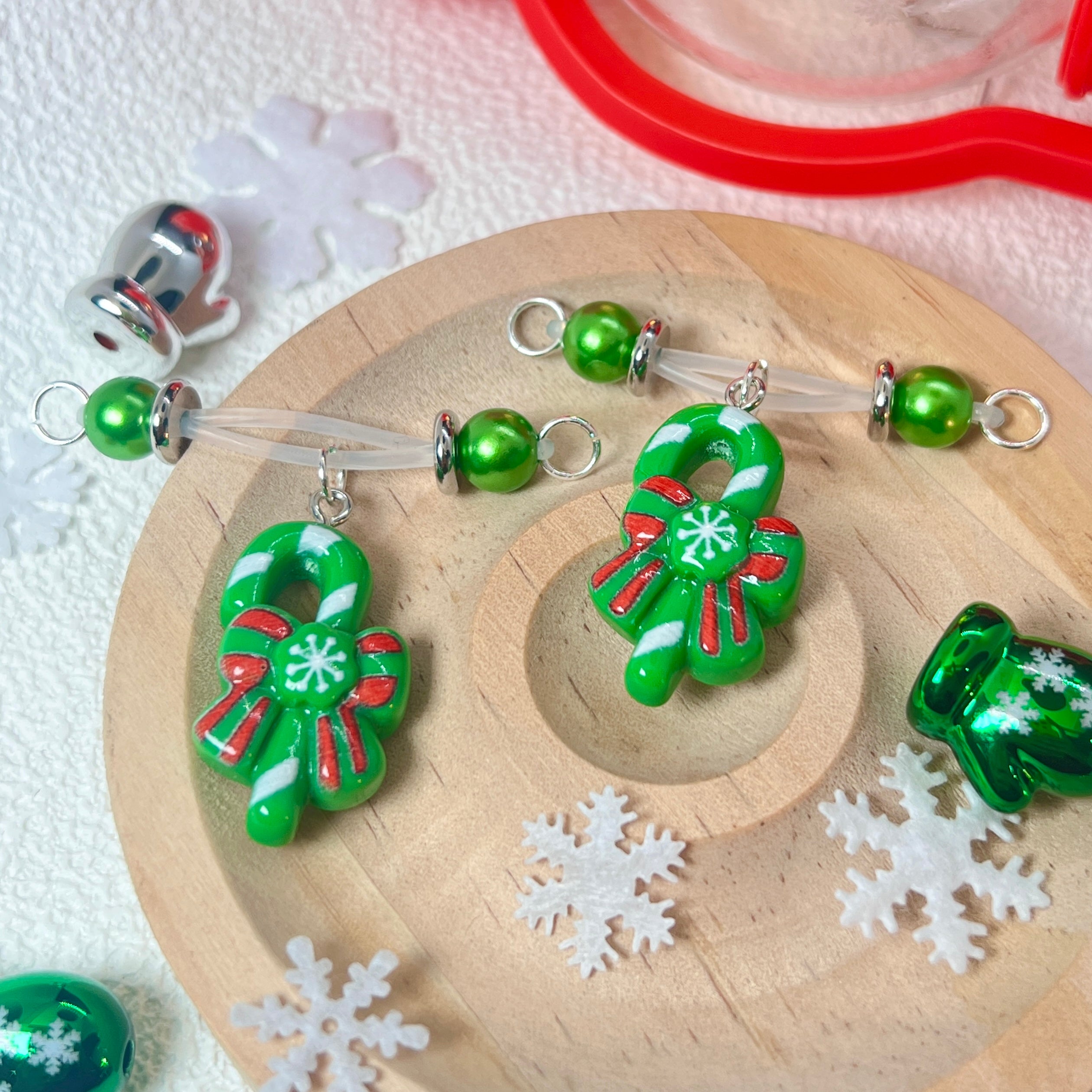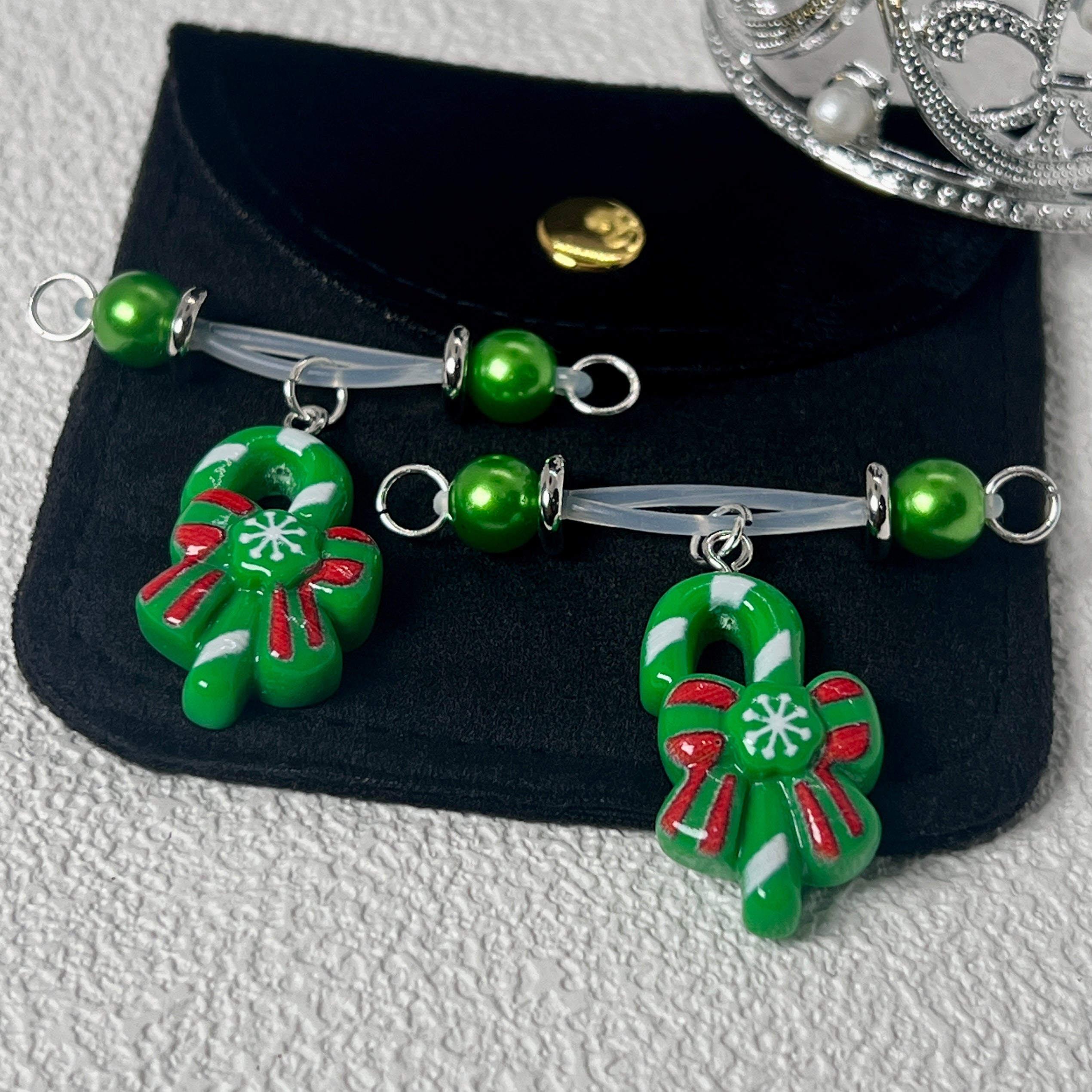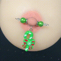 This adjustable barbell nipple clip features a vibrant green bead paired with a festive green candy cane charm. Playful yet elegant, its design adds subtle holiday charm. Lightweight and comfortable, the clip blends refined sophistication with cheerful seasonal detail, making it a stylish accent for intimate festive styling.