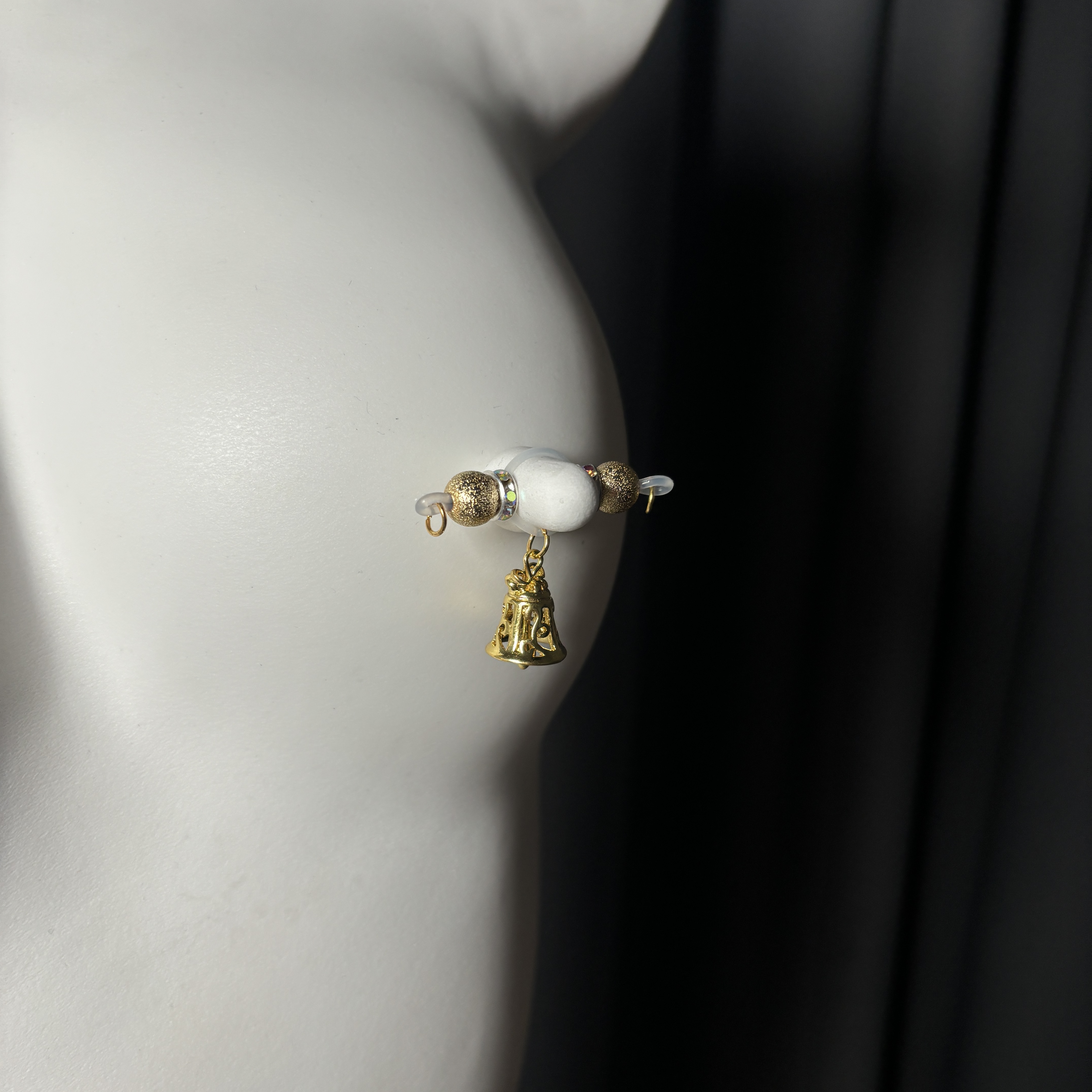 The gold textured bead pairs elegantly with the hollow bell pendant, creating a subtle and luxurious allure. The barbell-style adjustable nipple clamp ensures a secure, lightweight, and comfortable fit, blending function with beauty. The golden finish radiates elegance, while the bell’s delicate design adds a touch of sensuality and mystery. Exquisite craftsmanship and clean lines come together seamlessly, expressing a refined and sophisticated aesthetic.