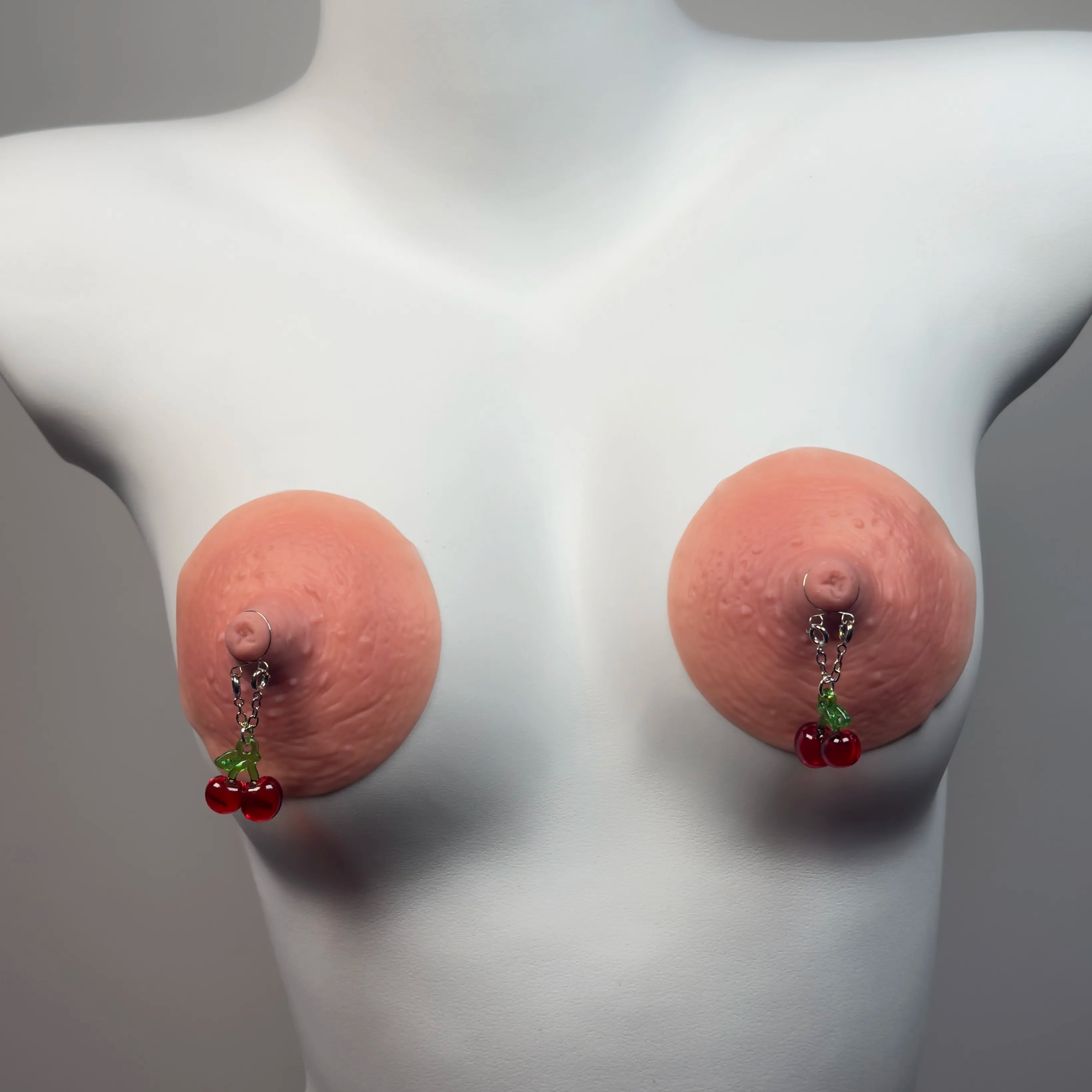 This adjustable horseshoe-shaped nipple clamp, paired with a cherry crystal pendant, blends playfulness and elegance. The delicate horseshoe design, accented with shimmering cherry crystals, exudes a sweet and sensual allure. The silver finish gleams with a sophisticated sheen, enhanced by crystal embellishments. The adjustable clip ensures a comfortable and secure fit, combining beauty with practicality. Perfect as a private accessory or a cherished self-admiration accessory, it exudes a unique and sophisticated allure.
