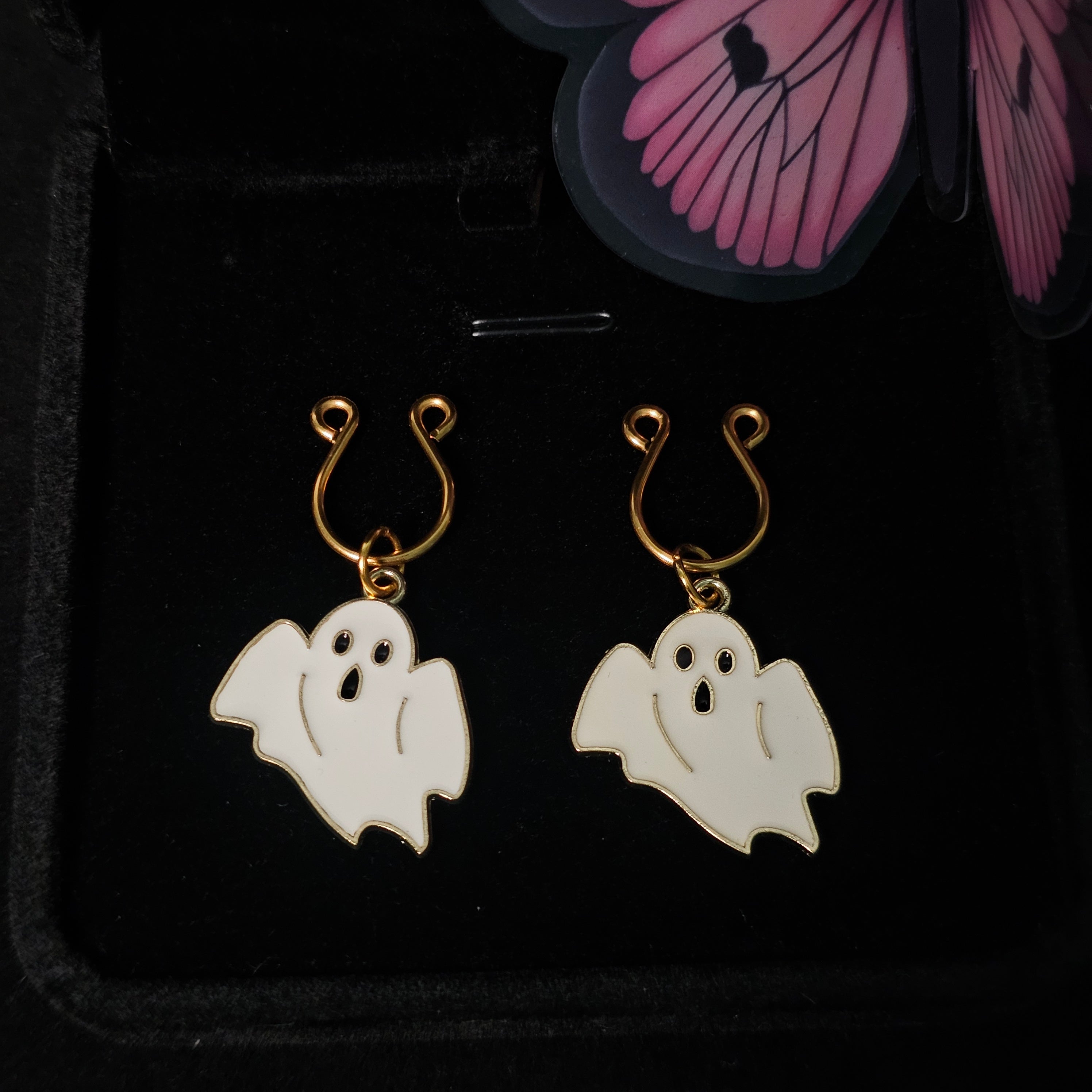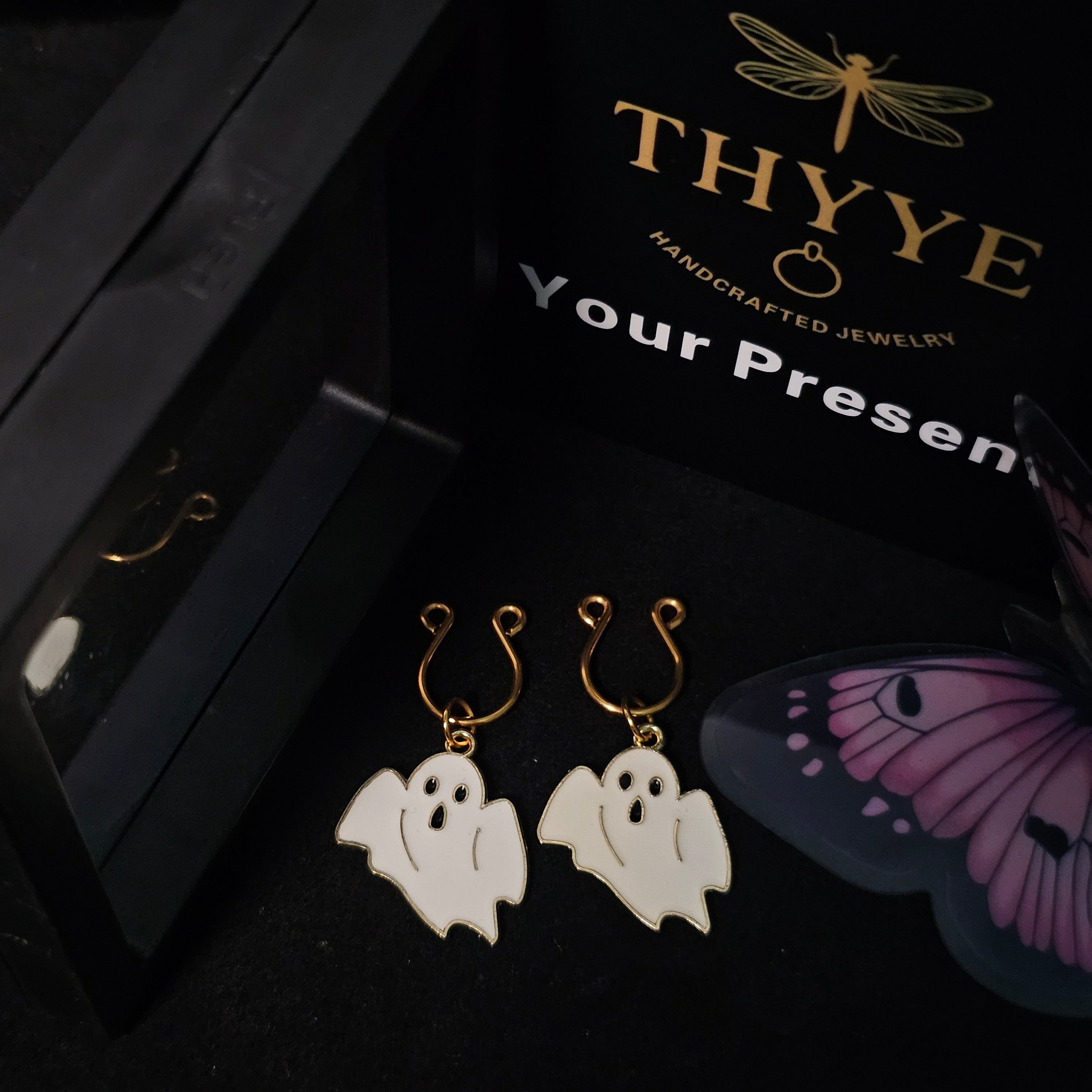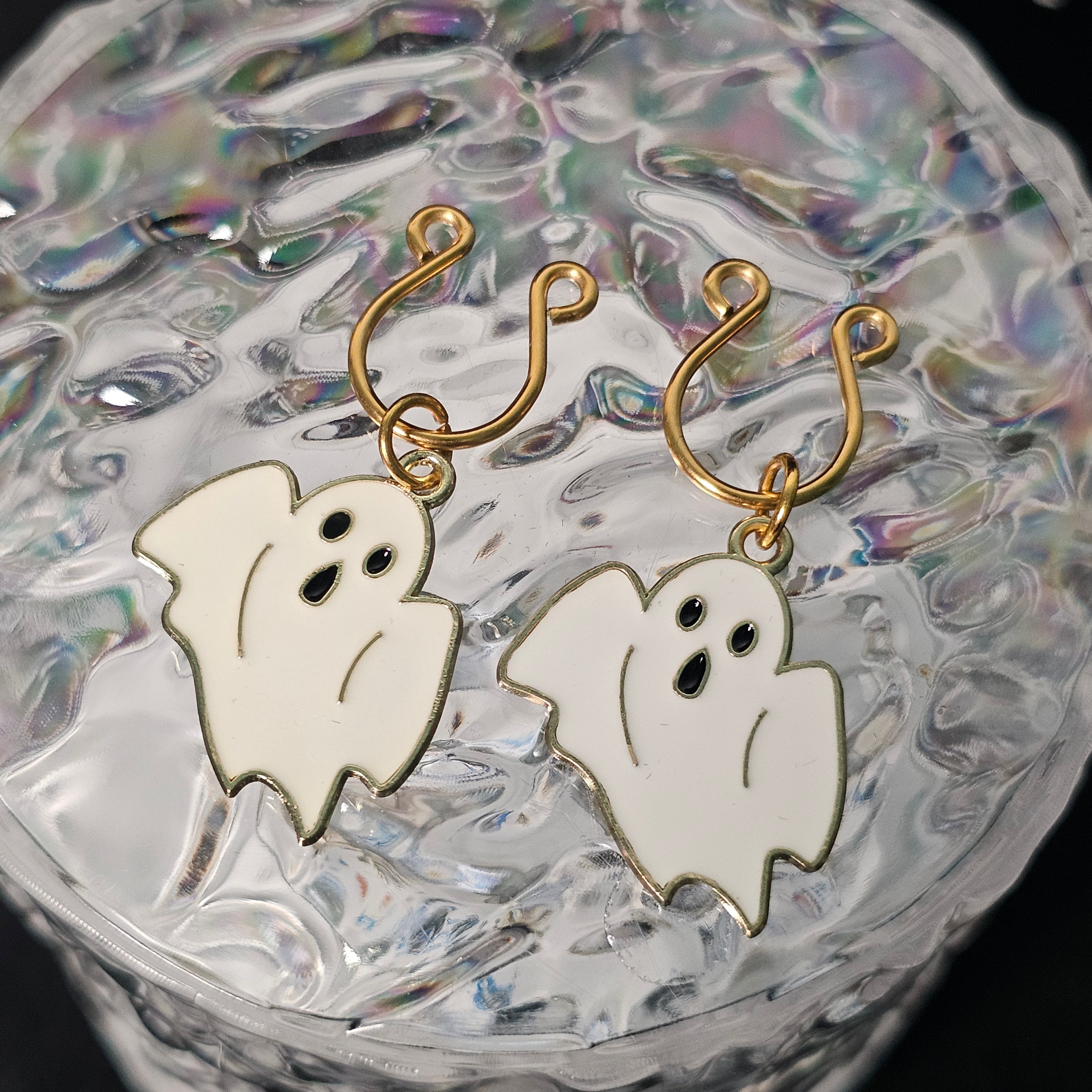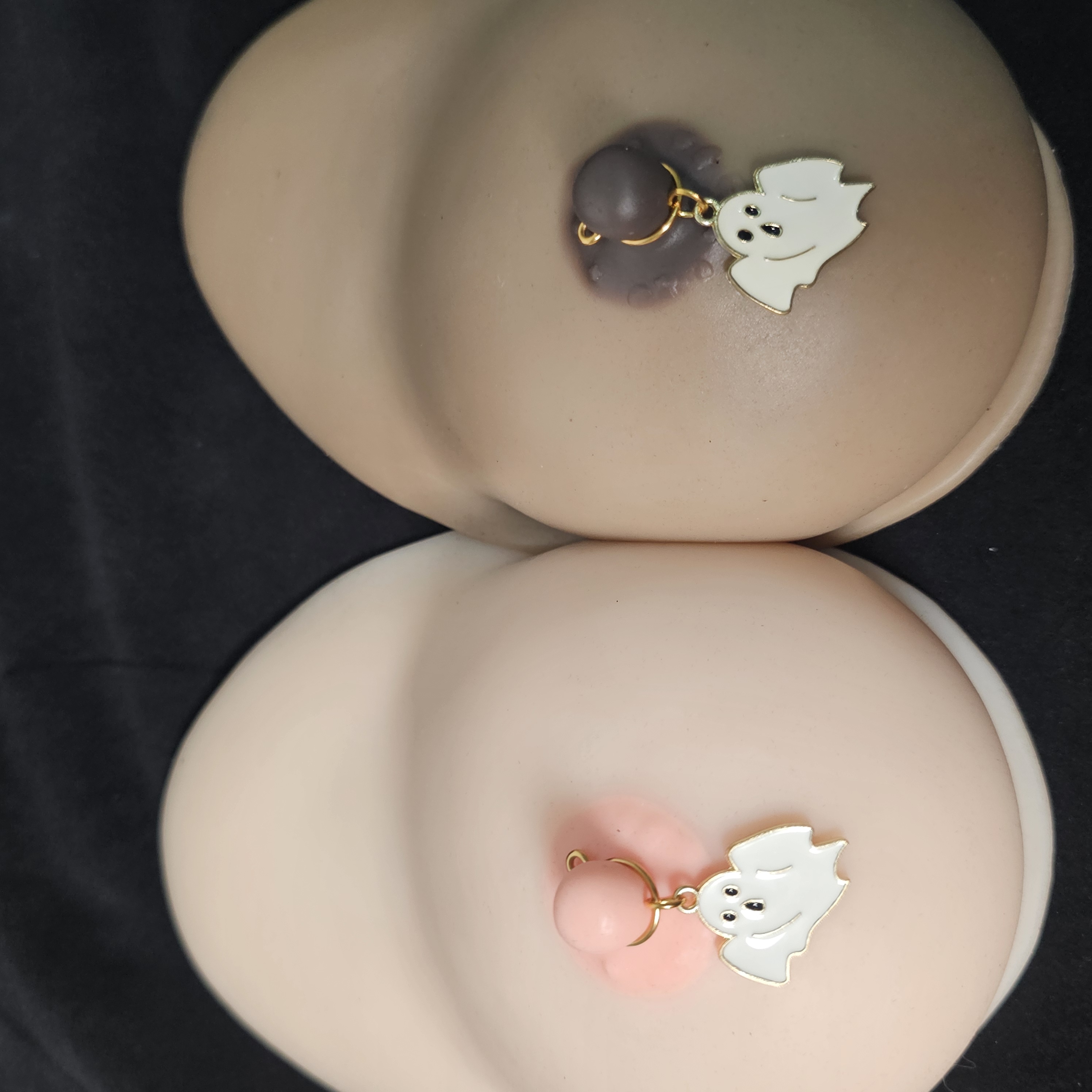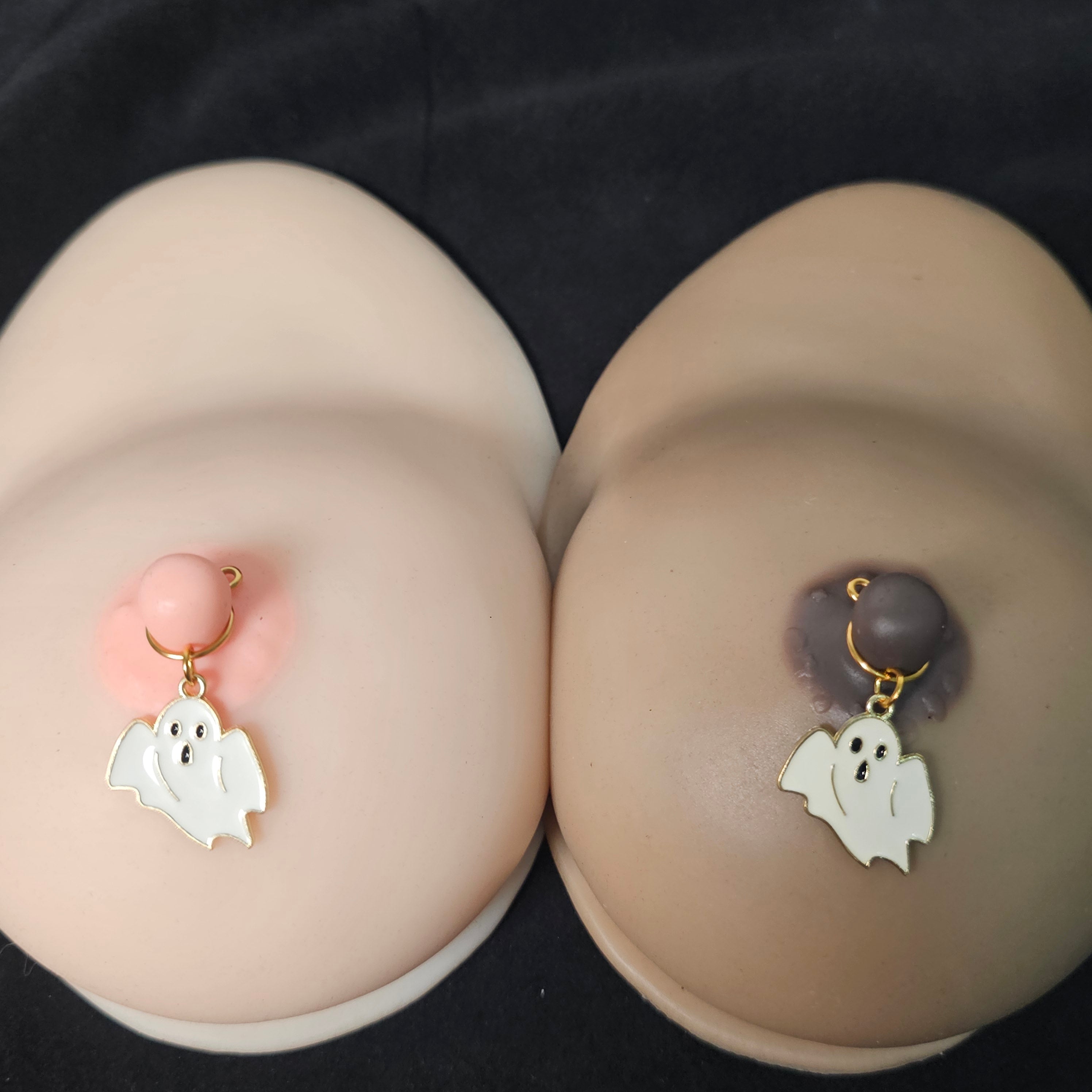 These nipple clamps evoke a unique festive and mystical atmosphere. The horseshoe ring features a dazzling gold electroplating process for a vibrant sheen, exuding elegance and power. The pendant, inspired by a charming white ghost, incorporates fun Halloween elements while maintaining a light and playful style. The adjustable clamps offer flexibility, allowing for easy adjustment to a comfortable grip, ensuring both stability and a comfortable feel. The exquisite details and chain embellishment add a touch of layering. Wear them standalone or complement festive outfits for a bold statement. Whether for a Halloween party, role-playing, or just a fun couple's occasion, these clamps are the perfect finishing touch. More than just an accessory, they're a unique expression of the holiday season.