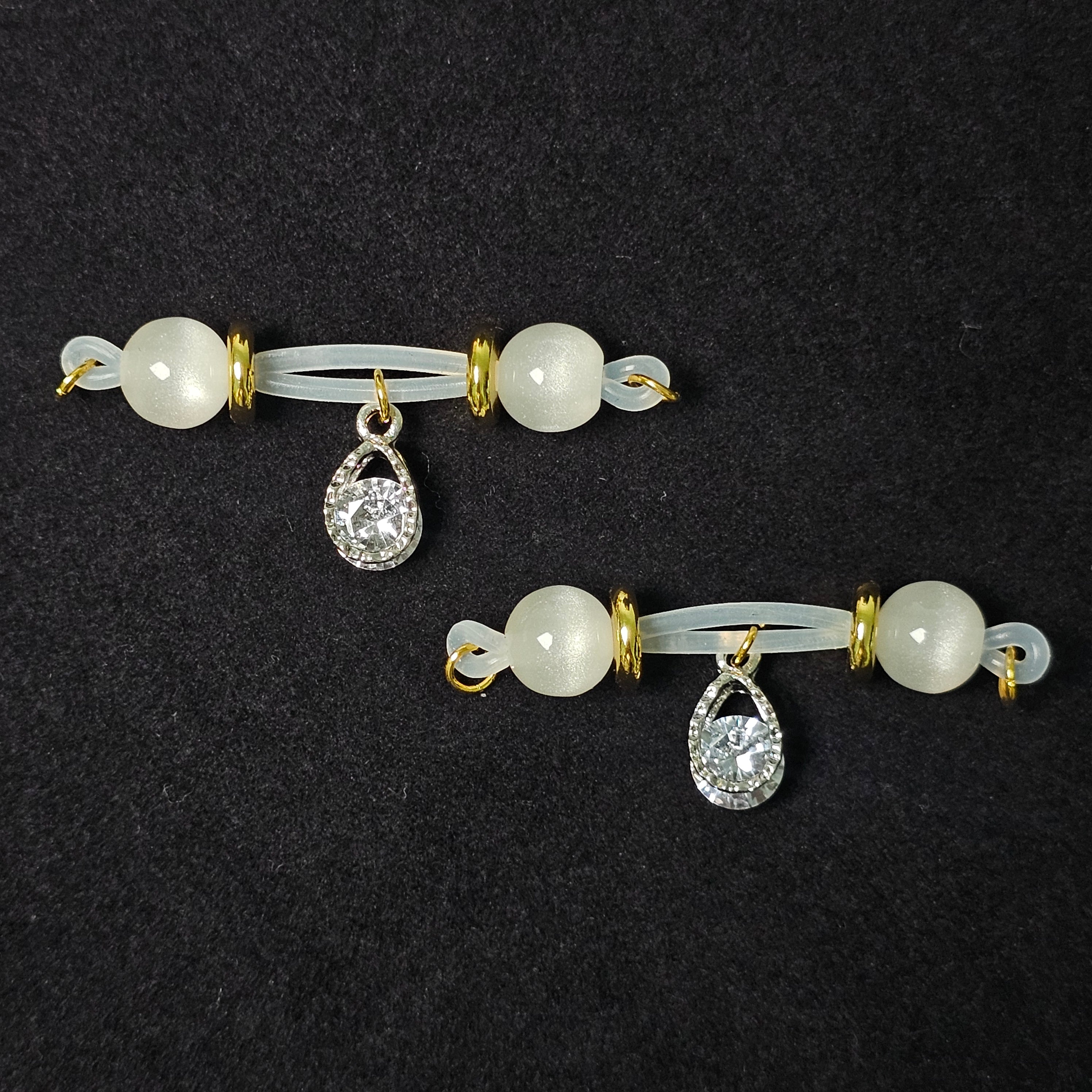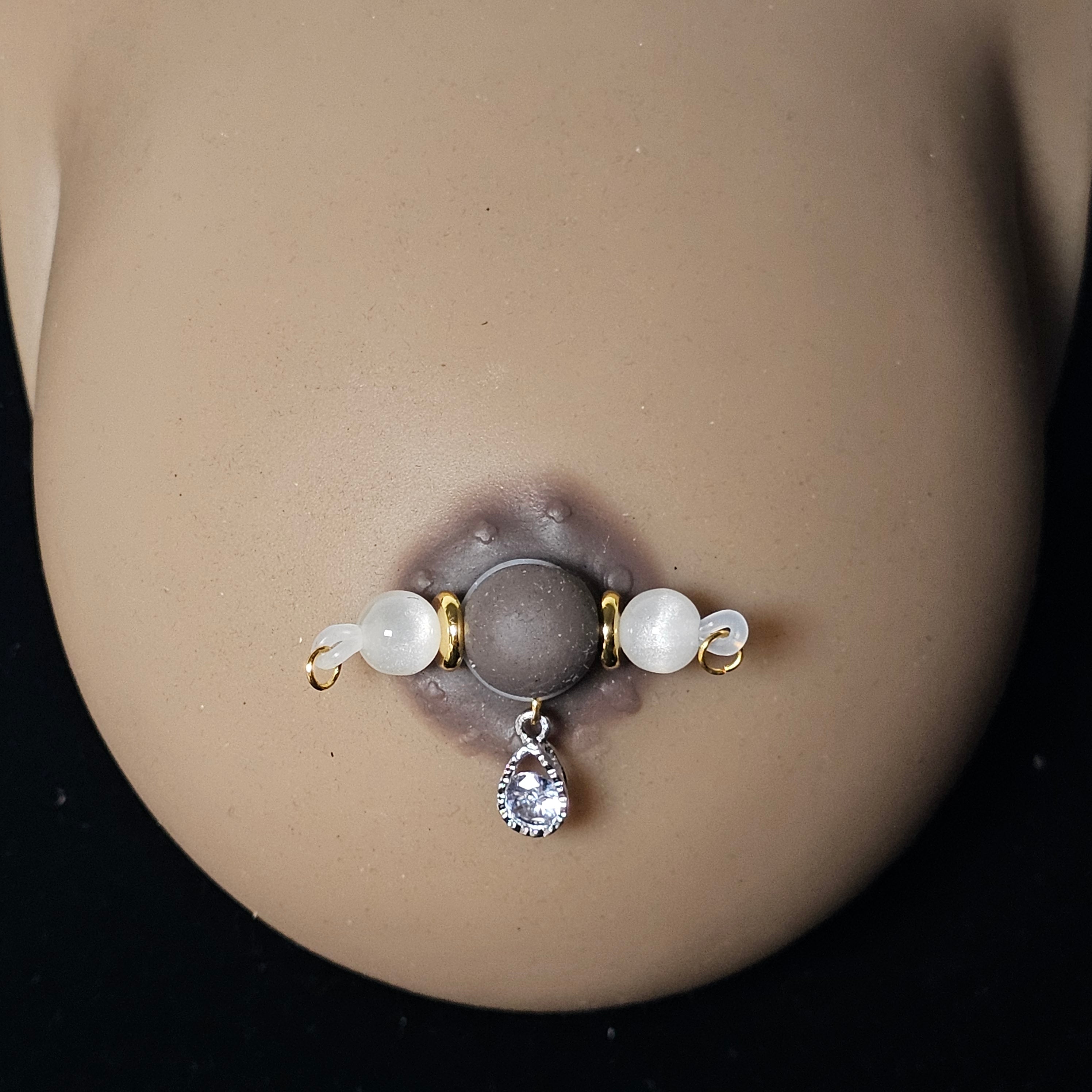 This barbell-style adjustable nipple clamp embodies exquisite style with a design language of simplicity and luxury. The white jade beads are as crystal clear as morning dew, exuding a warm and gentle aura. The paired teardrop-shaped diamond pendant is like an artistic embellishment condensed by light, showcasing understated luxury. The clever blend of rounded and sharp lines creates a unique visual balance, both graceful and delicate, yet strong and tense. The overall shape is compact and exquisite, and every detail has been meticulously polished to reflect the wearer's elegant temperament and unique taste. Crafted from sturdy metal, the clamp has a smooth clamp and can be freely adjusted to ensure both comfort and security. The lightweight design yet rich in texture makes it suitable not only for expressing romance and confidence in intimate settings, but also as a sophisticated accessory that highlights personality and infuses every wear with a sense of luxury and ritual.