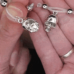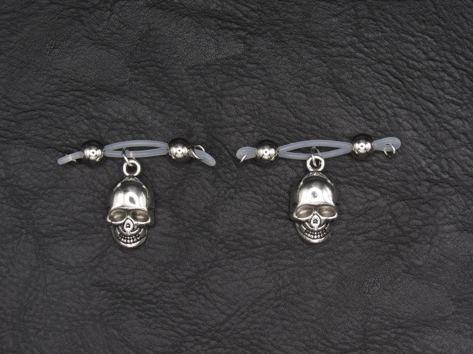 These pieces are perfect for everyday wear. They are made of 6mm diameter faux pearl beads, stainless steel jump rings, and alloy plated (lead-free and nickel-free) skull charms.