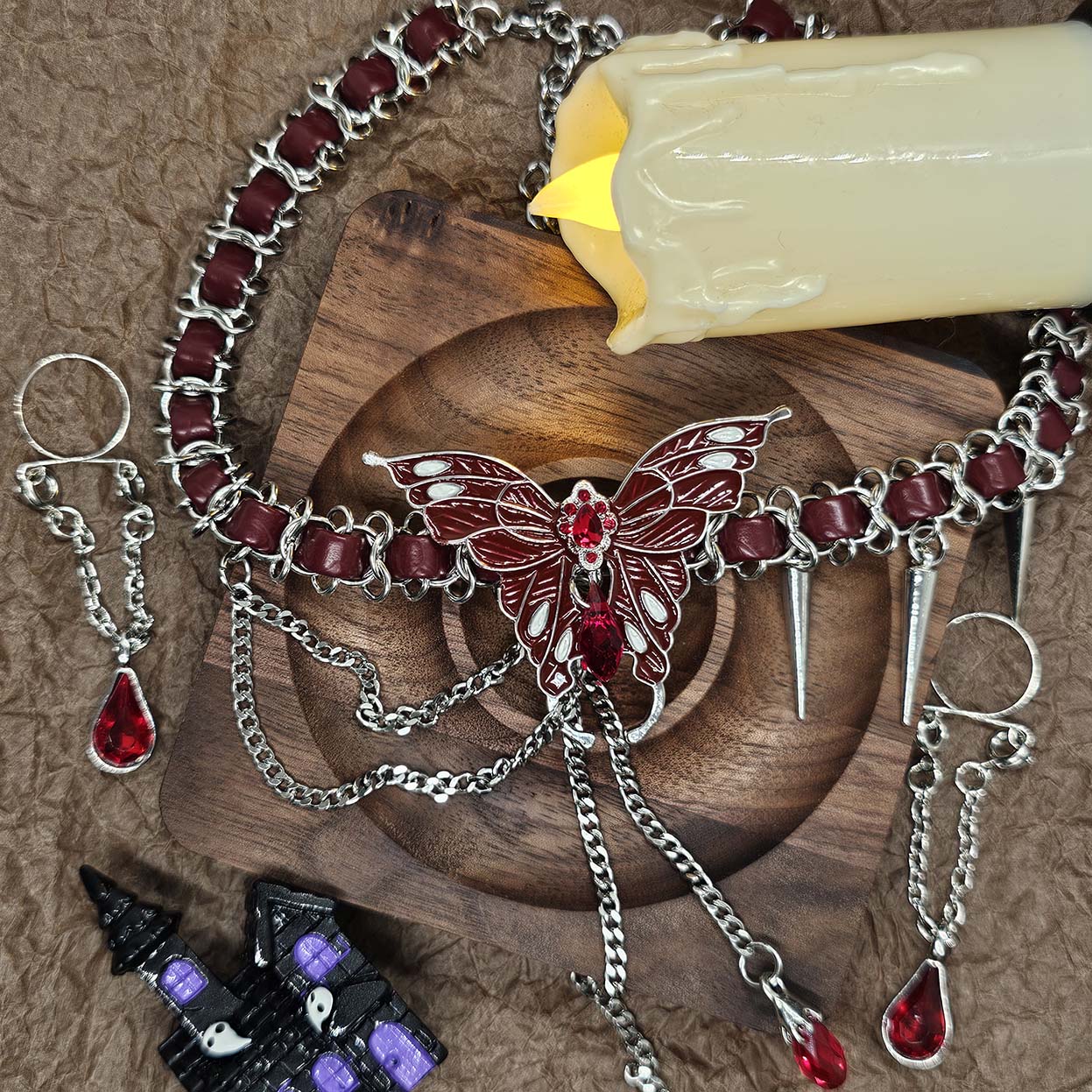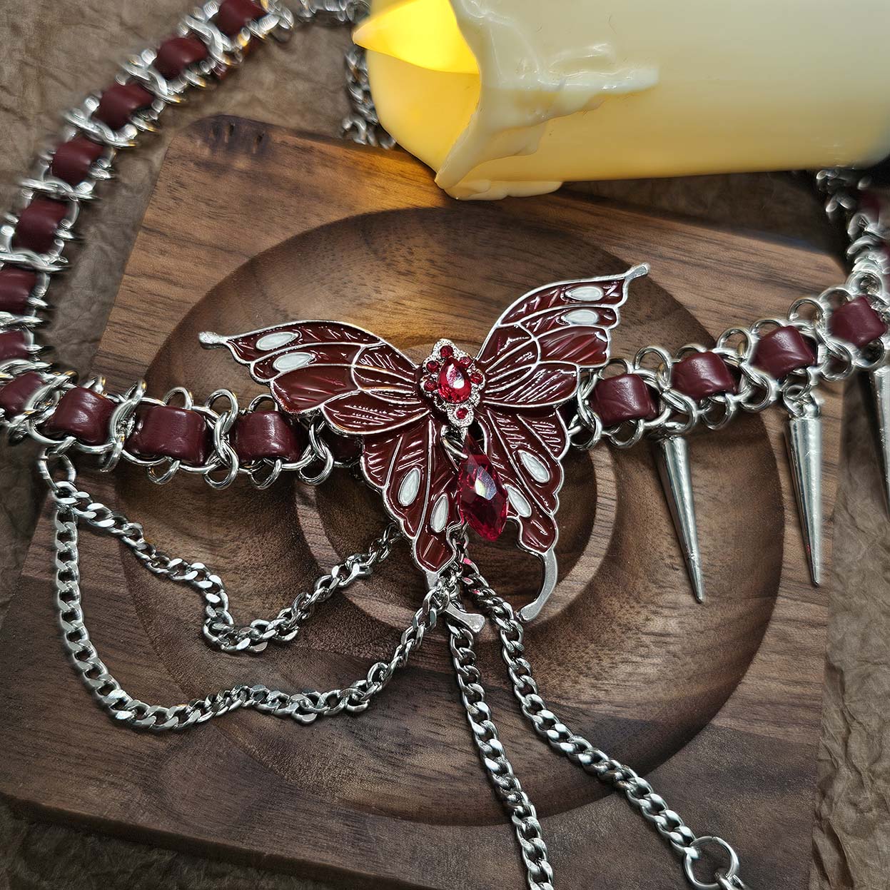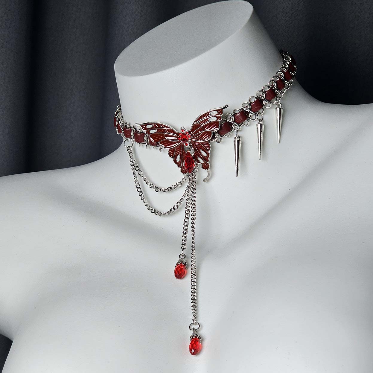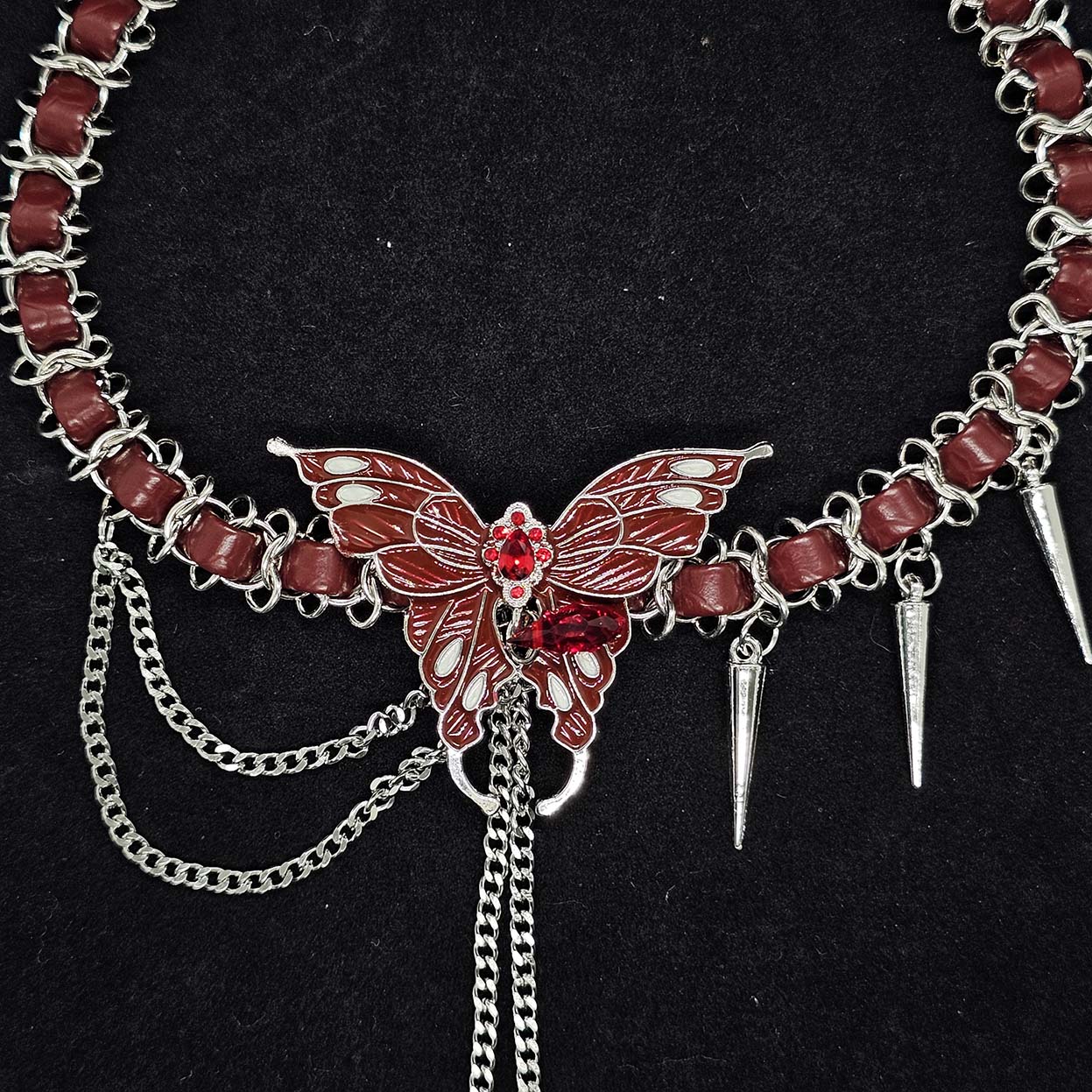 Each piece is handmade and made to order! A limited supply ensures uniqueness and rarity. With your purchase, you'll receive the latest necklace and nipple clamp set.An elegant pairing of adjustable nipple clips adorned with red teardrop gemstones and a silver chain necklace featuring a delicate red butterfly pendant. The fluid lines and vibrant hues merge sensuality with refined sophistication, creating a captivating and luxurious statement.