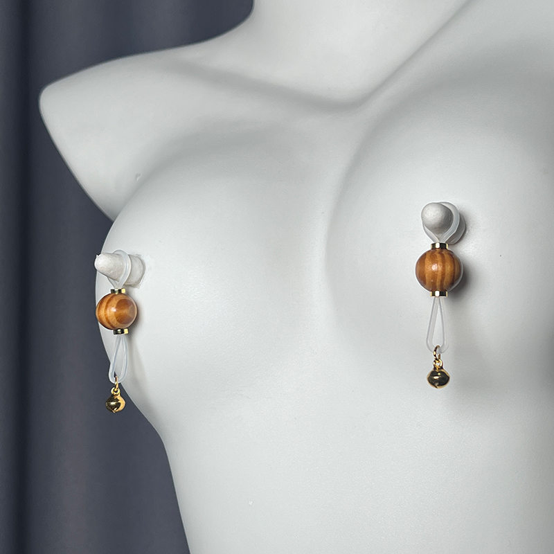 This adjustable barbell-style neck clip is adorned with warm wooden beads and a delicate gold bell pendant. The design cleverly blends natural simplicity with metallic playfulness, possessing both a fresh, forest-like feel and alluring sensuality. The fine wood grain and striking metallic sheen create an eye-catching accessory that is both unique and sophisticated ✨