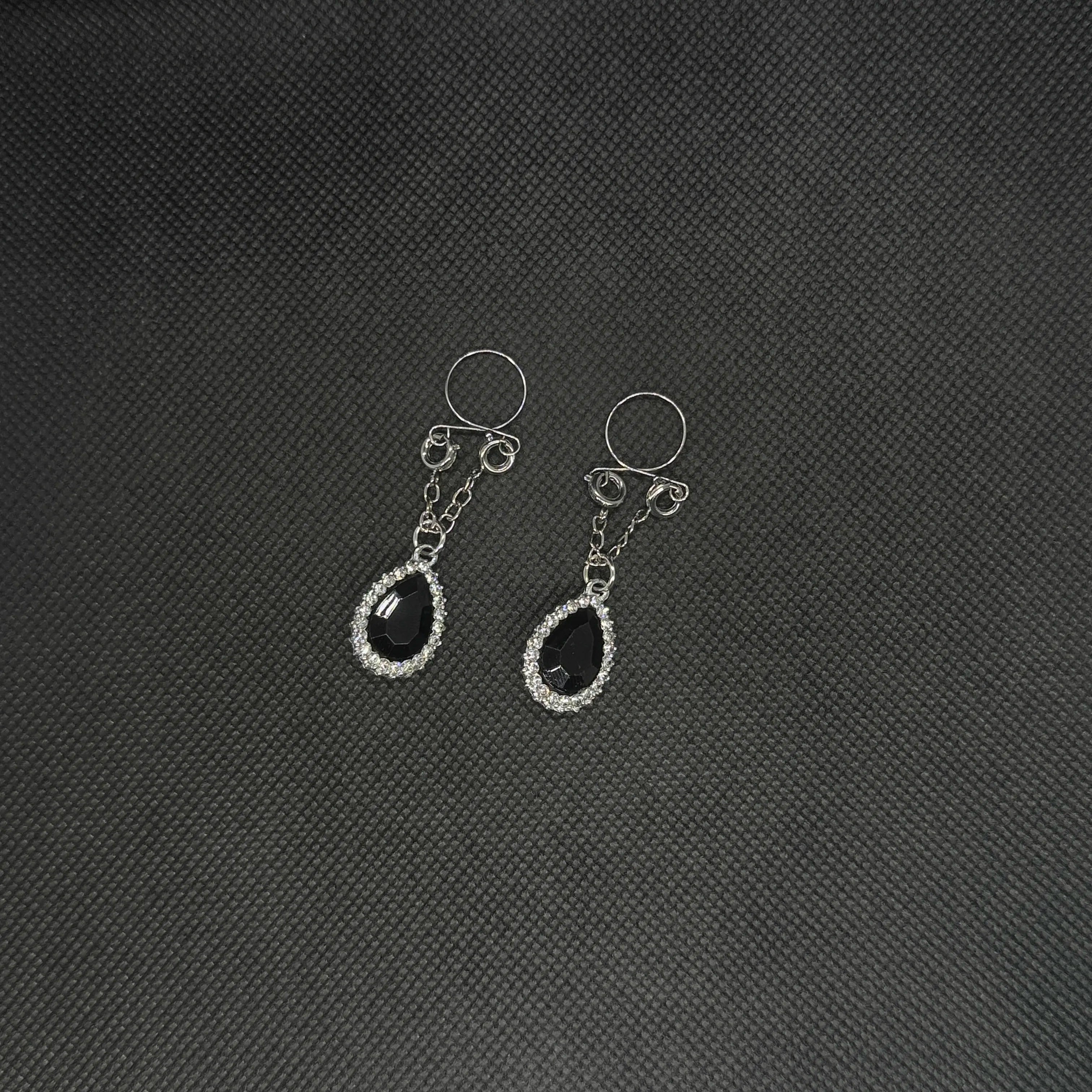 This adjustable nipple clamp, set with a black gemstone pendant and surrounded by dazzling diamonds, exudes elegance and mystery. The deep black gemstone and shimmering diamonds complement each other, creating an alluring and understated luxury. The delicate horseshoe-shaped clasp and adjustable clip ensure a comfortable and secure fit while adding to its beauty. Perfect as a private accessory or a treasured personal treasure, it exudes a refined elegance and irresistible charm.