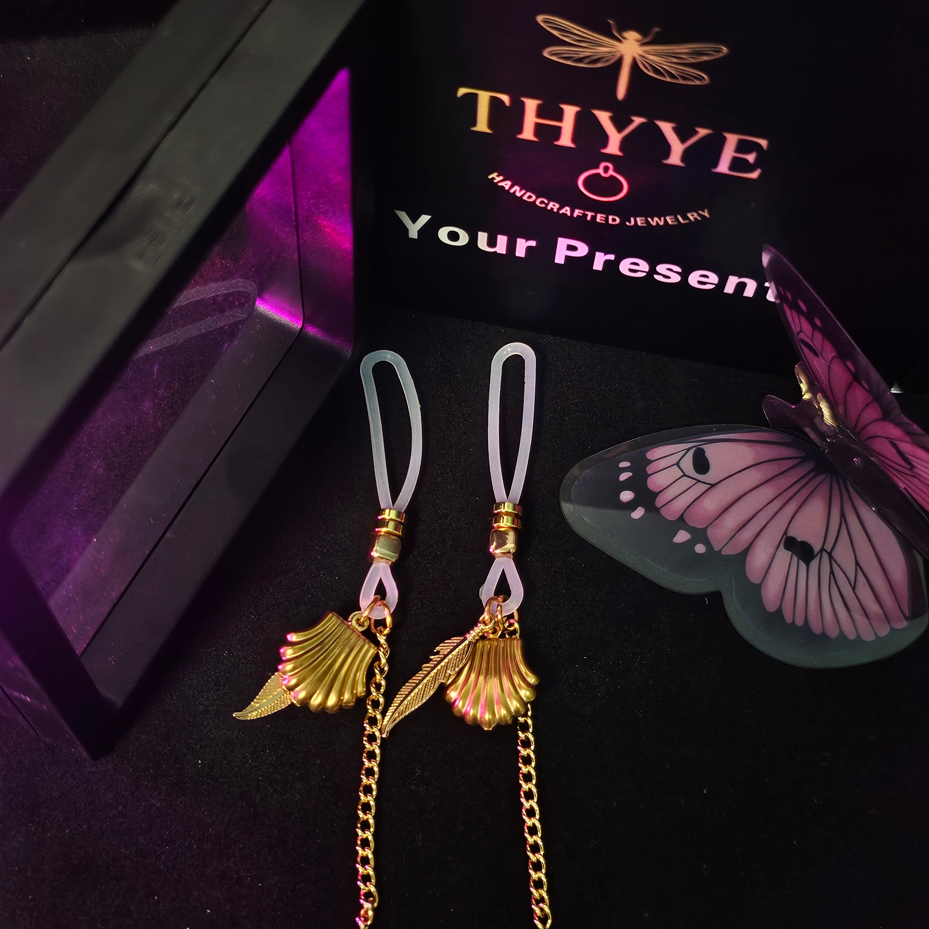 这款乳夹巧妙地将海洋元素与性感配饰融合。贝壳象征着神秘与浪漫,闪耀的金色光泽更增添了奢华独特的气息。链条设计不仅提升了视觉深度,更营造出流畅动感的佩戴体验。可调节结构确保佩戴舒适稳固,不易滑落,适合长时间佩戴。高品质合金电镀工艺打造出光滑美观的表面,兼具美观与耐用性。无论是万圣节派对、节日主题造型,还是情侣间的小惊喜,这款乳夹都能轻松点燃现场气氛。它们是一款散发自信魅力的独特配饰,是馈赠佳品或个人佩戴的理想之选。