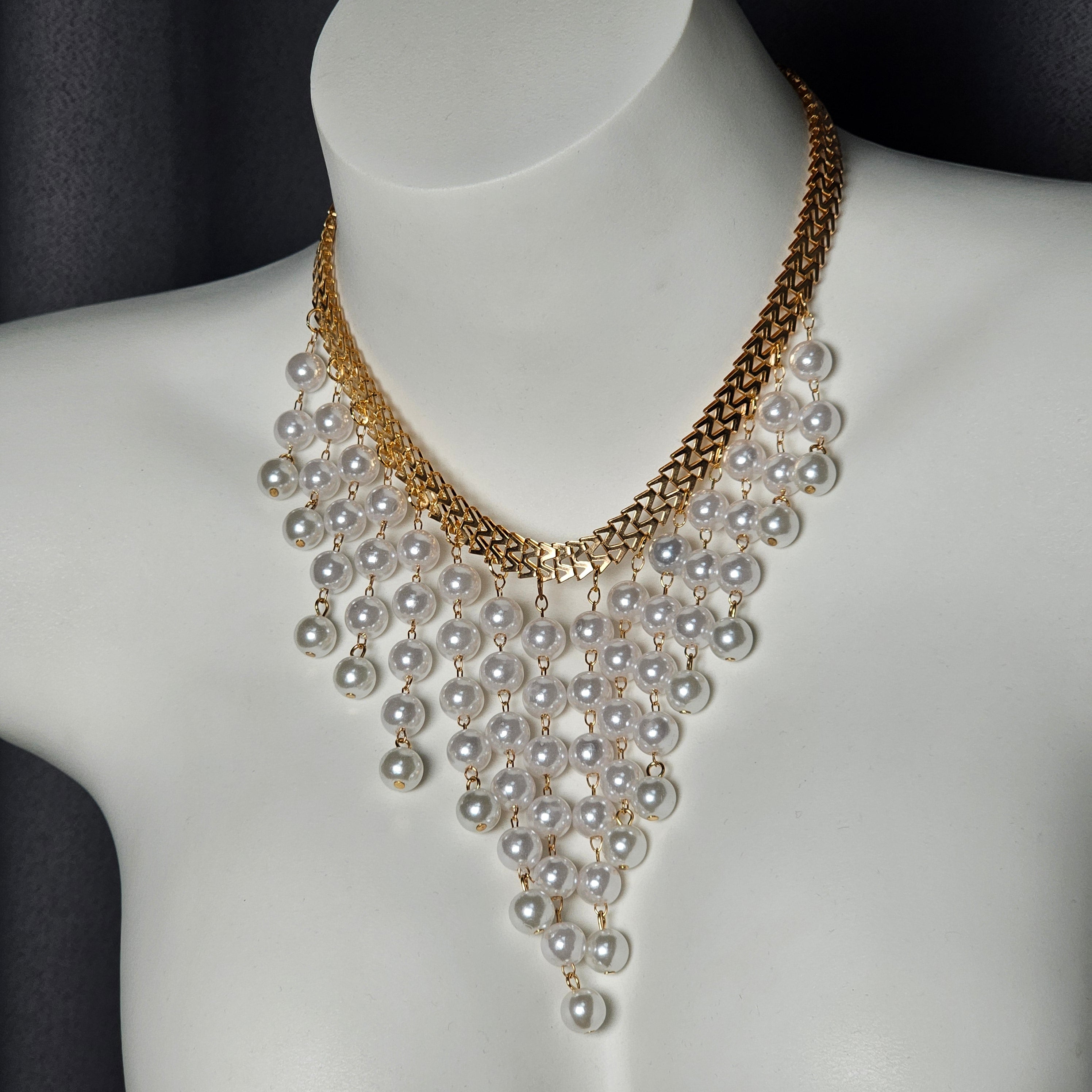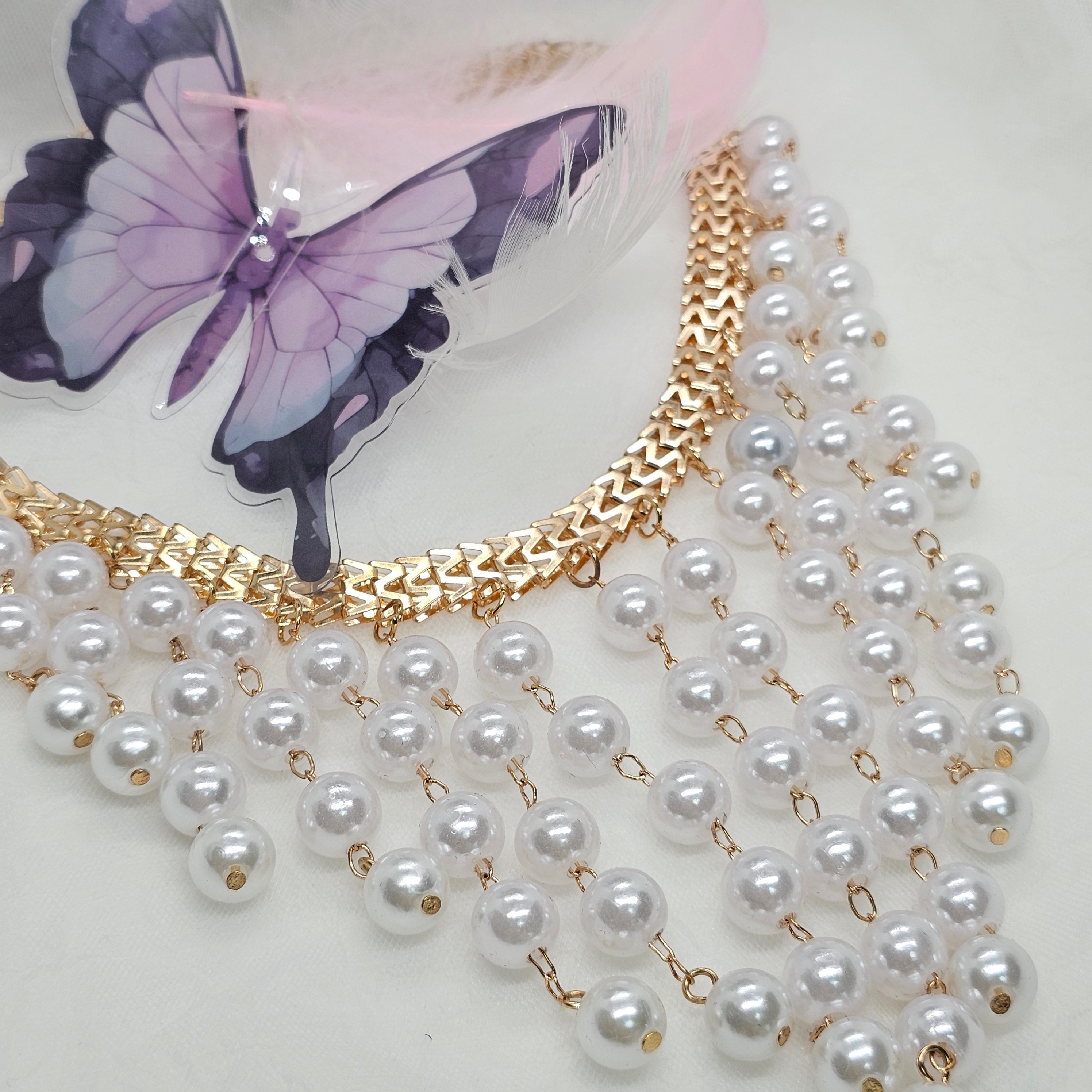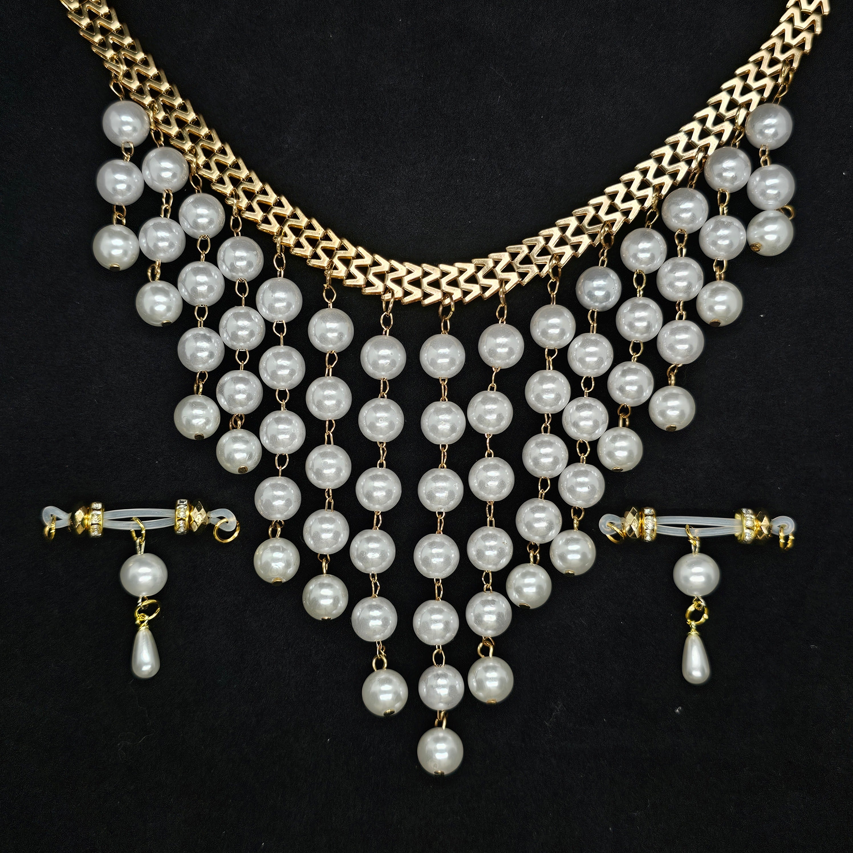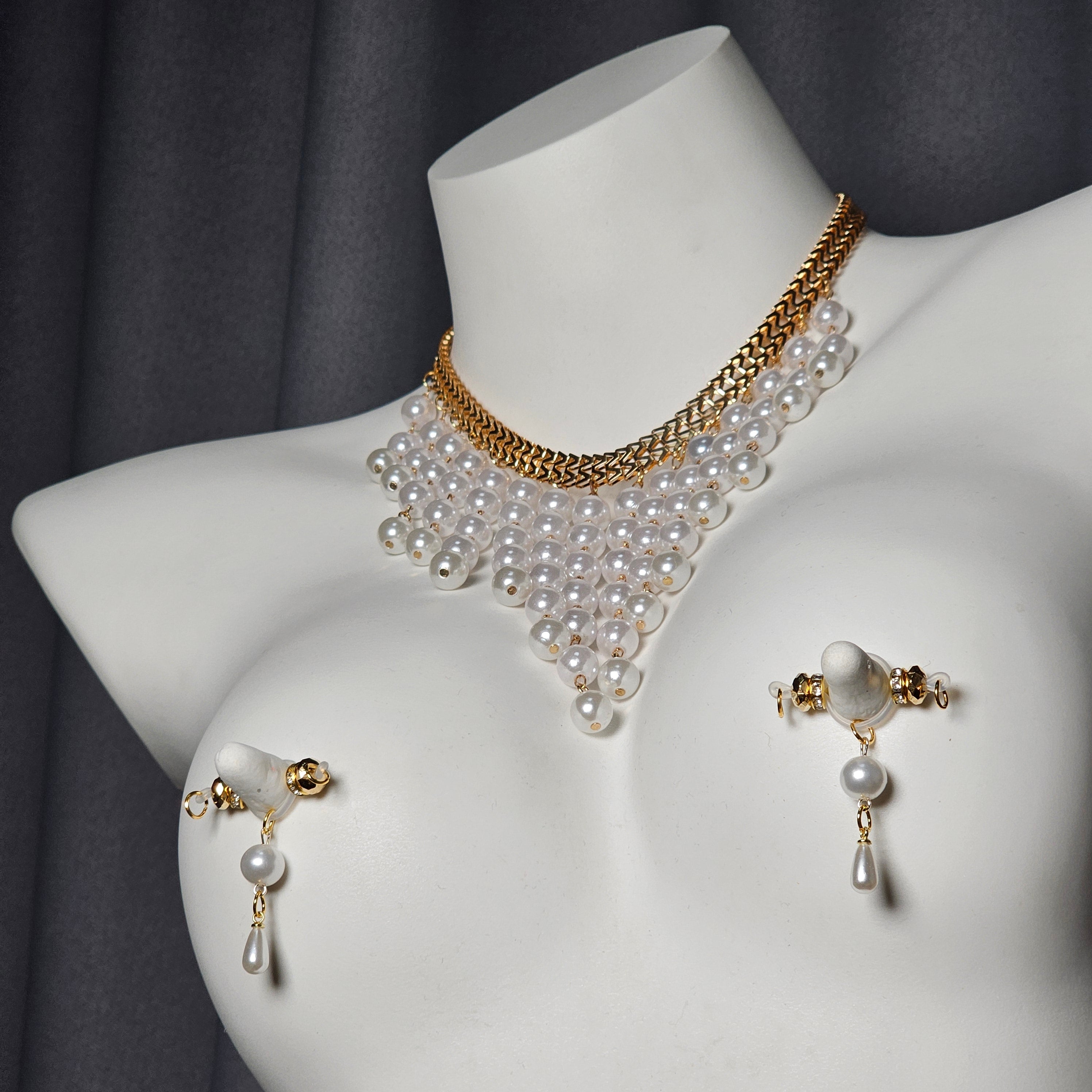 Gold diamond-set accents with teardrop pearls exude soft radiance. The wavy necklace paired with pearl pendants creates harmony, while the adjustable design embodies elegance and sensual sophistication