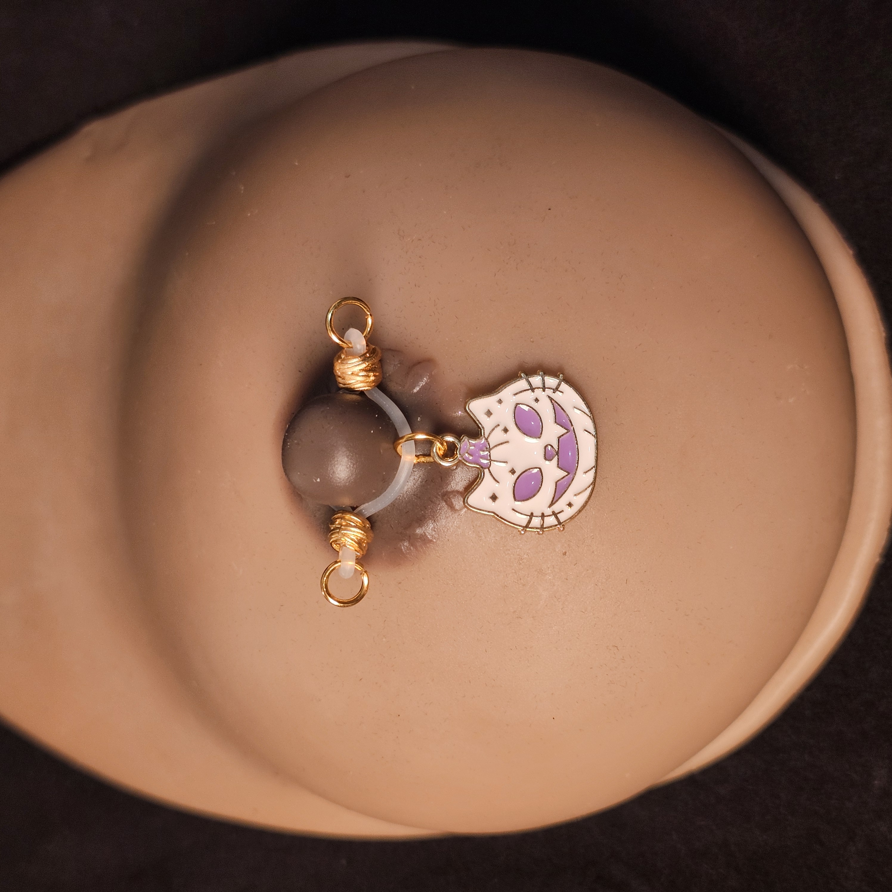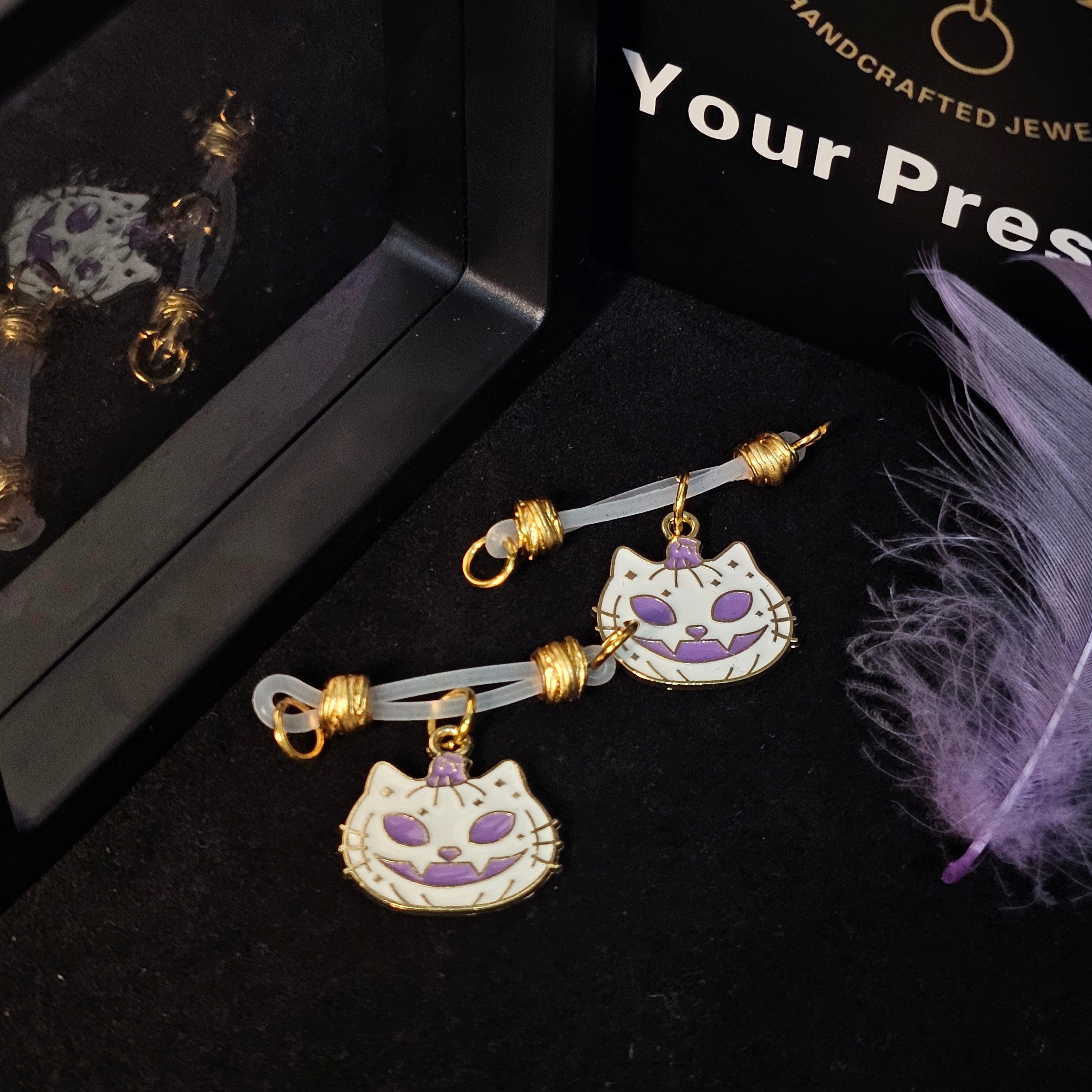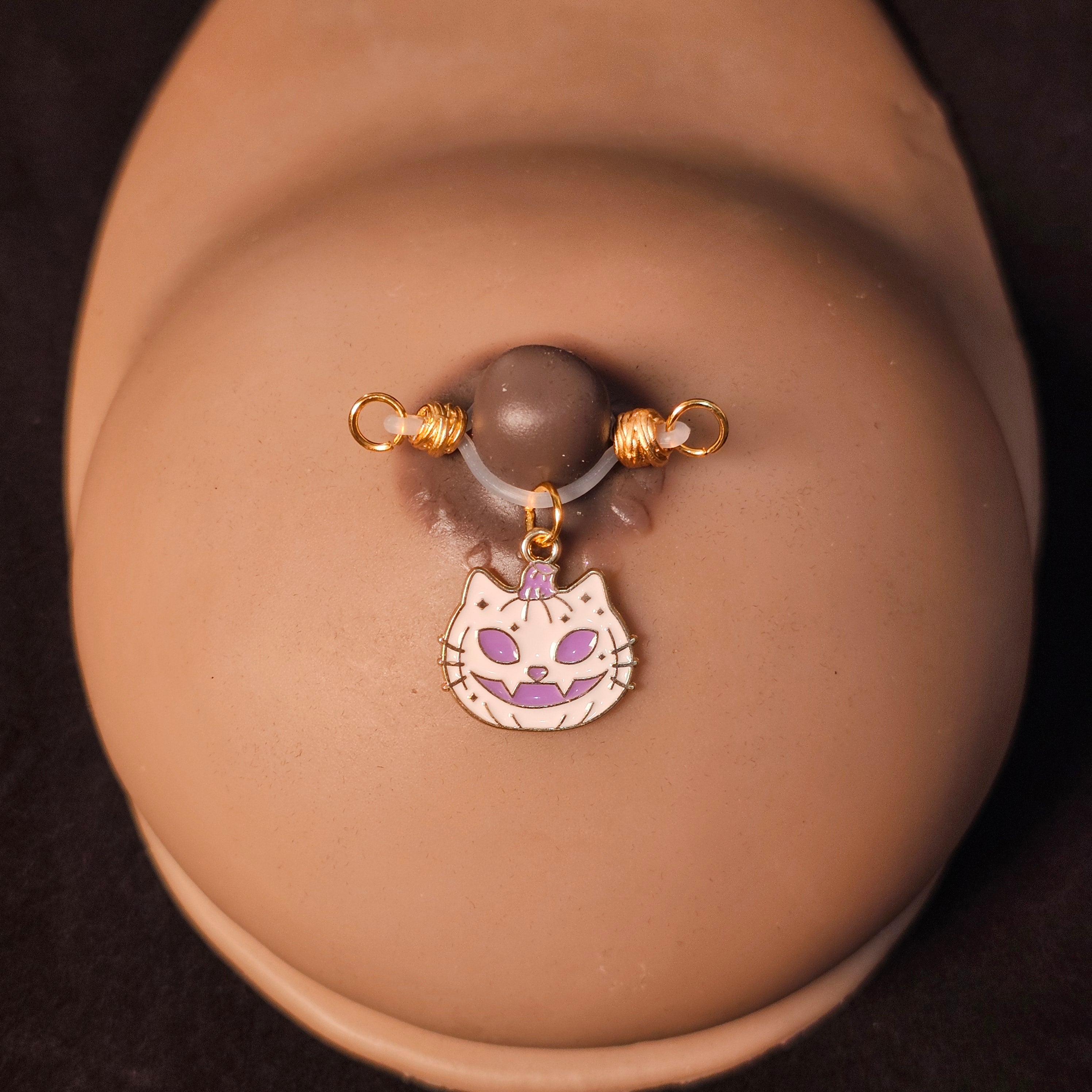 Add a touch of mystery and playfulness to your Halloween look. The unique barbell design with adjustable clip ensures a secure fit and provides a comfortable fit. The shimmering gold luster and cat expression combine with festive elements to create a personalized and festive look. Whether for a costume party, holiday party, or private moment, this piece is sure to be a focal point. Lightweight and portable, it easily matches any outfit, showcasing unique charm and bold style. Perfect for yourself or as a surprise gift for a loved one, it's the perfect blend of fun and taste.