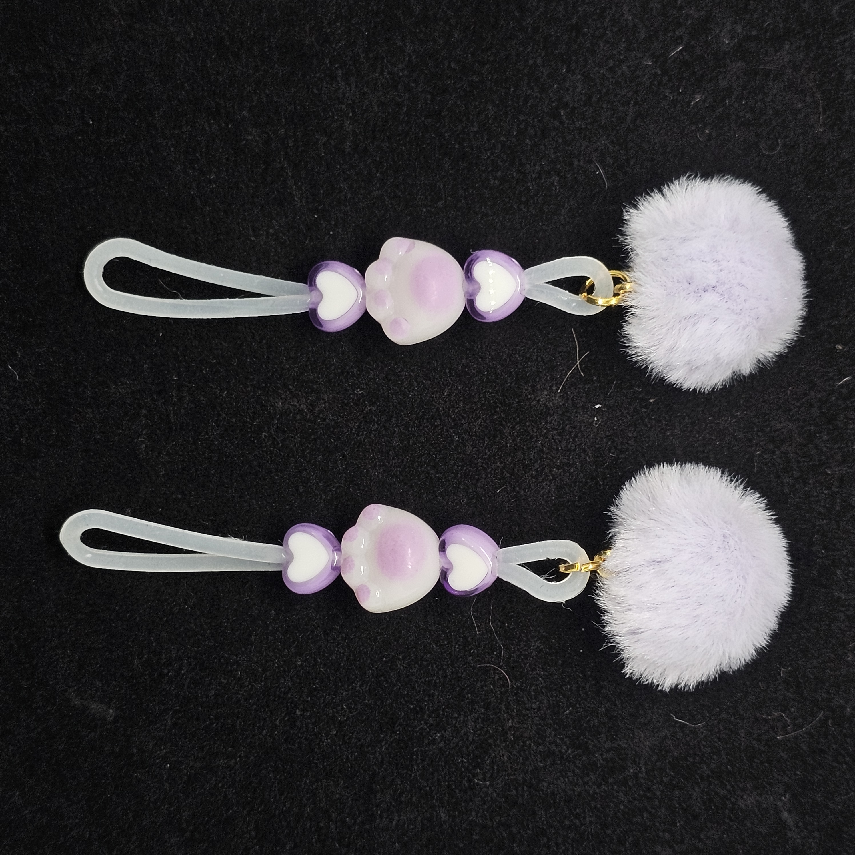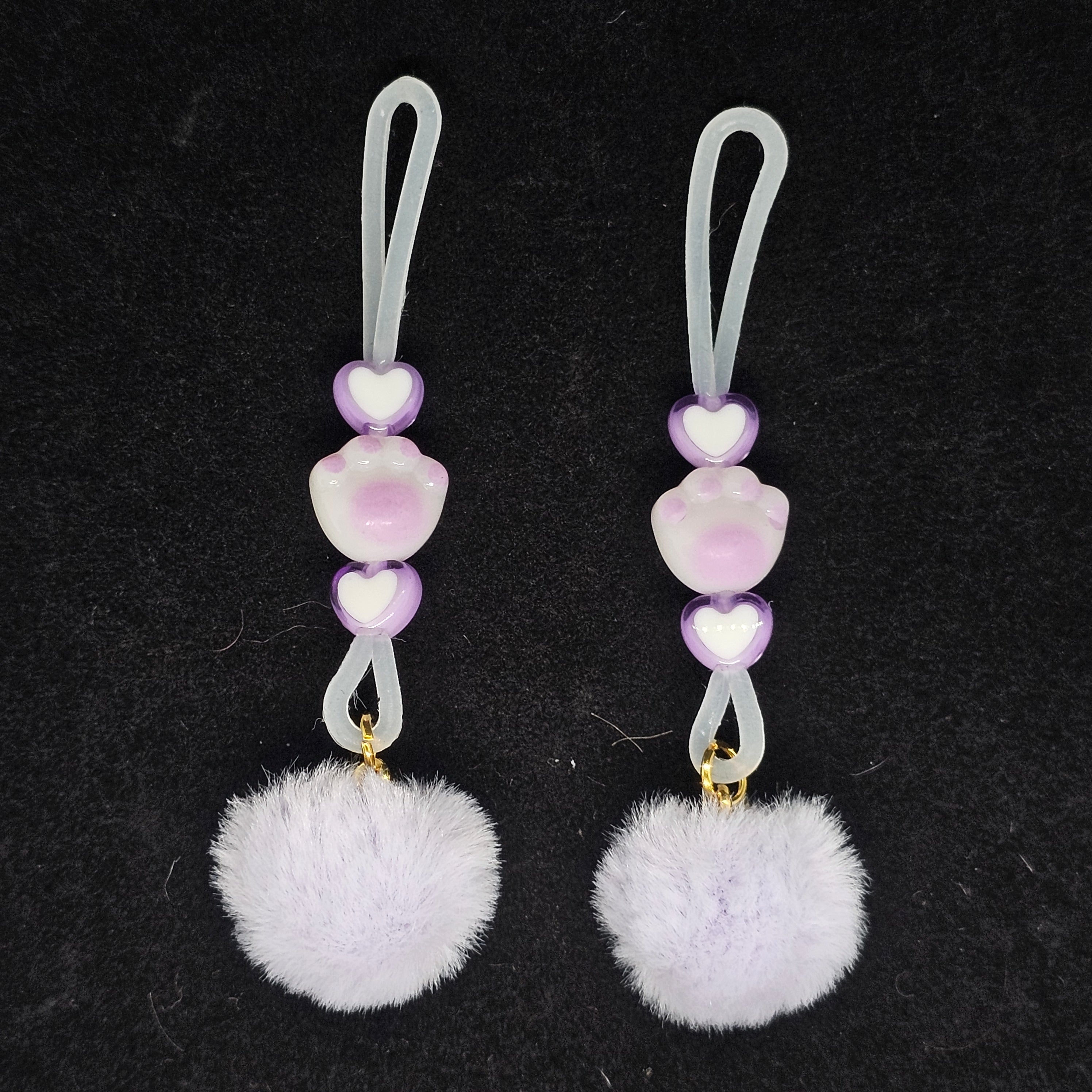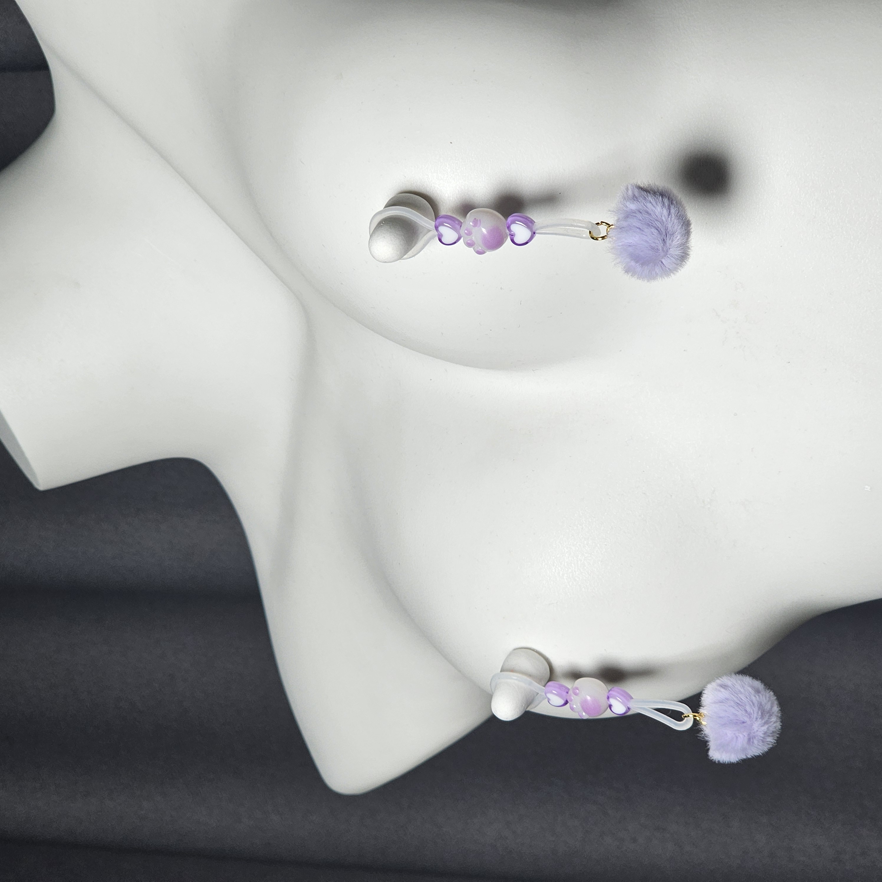Elevate your intimate accessory collection with this adjustable barbell nipple clamp, featuring a whimsical white and purple cat paw, a heart-shaped purple bead, and a soft lavender plush pendant. The open-ended barbell design ensures a secure and comfortable fit while allowing effortless adjustment to suit your preference. The harmonious blend of playful elements and delicate purple tones creates a refined, sophisticated aesthetic with a touch of charm. Lightweight yet durable, this piece combines premium craftsmanship with a luxurious feel. Perfect for layering or standalone wear, it enhances personal expression, adds subtle elegance to intimate fashion, and provides a unique, eye-catching accessory for those who appreciate both style and individuality.