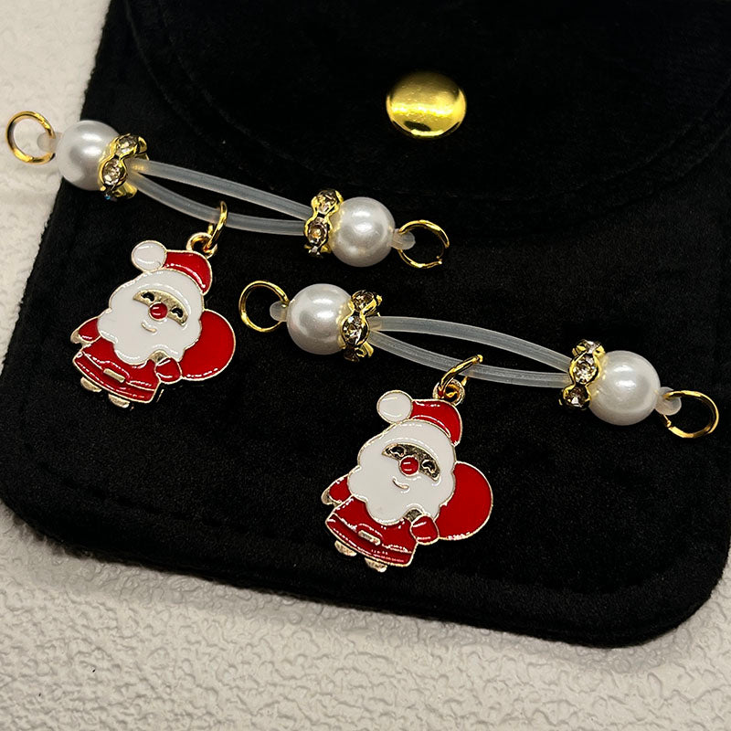 These nipple clips feature adorable Santa Claus pendants and are embellished with sparkling pearls, making them both playful and sophisticated. Their adjustable design ensures a perfect fit, allowing you to feel comfortable and confident while adding fun and festive cheer to your look. Whether layered with other accessories or worn alone, these nipple clips perfectly blend modern elegance with artistic charm.