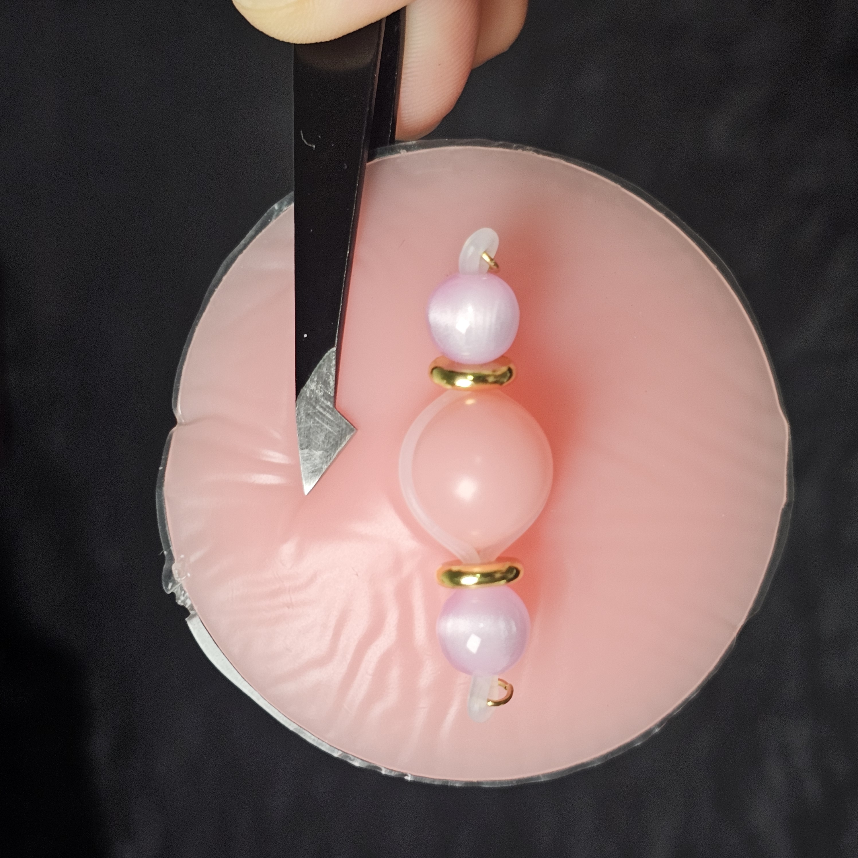 These adjustable nipple clamps, embellished with cherry pink quartz gemstone beads, create a gentle and romantic feel, evoking a springtime softness. Symbolizing love, warmth, and spiritual healing, cherry pink quartz's soft hue shimmers delicately under the light. The adjustable design allows for customizable tightness, from gentle to intense. The metal barbell shape contrasts with the softness of the cherry pink quartz, creating a powerful yet elegant look. Whether a delicate personal accessory or a fun gift for couples, these clamps effortlessly create a romantic atmosphere, perfect for exploring both passion and style.